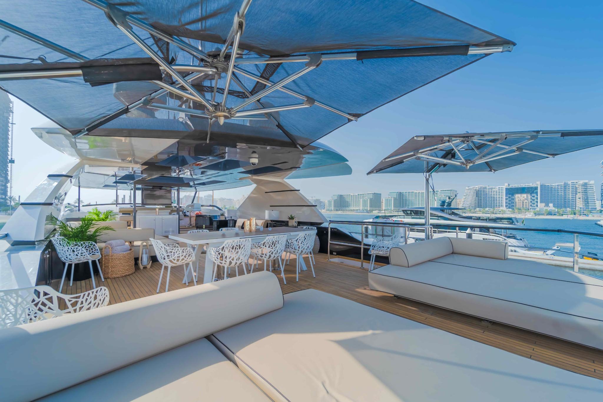 She is the perfect yacht for a corporate event to celebrate an important occasion of your company. She is also the right choice for organizing gatherings with family or friends, thanks to impressive leisure and entertainment amenities. The boat has everything you could ever want, including stylish amenities designed to impress all guests and leisure activities to keep everyone entertained.