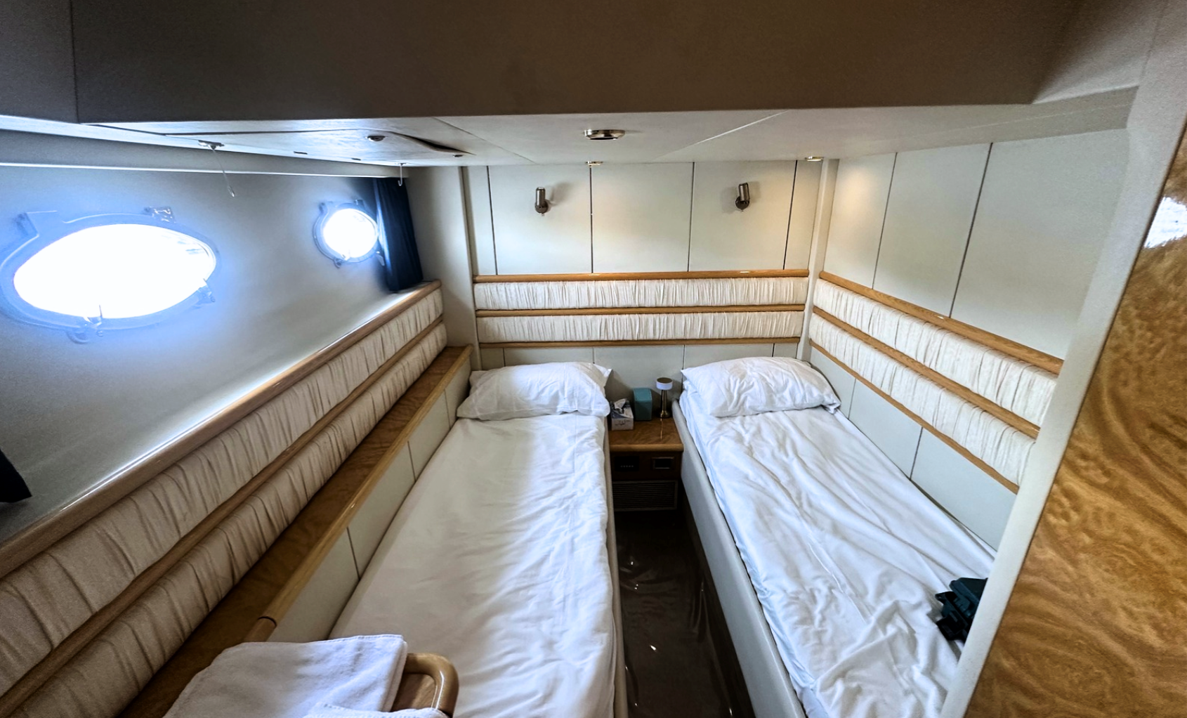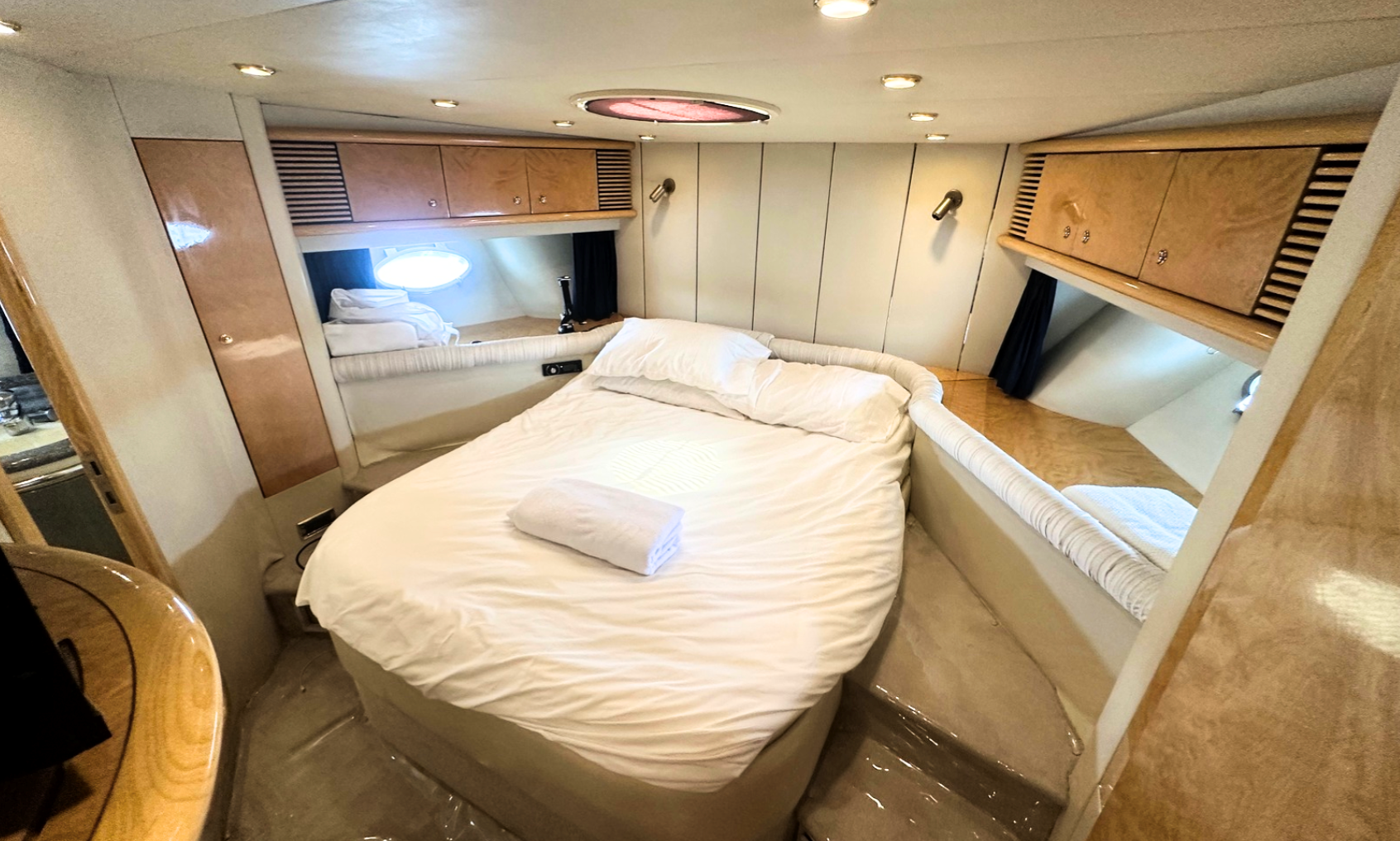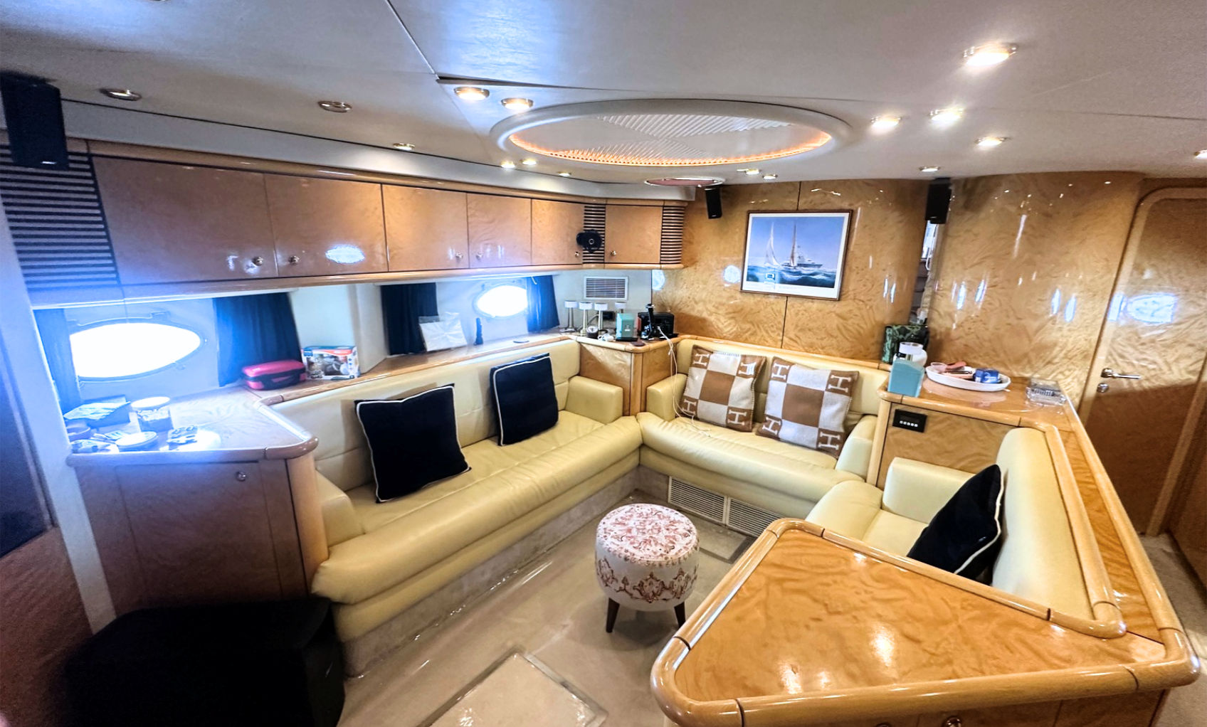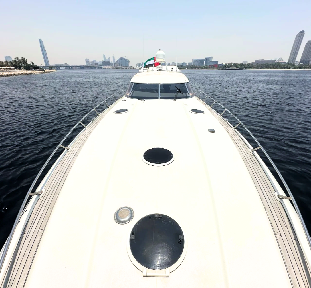 The 1996 Sunseeker Predator 63 is a well-built, performance-oriented motor yacht with a timeless design and a solid reputation. Powered by twin MTU 1150 hp diesel engines, it offers strong cruising capabilities and responsive handling. The exterior features a sleek, low-profile design with a large sunpad on the bow, spacious cockpit seating, and a hydraulic swim platform for easy water access. Inside, the layout includes a comfortable salon with a U-shaped settee, a practical galley, and three cabins—including a forward master with an ensuite and two guest cabins with shared facilities. The interior is finished in high-gloss cherry wood with neutral-toned upholstery. This model balances performance and comfort, making it a reliable option for weekend cruising or extended stays.
