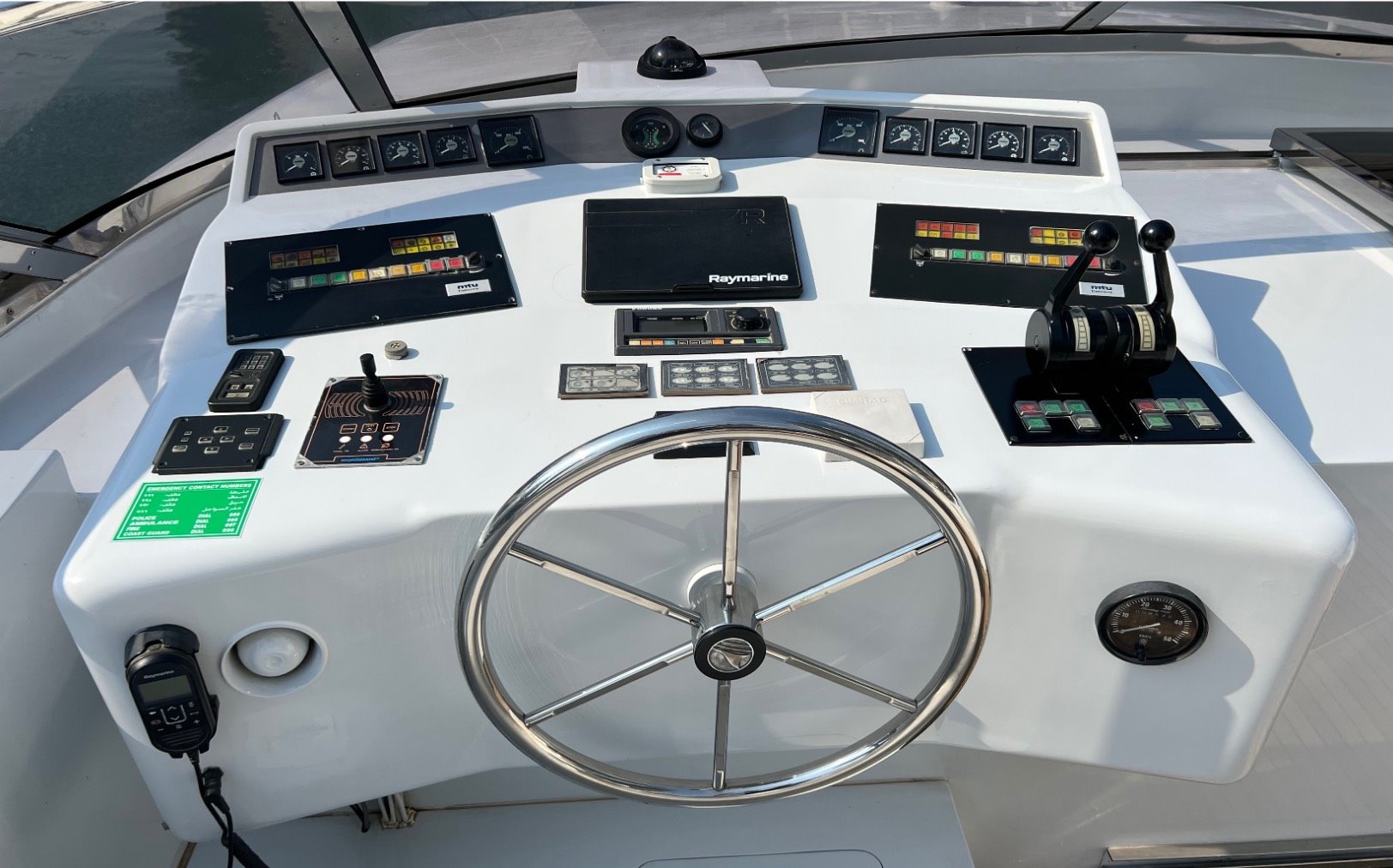 This Technomarine 90 feet (27.61m) is built to the highest standards of safety and elegance and got a recent interior / exterior refit. The yacht can provide you with luxurious and comfortable space for accommodating your loved ones around for a relaxing yet cheerful gathering. She is a luxurious yacht, with a spacious four cabin layout offering a smooth cruising speed of 18 knots. It has a large cockpit / flybridge for entertainment.