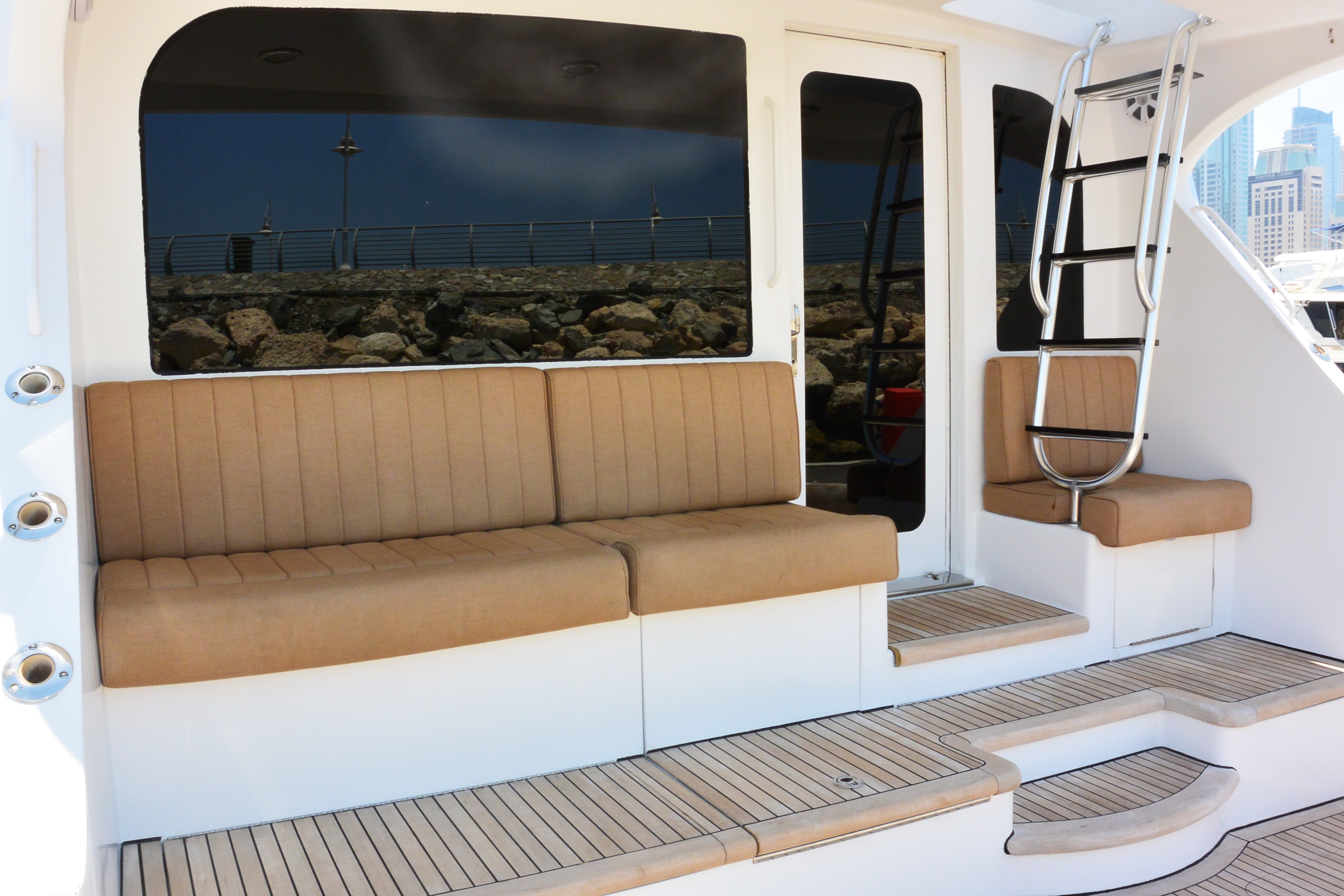 Powered by twin CAT 32 Engines, and a full speed of 46 knots, she is the perfect Yacht for overnight, long range adventures.