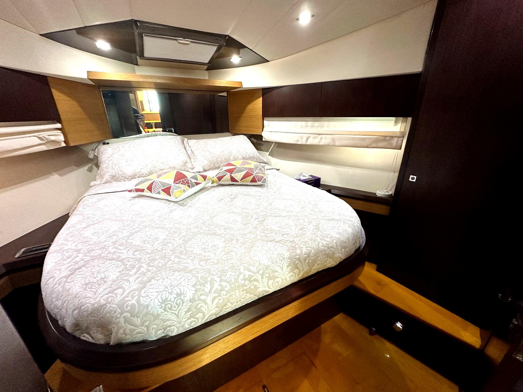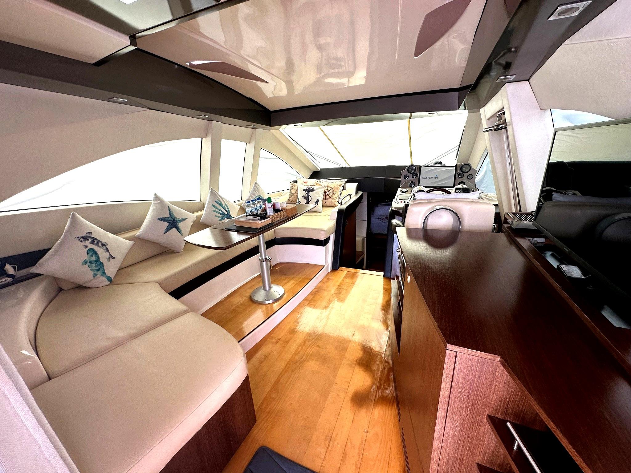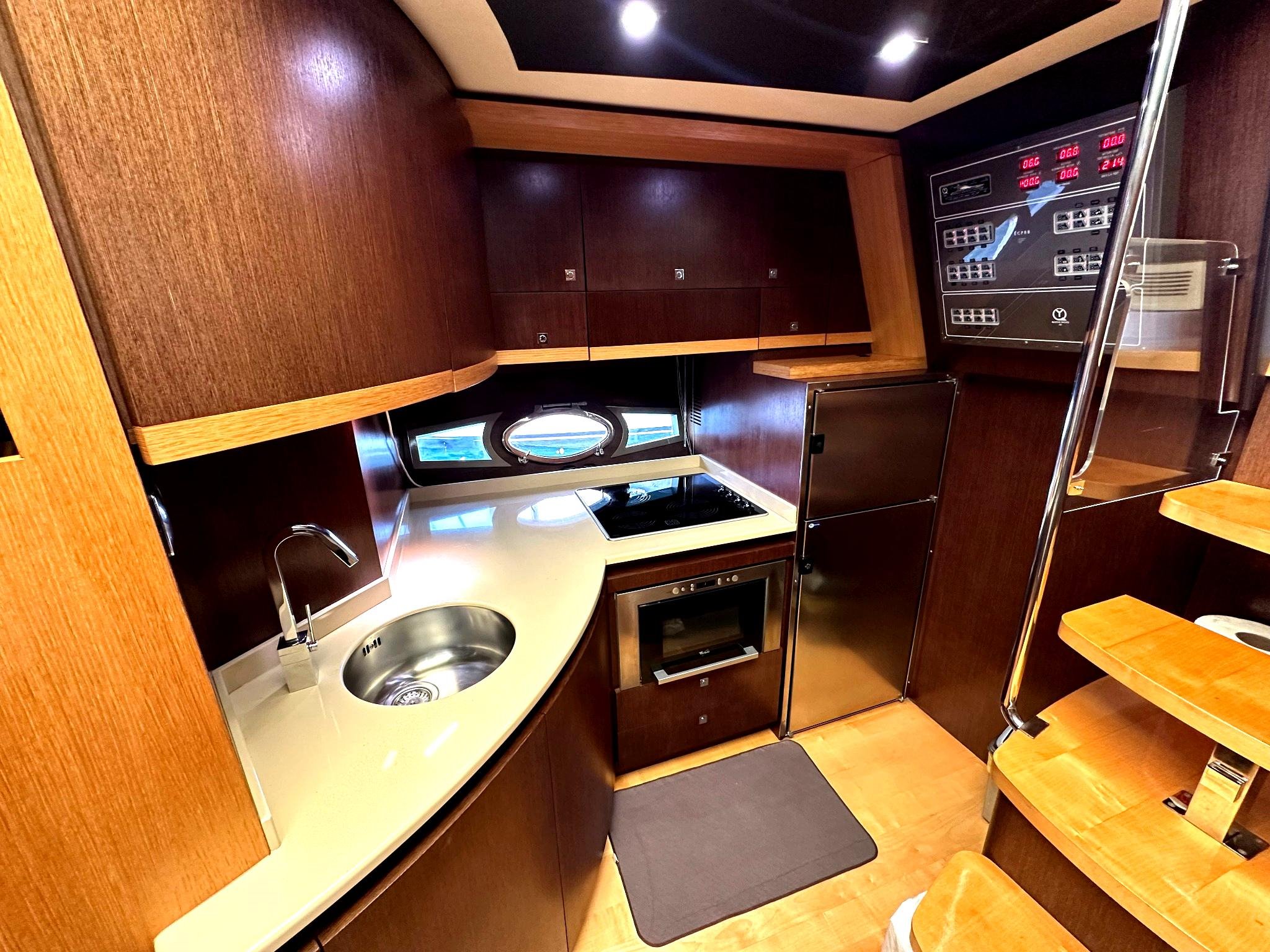 Inside, the yacht boasts two large, well-appointed bedrooms, offering generous space and privacy for extended stays. The low engine hours also ensure reliable performance and longevity, making this yacht a wise investment for discerning buyers.