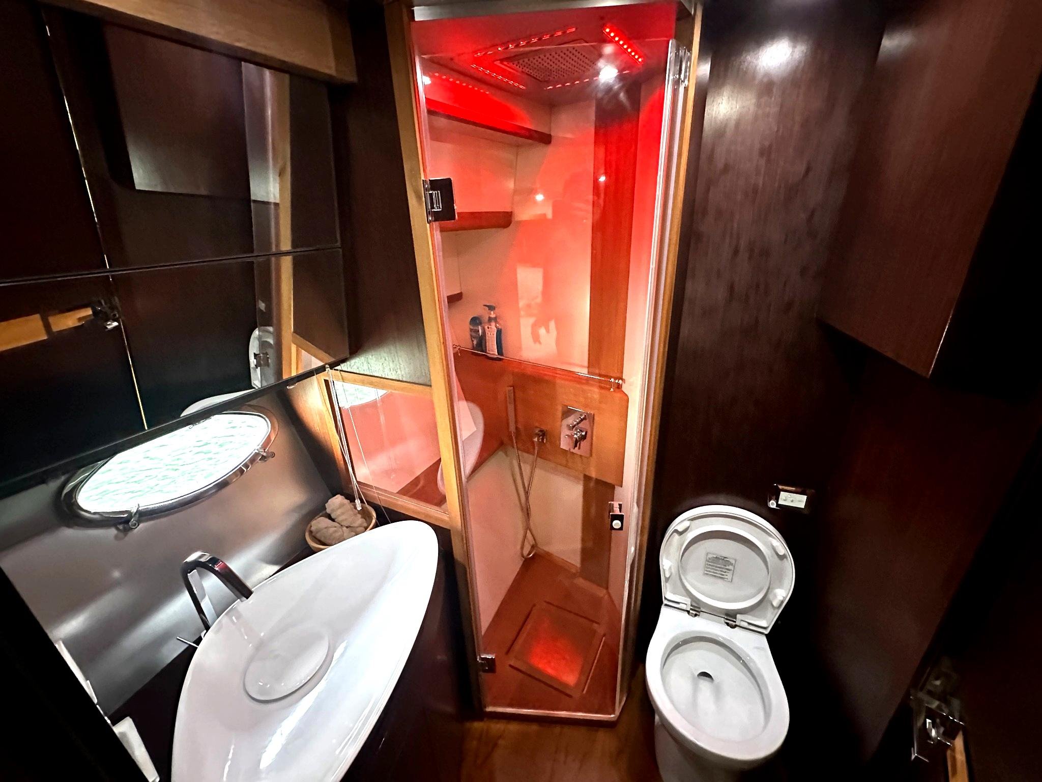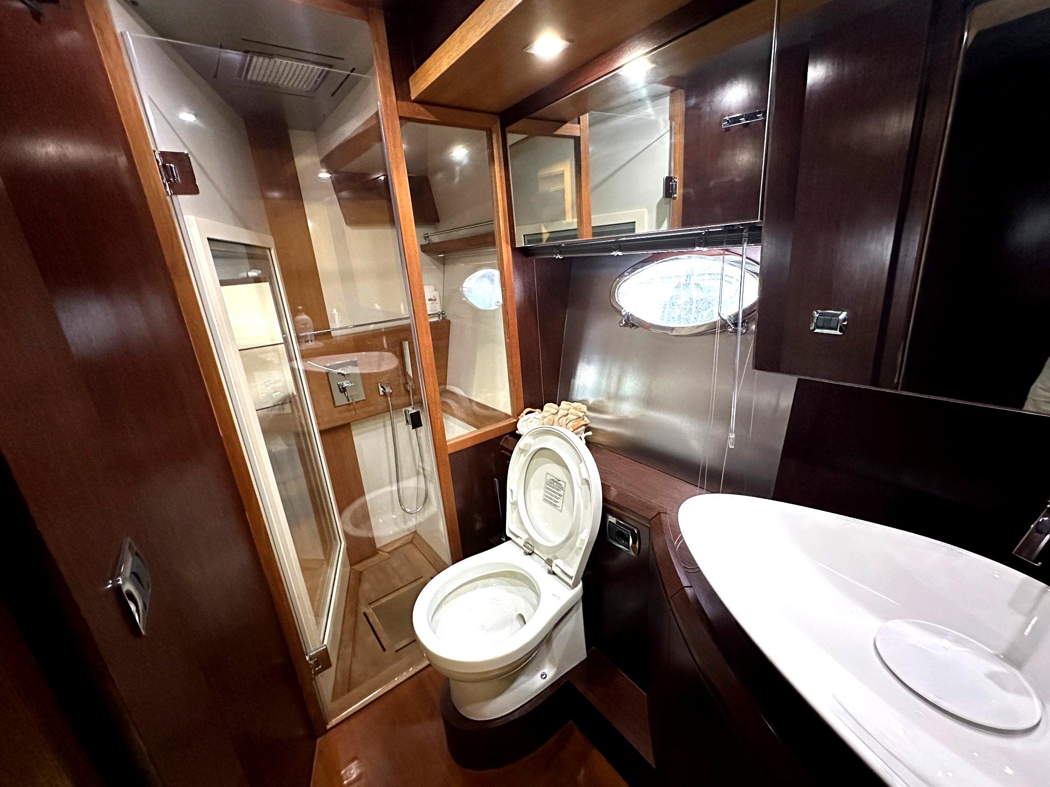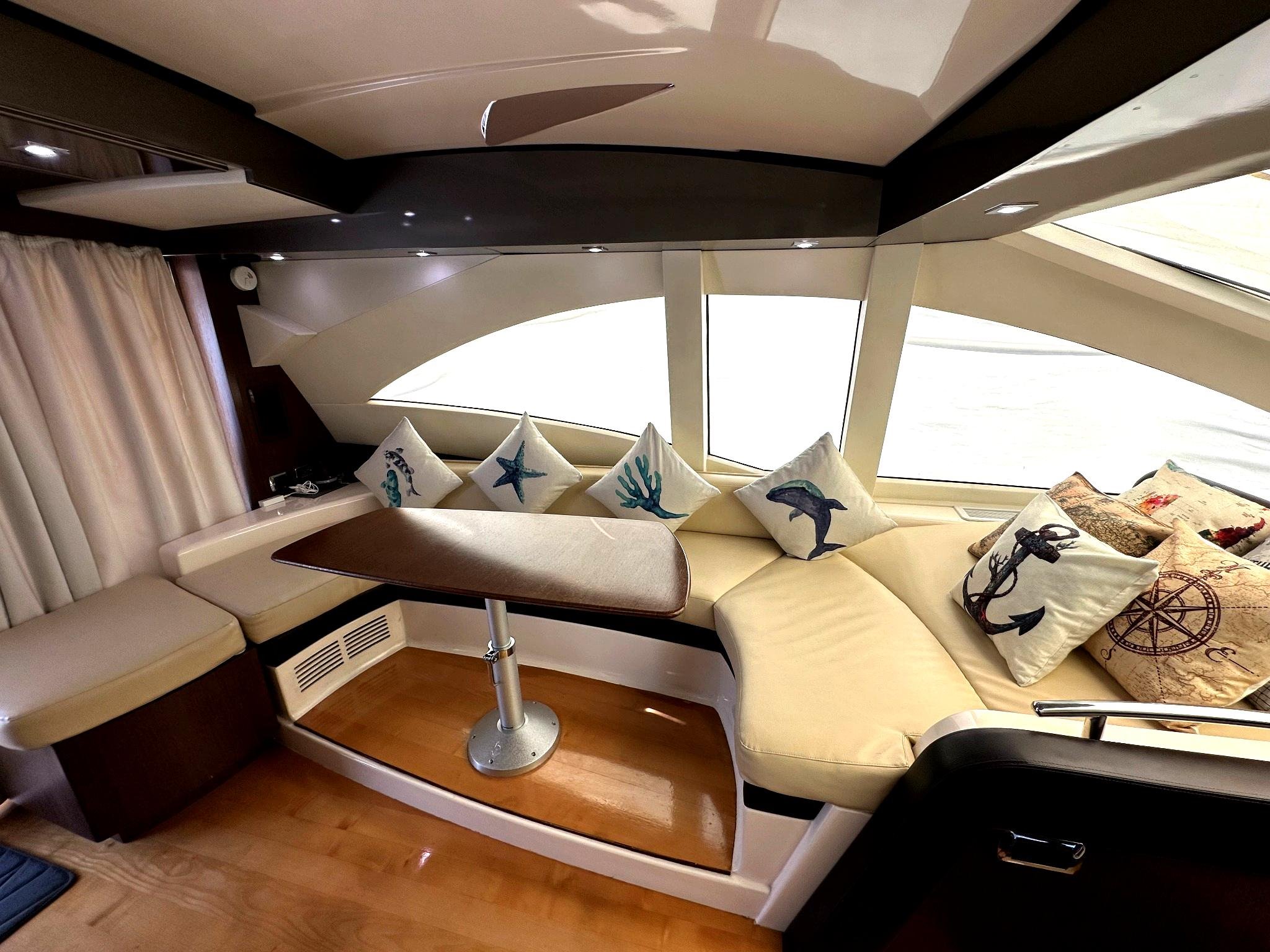 Inside, the yacht boasts two large, well-appointed bedrooms, offering generous space and privacy for extended stays. The low engine hours also ensure reliable performance and longevity, making this yacht a wise investment for discerning buyers.