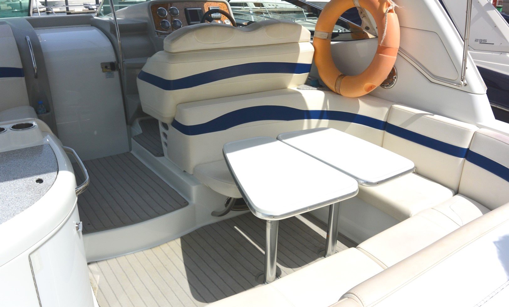 The Formula 31 PC (Performance Cruiser) is a fantastic entry-level Sports Boat. Featuring 2 Cabins, ample Seating Areas, an equipped Galley and Head, the stylish cruiser is designed for couples or small families to sail the sea and enjoy an overnight stay onboard.