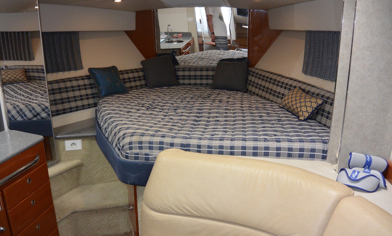 This model is powered by twin Volvo Penta 5.7 Engines to offer a fast performance of 37 knots at full speed.