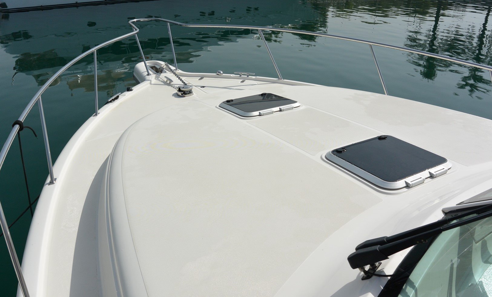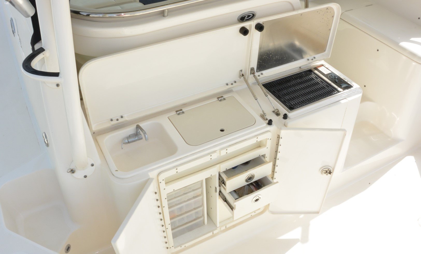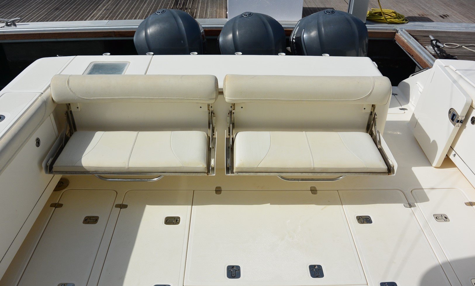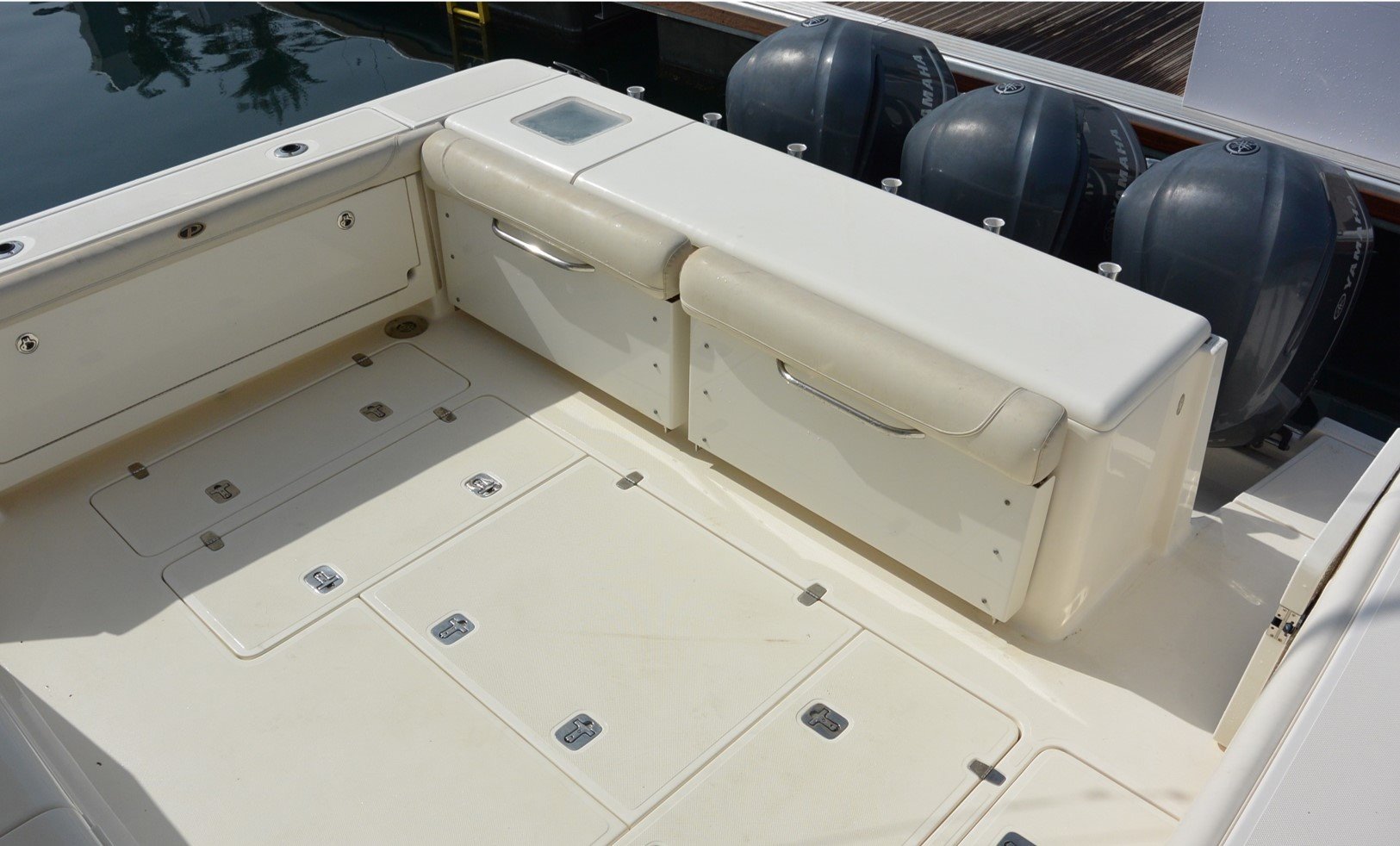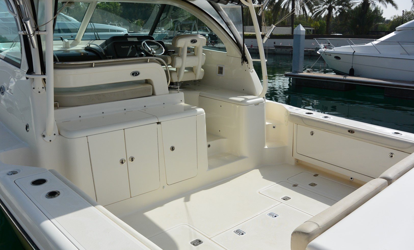 With one owner from new and boasting an upgraded interior layout, the vessel is in very good condition and ready to be enjoyed by its new owner. Featuring a fully integrated hardtop and windshield, engineered to support an optional factory-built tower. Her sleek, express style with a 13-foot beam results in an expansive cockpit and roomy interior below decks; the perfect boat for weekend fishing trips