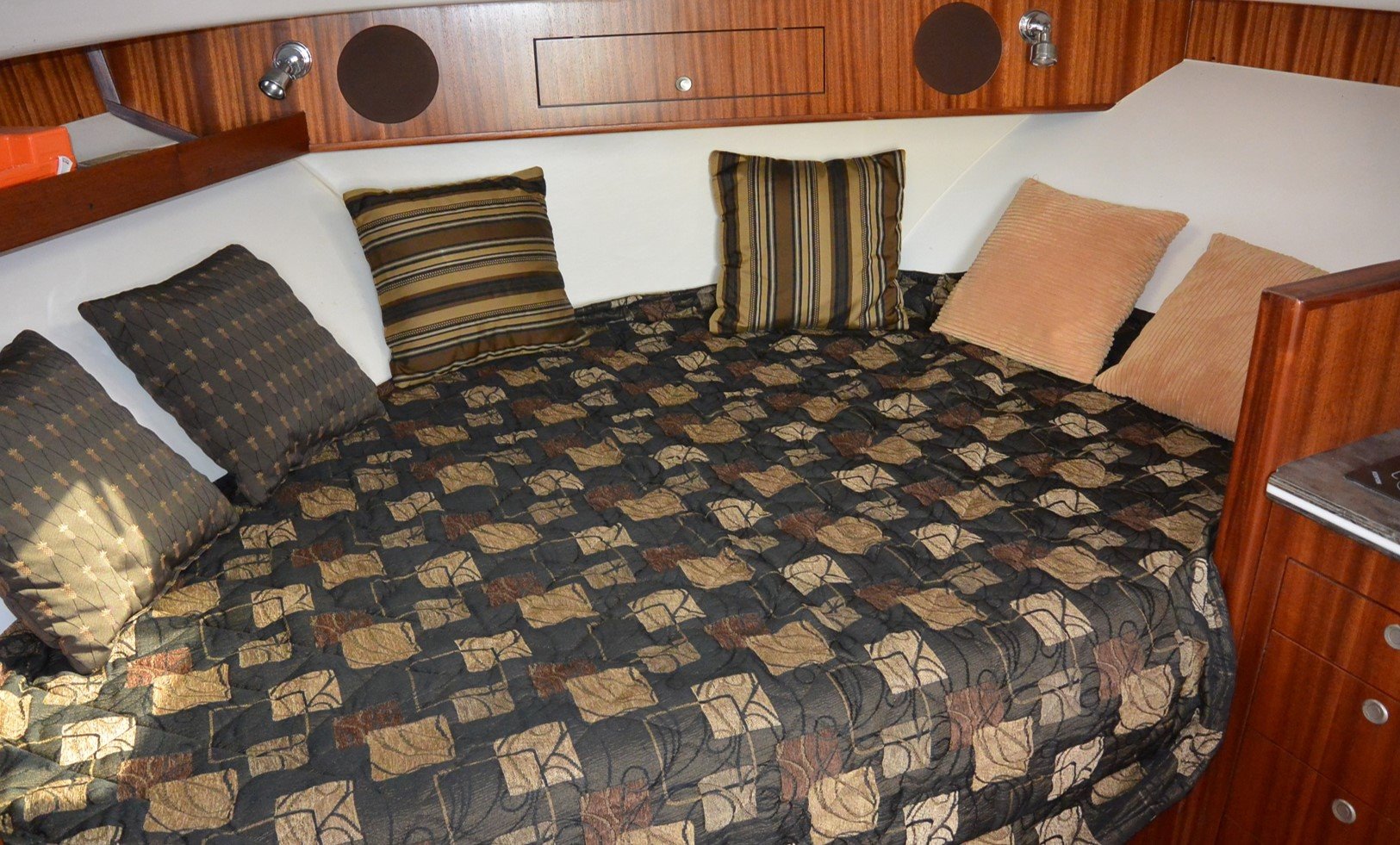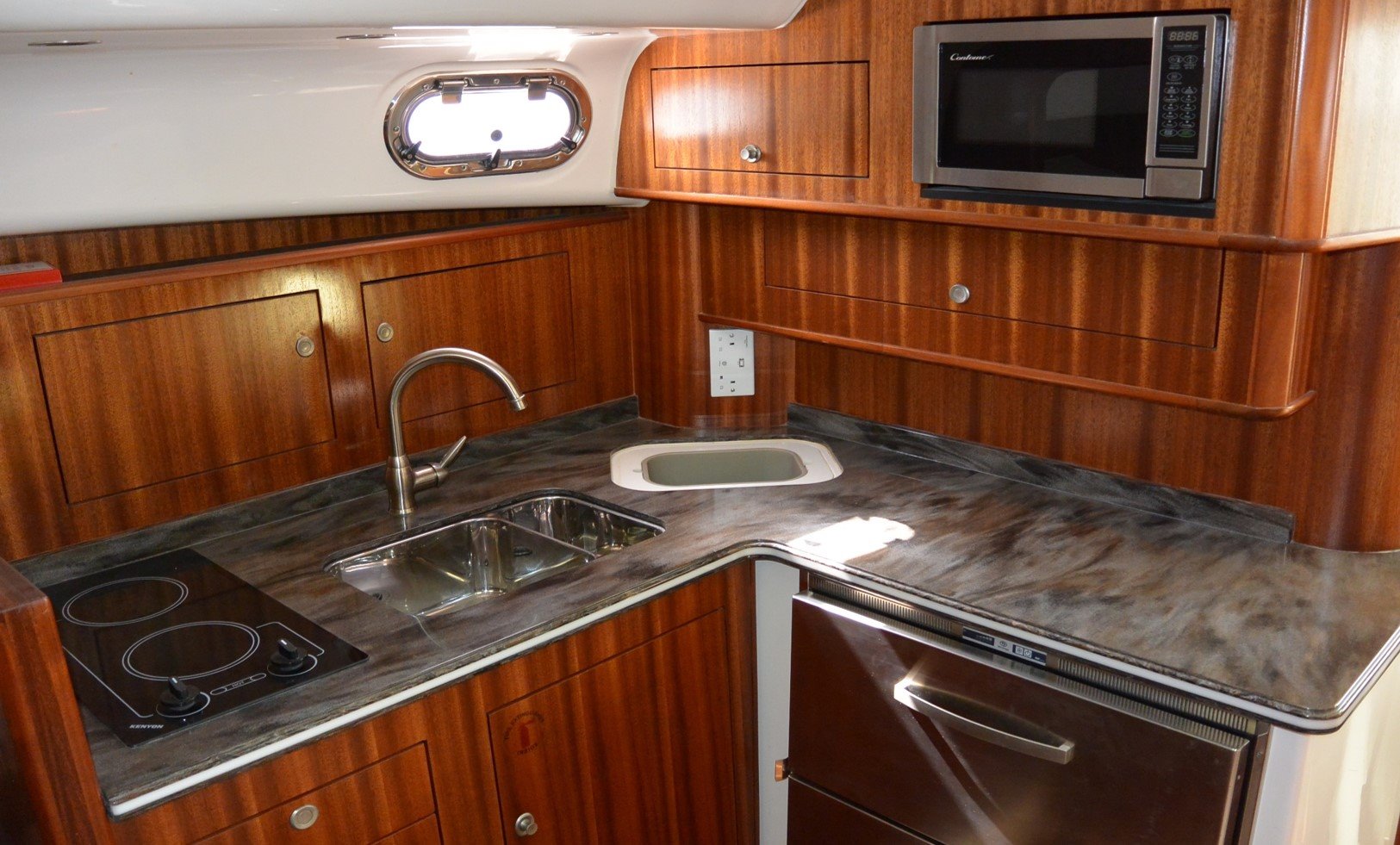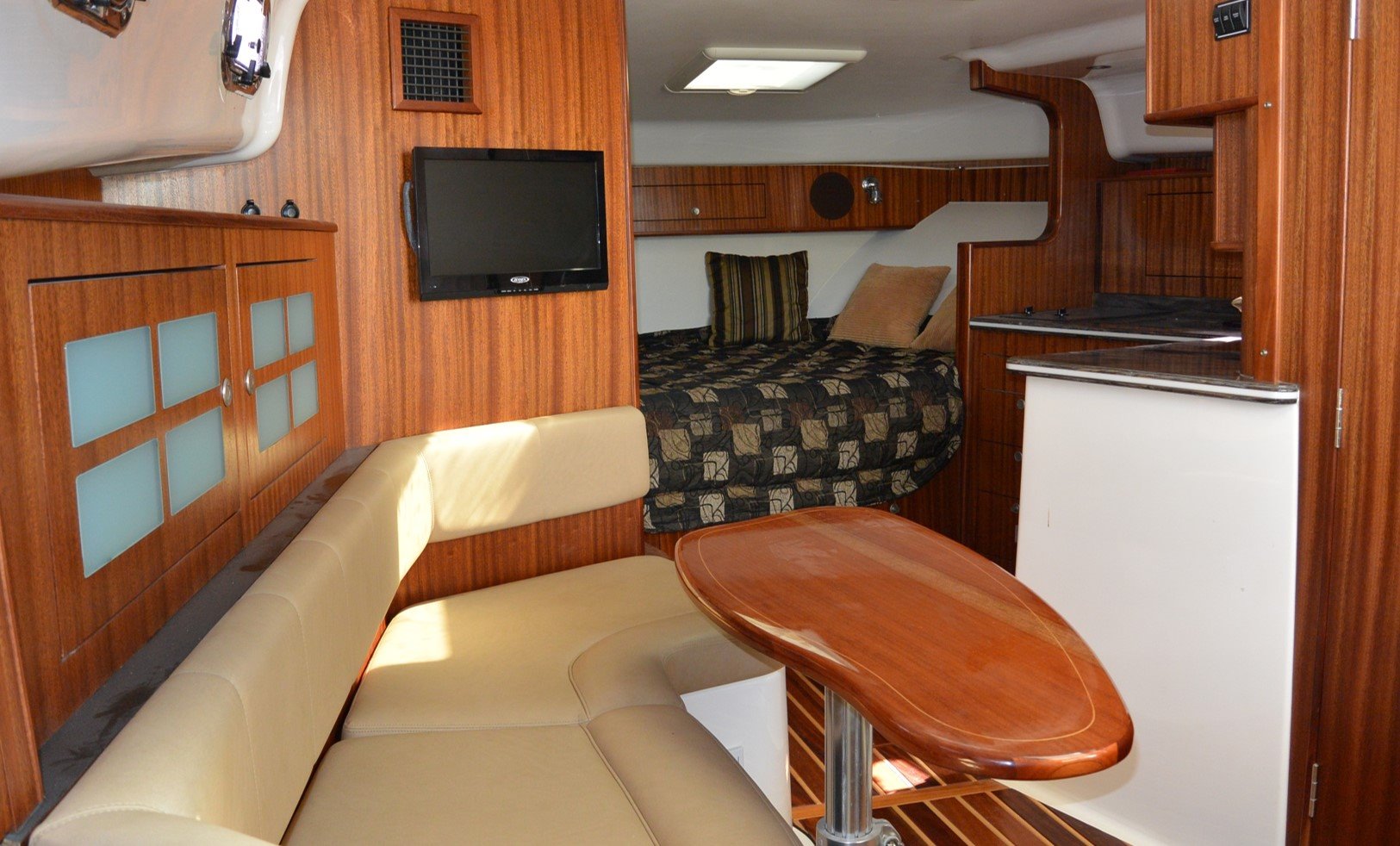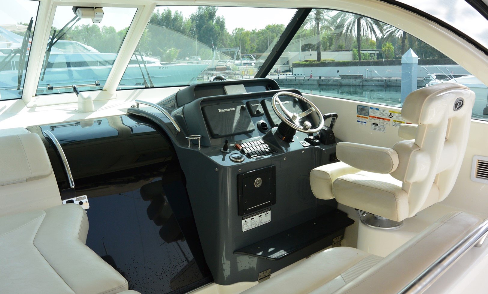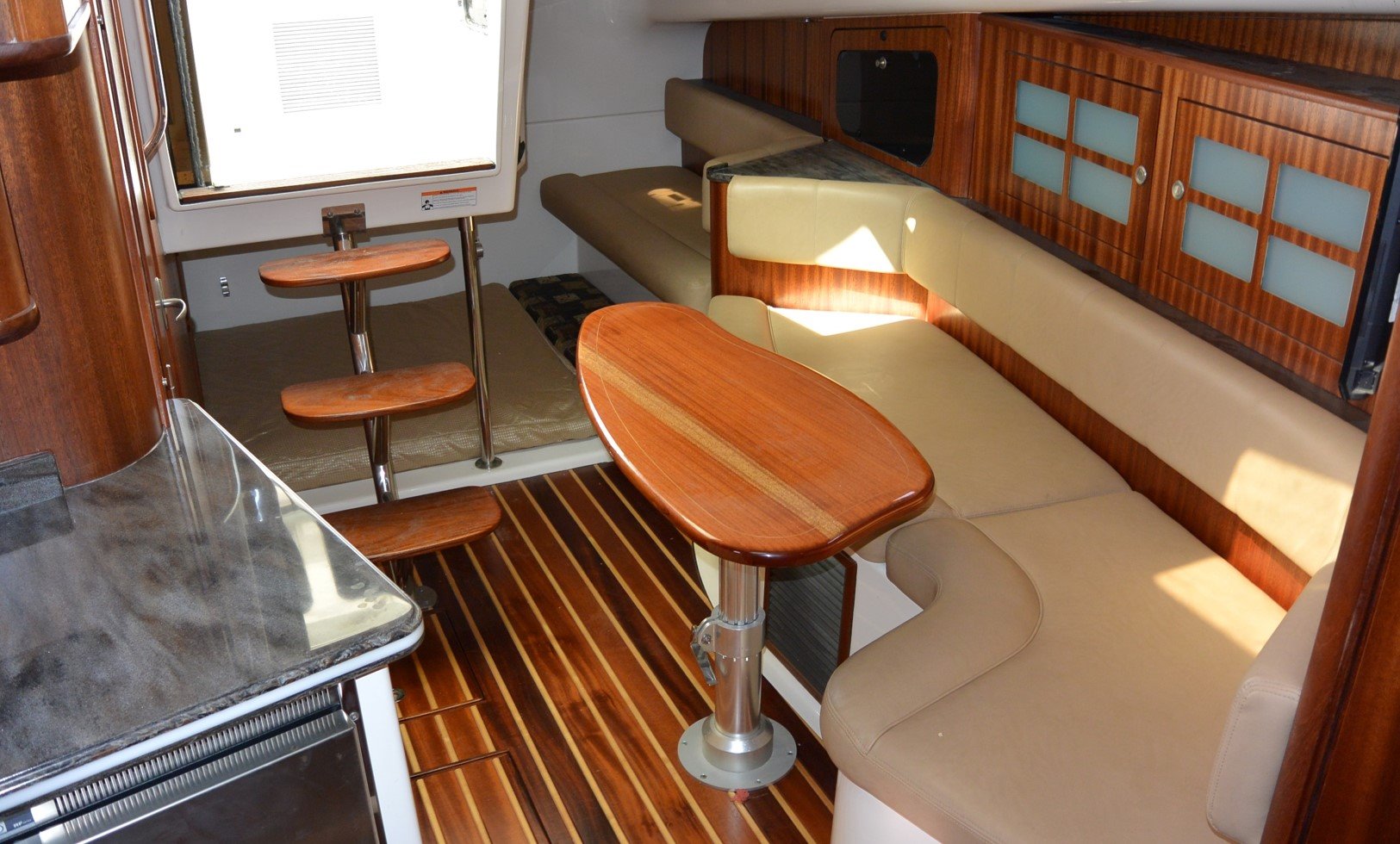 Measuring just under 40 feet in length, the Pursuit 385 has all the comforts of home, with a unique 360-degree water view.