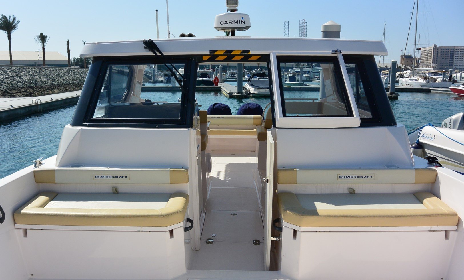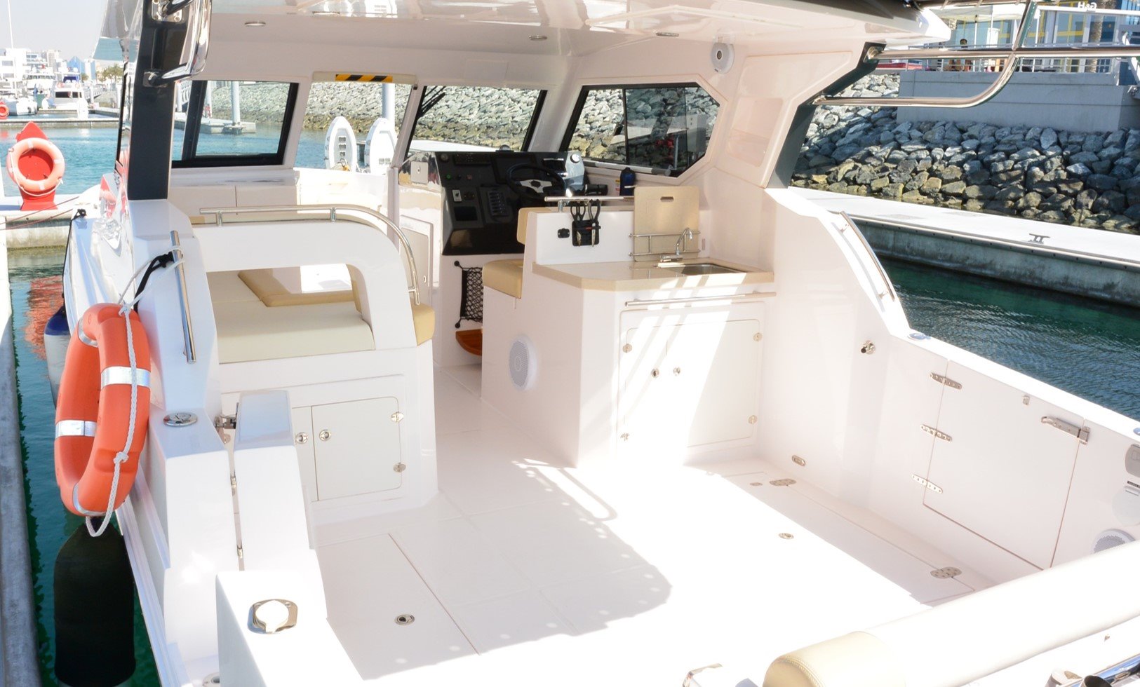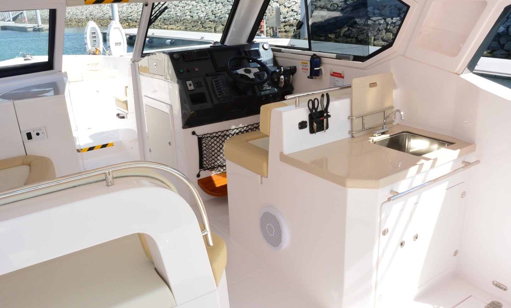 The enclosed hard-top is designed for fishing, coastal trips or exploring the open sea! Its overall layout is designed to keep its owner protected from the elements while still offering generous space to move around and enjoy the surroundings.