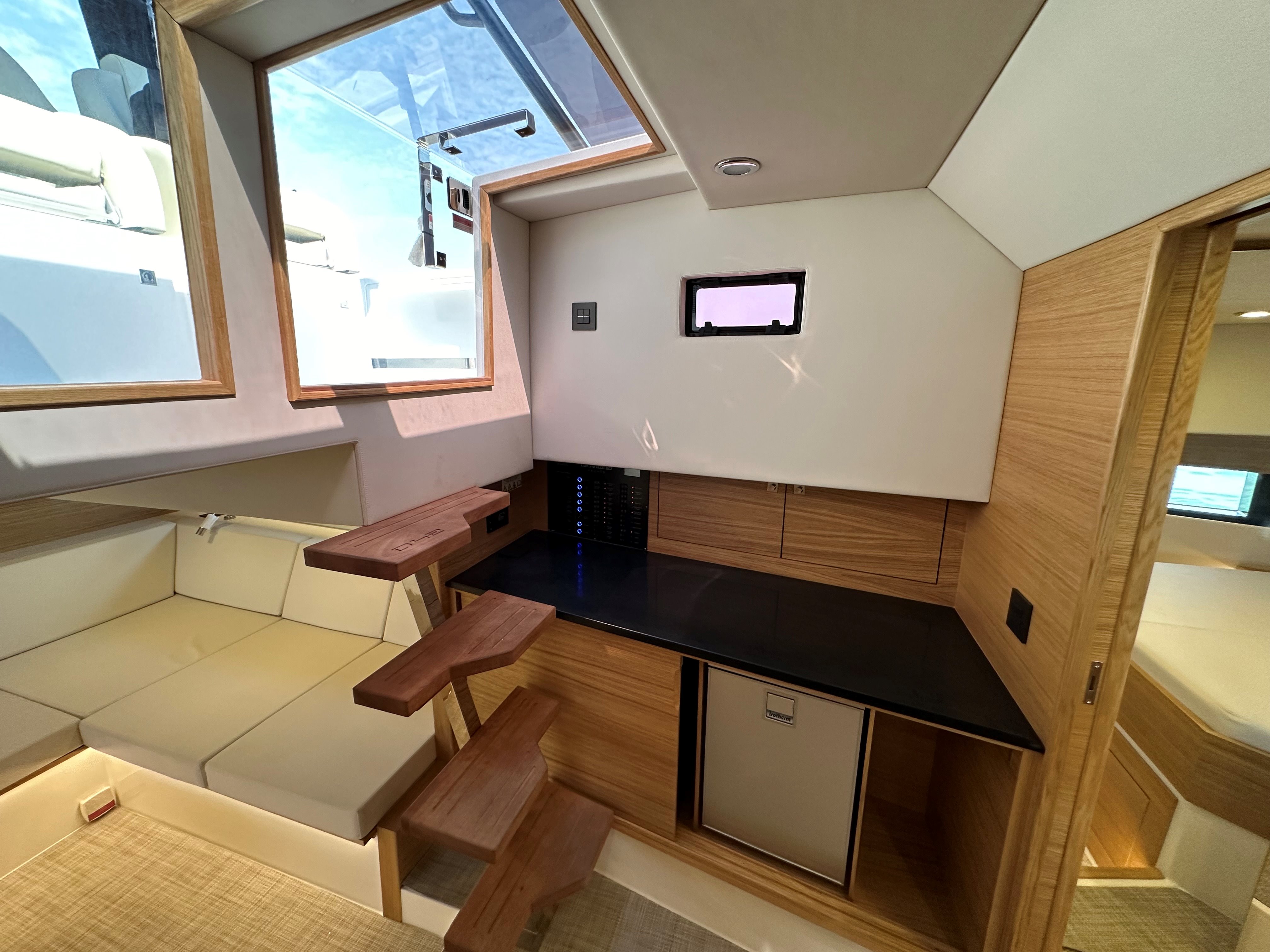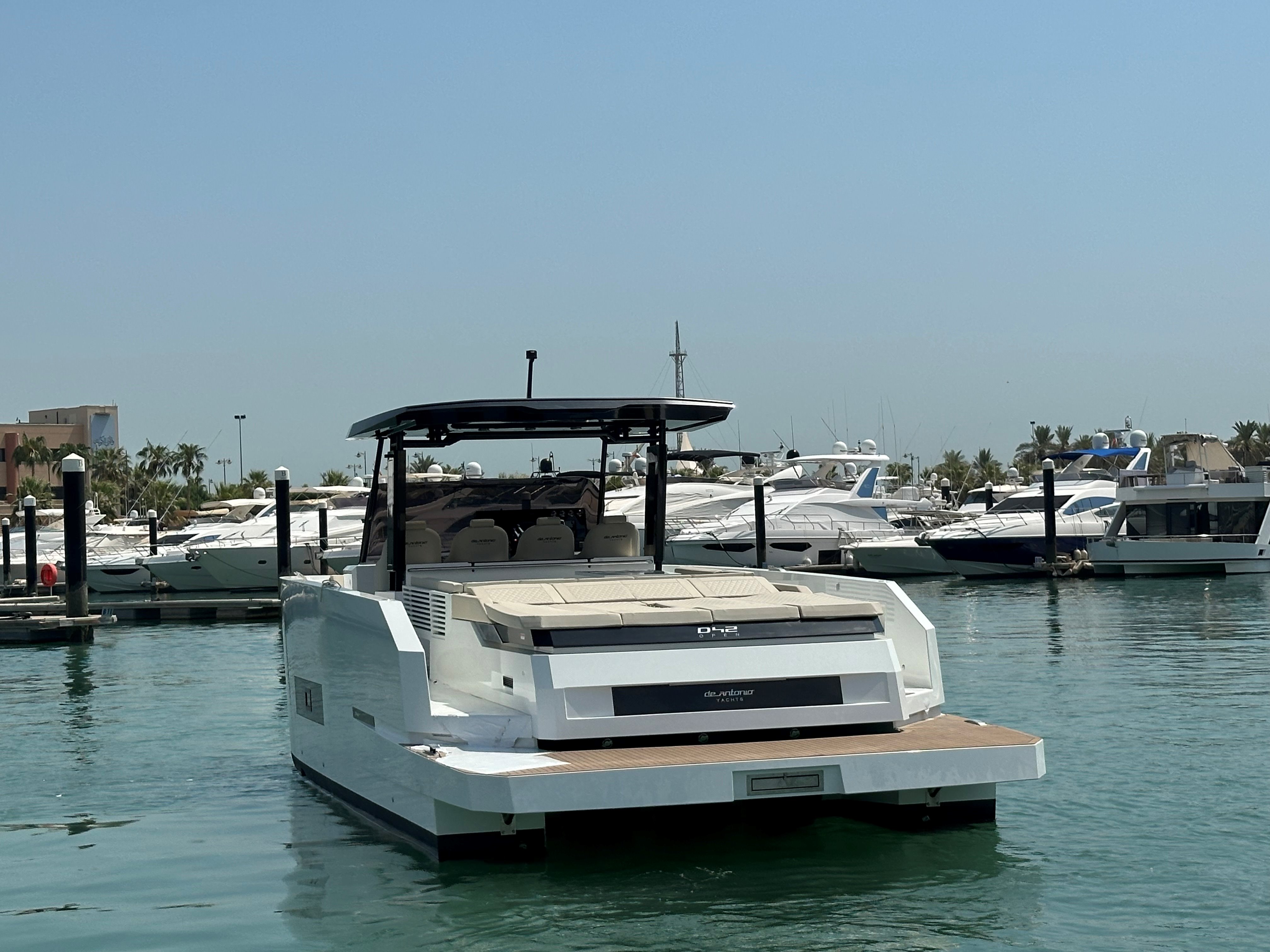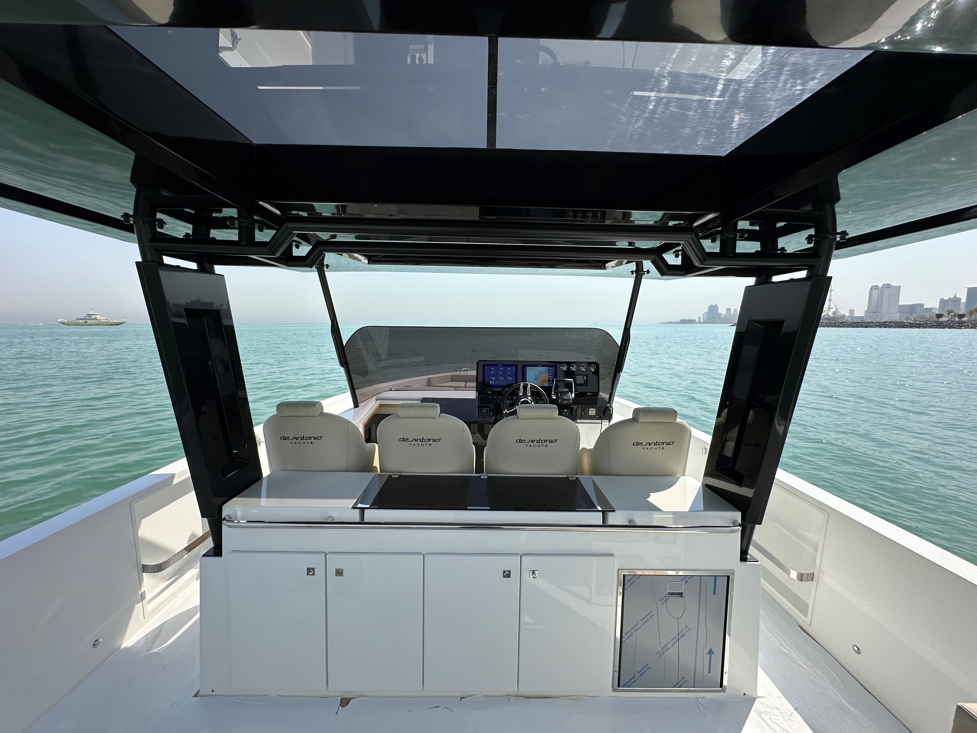 The 2023 De Antonio D42 Open is a top choice for anyone looking for a reliable, high-performance boat. With only 12 engine hours, it's practically new and ready to hit the water. The included cradle ensures easy storage and transportation. For those who value precision, the bow thruster makes maneuvering a breeze, even in tight spots. This model also features a high-performance step hull, ensuring a smooth and efficient ride. Plus, the built-in water toy garage offers convenient storage for all your water sports gear, making it the perfect vessel for both relaxation and adventure.