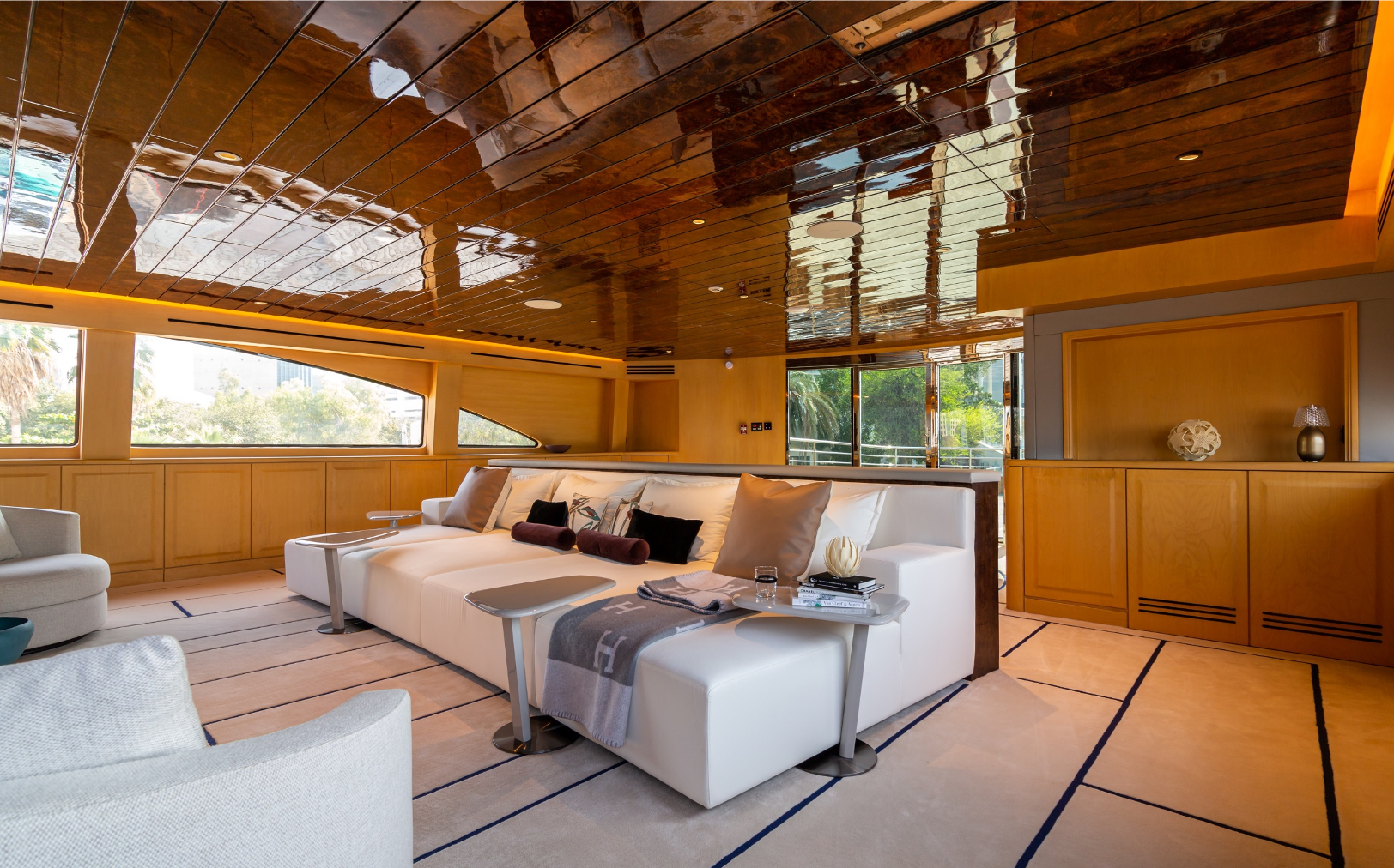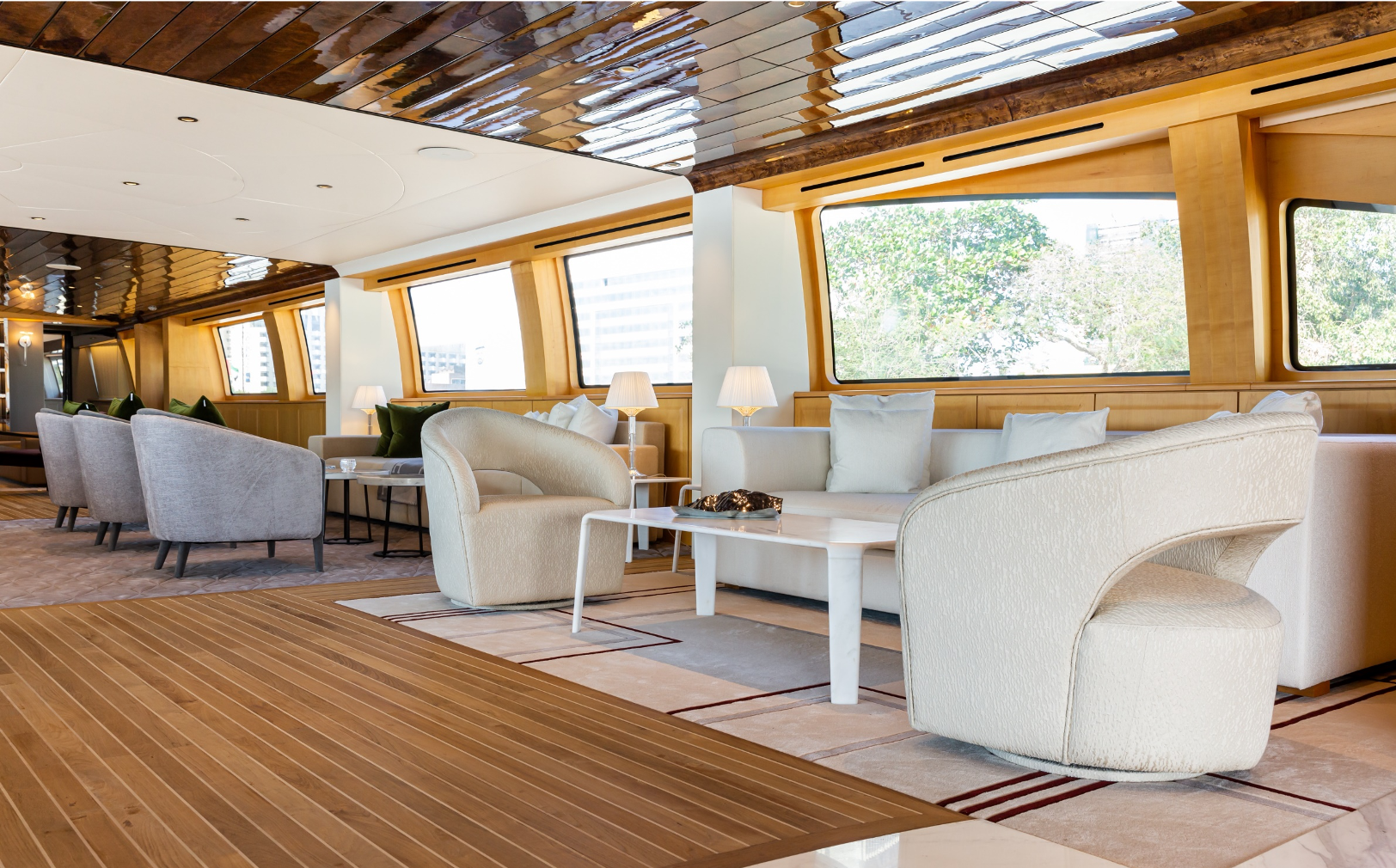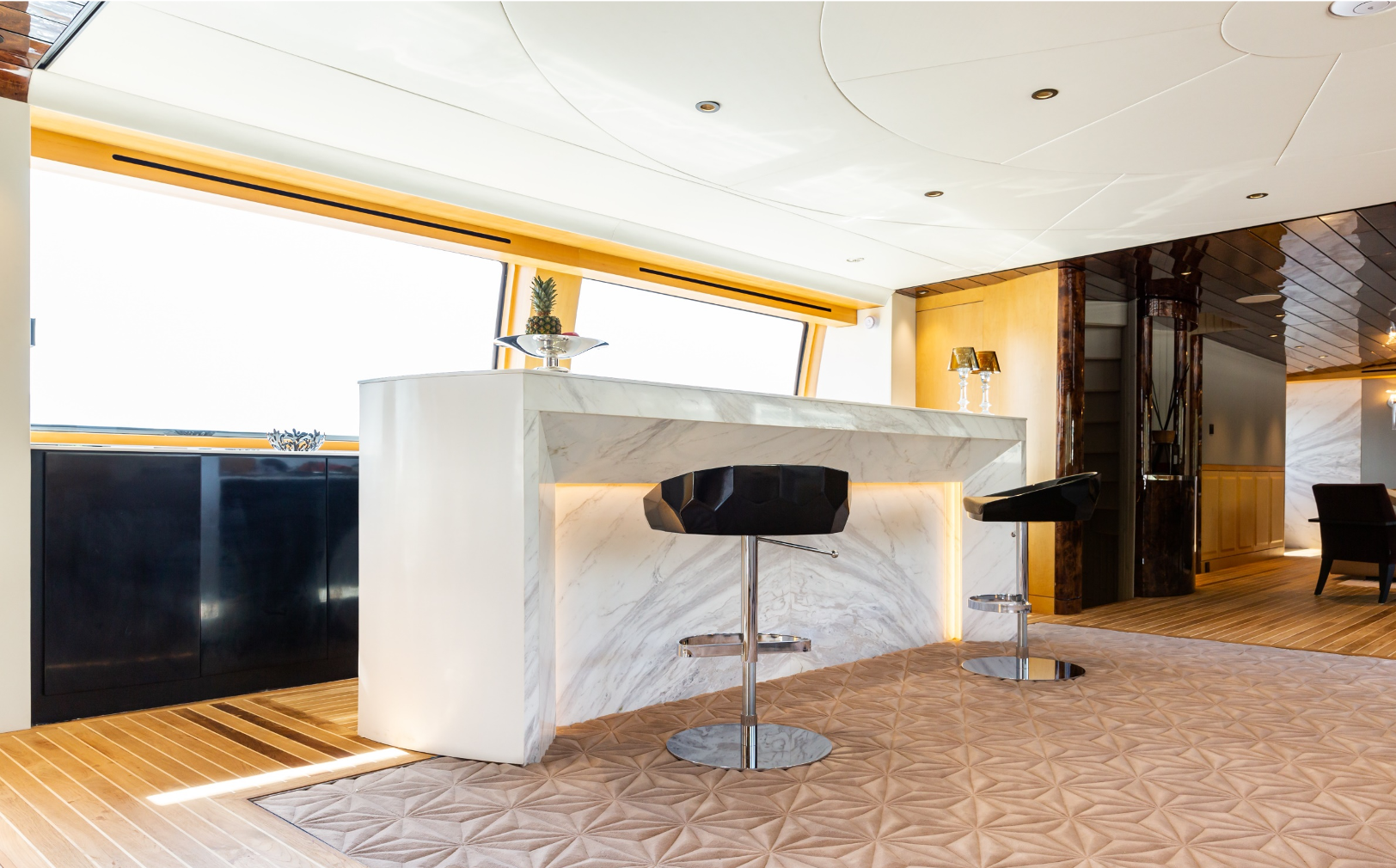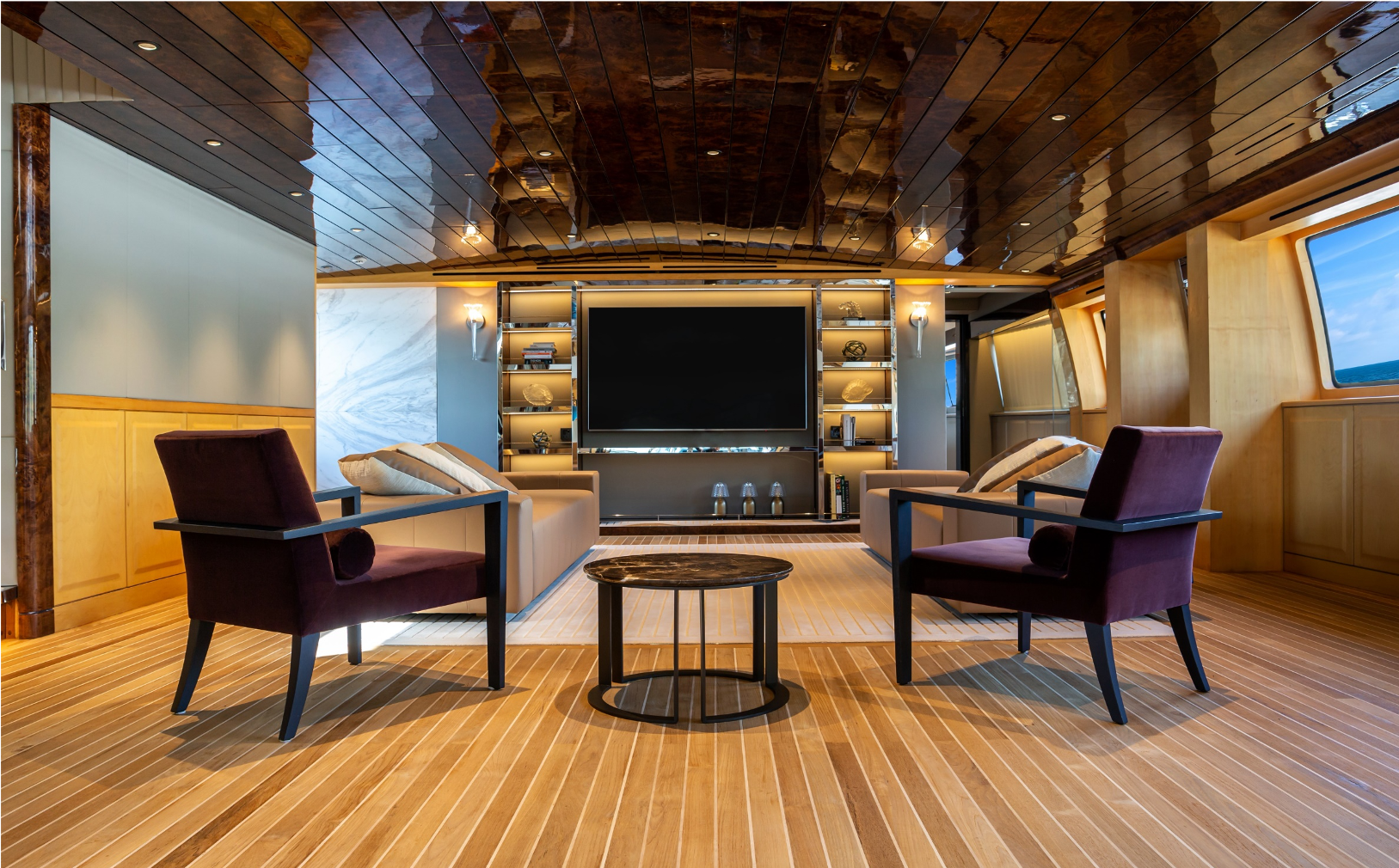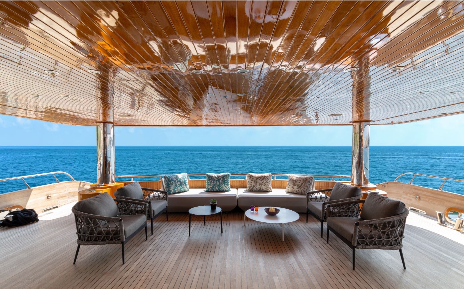 She also features great outdoor spaces, including an aft deck complete with an alfresco dining table where guests can enjoy their time onboard.