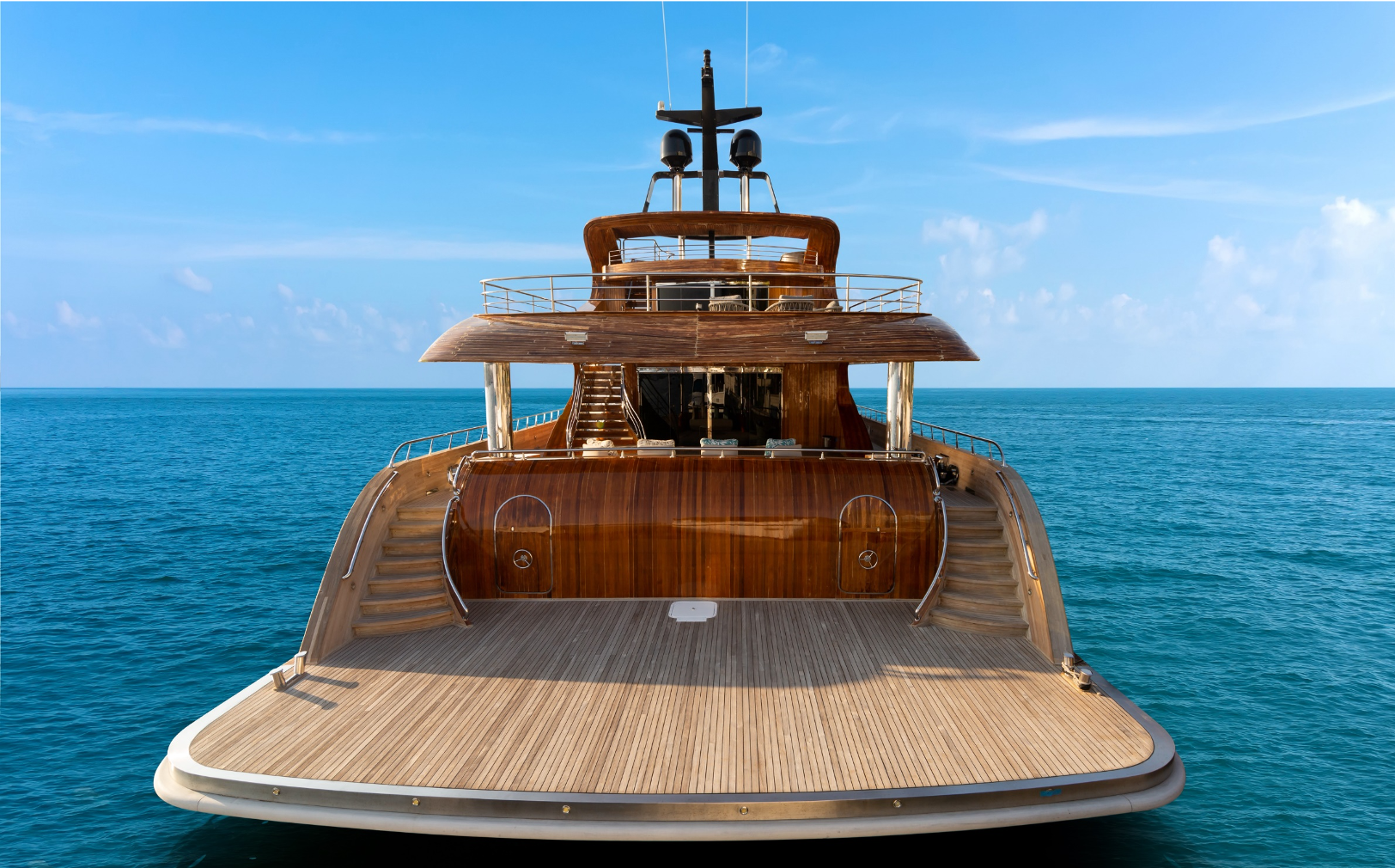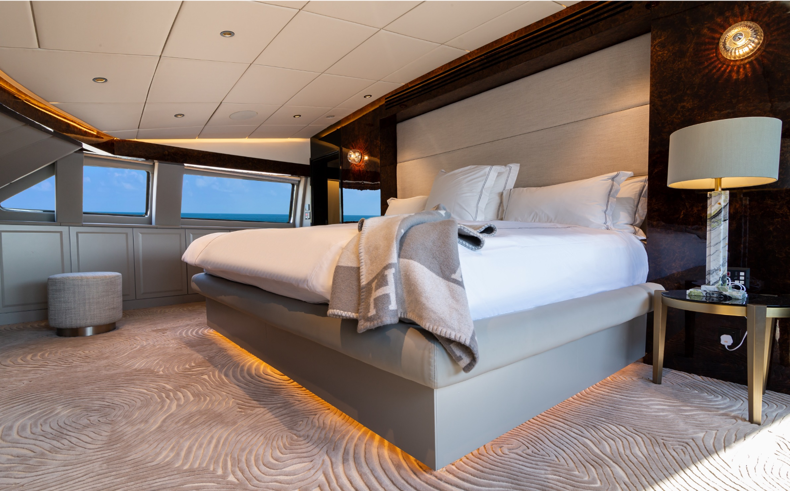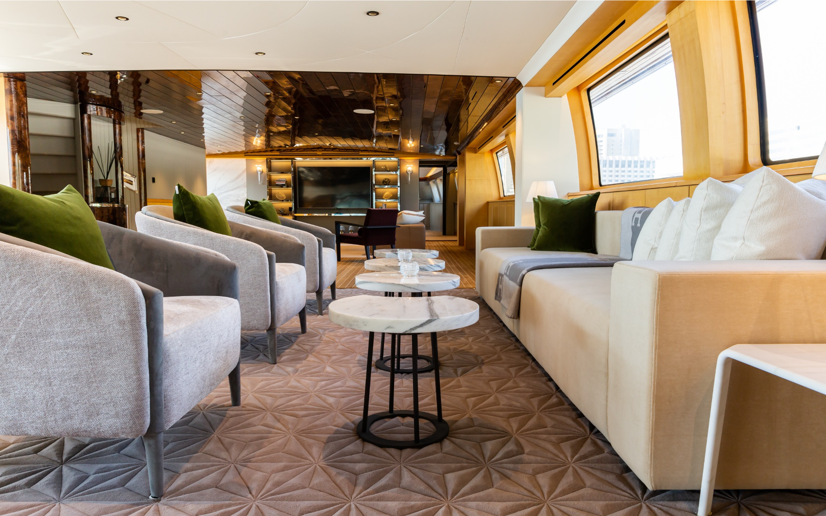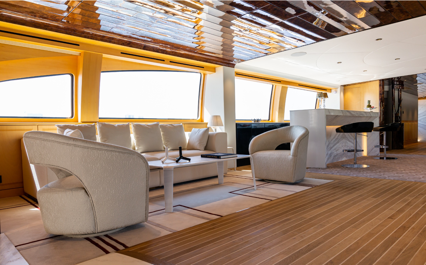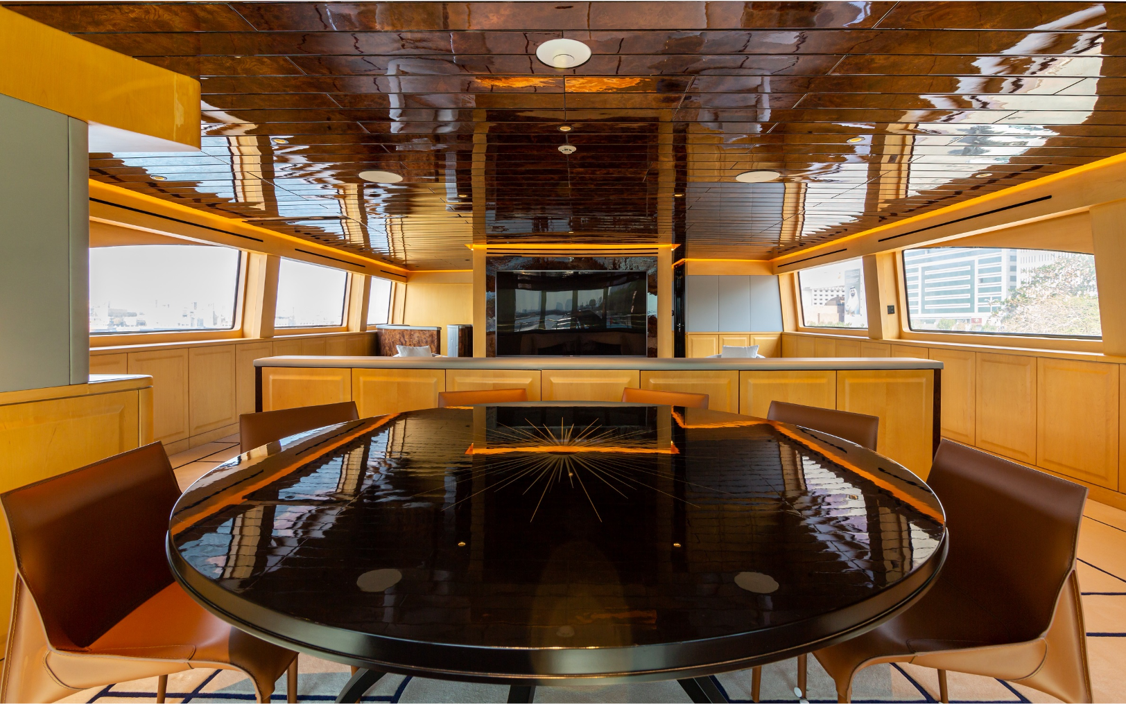 She also features great outdoor spaces, including an aft deck complete with an alfresco dining table where guests can enjoy their time onboard.