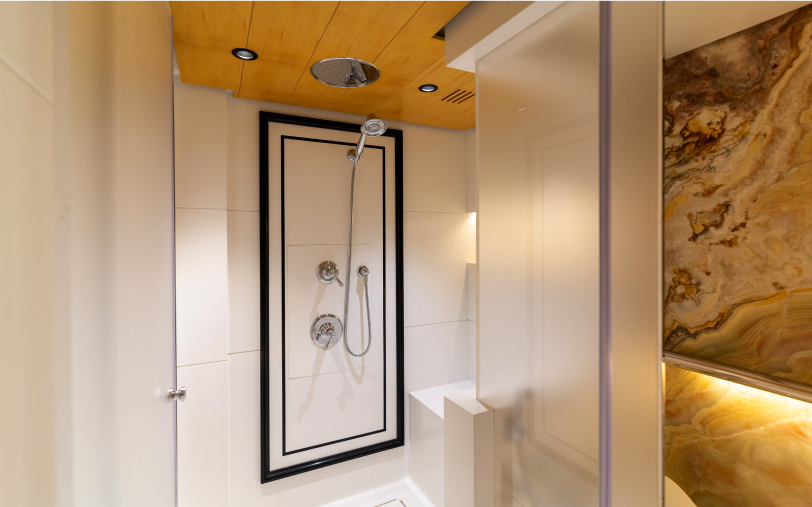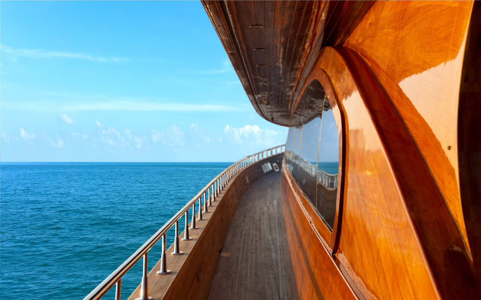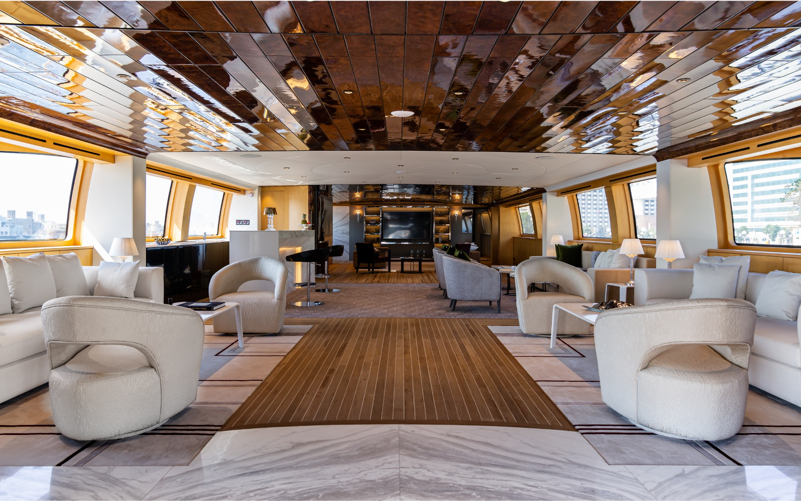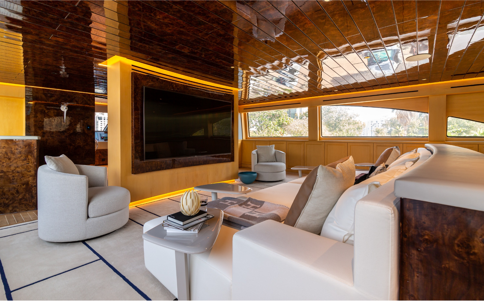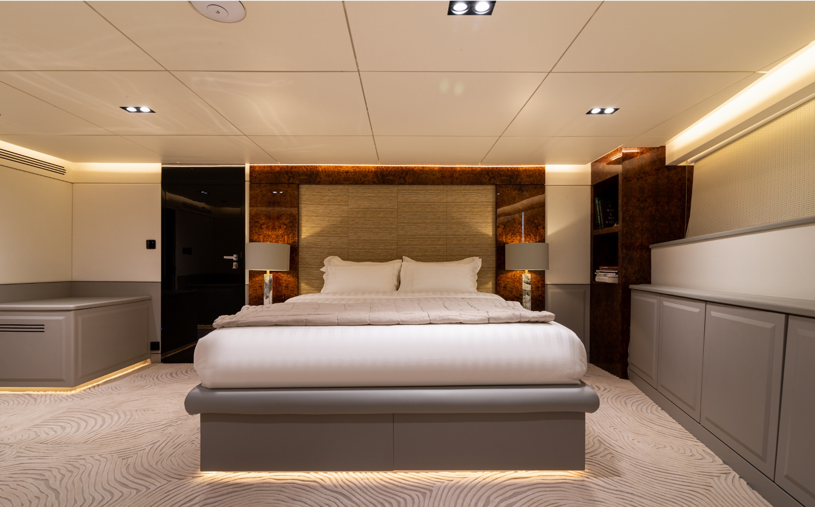 She also features great outdoor spaces, including an aft deck complete with an alfresco dining table where guests can enjoy their time onboard.