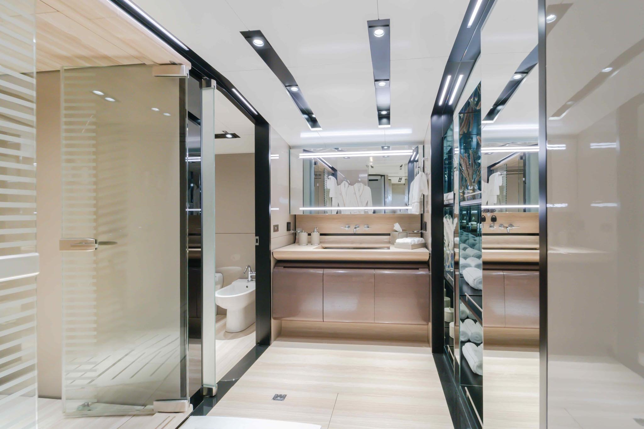She can comfortably accommodate up to 10 guests in 5 suites comprising two VIP cabins. She is also capable of carrying up to 7 crew onboard to ensure a relaxed luxury yacht experience.