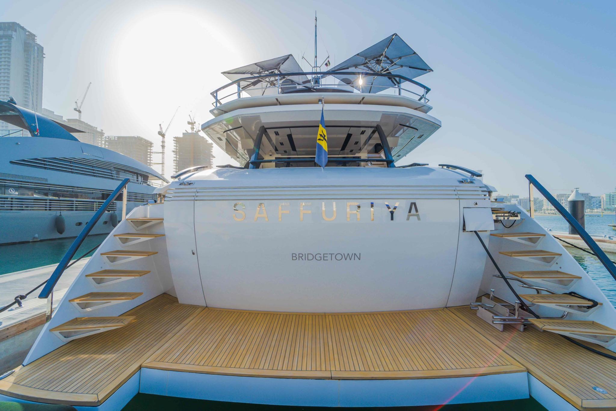 The 37.75m/123'10" motor yacht 'Saffuriya' was built by Peri Yachts in Turkey at their Antalya shipyard. Her interior is styled by design house Scaro Design and she was completed in 2011. This luxury vessel's exterior design is the work of Dixon Yacht Design and she was last refitted in 2020. She is available for yacht charter in Dubai.