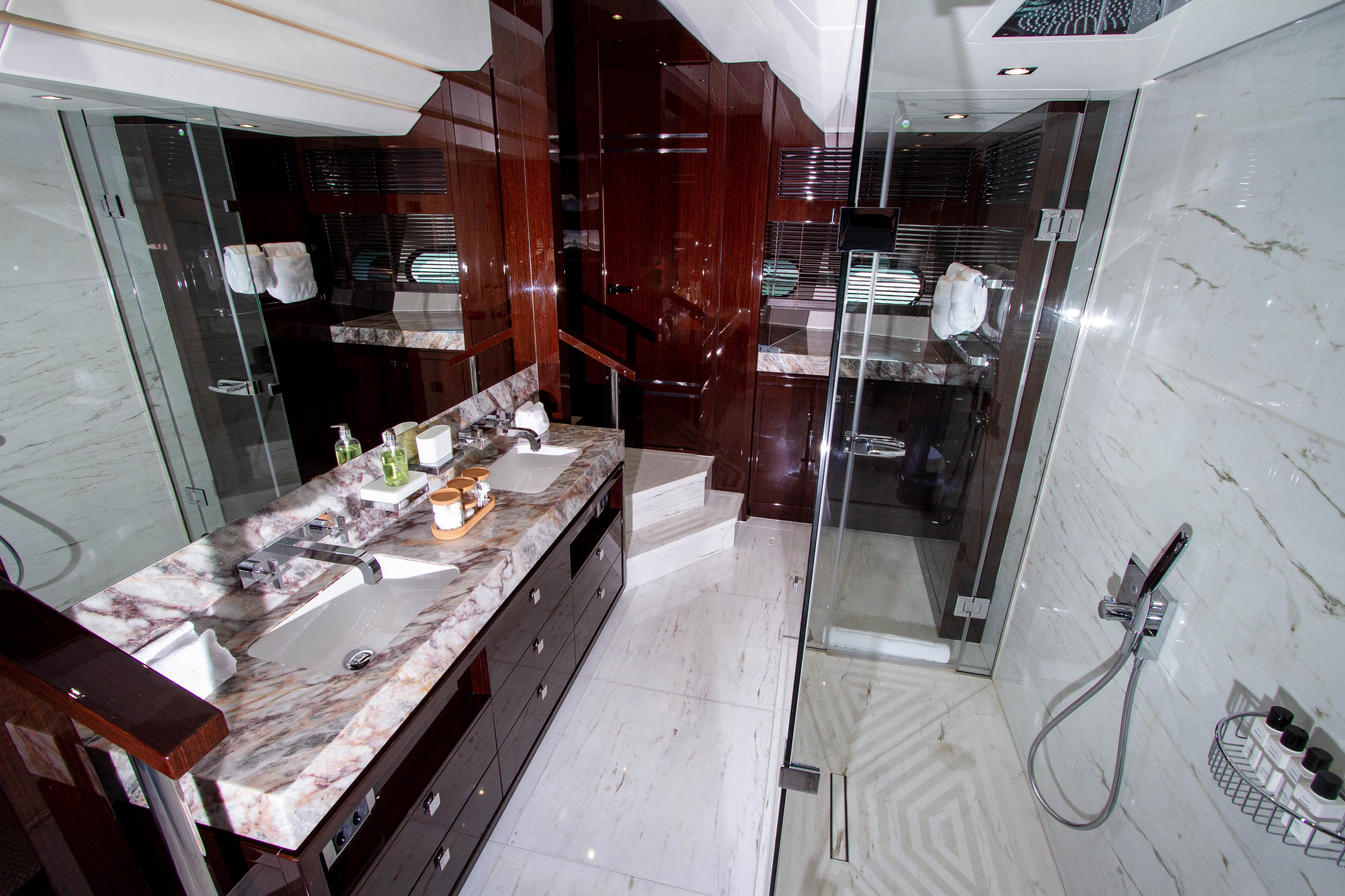 Sunseeker 116 is a luxury yacht for charter in Dubai. Her exterior layout of this yacht makes it a fantastic yacht rental choice for anyone who’s looking to host 25 guests on a sunny day. A large hot tub can be found on the foredeck, and an al fresco sitting and dining area can be found on the flybridge covered by its retractable sunroof.