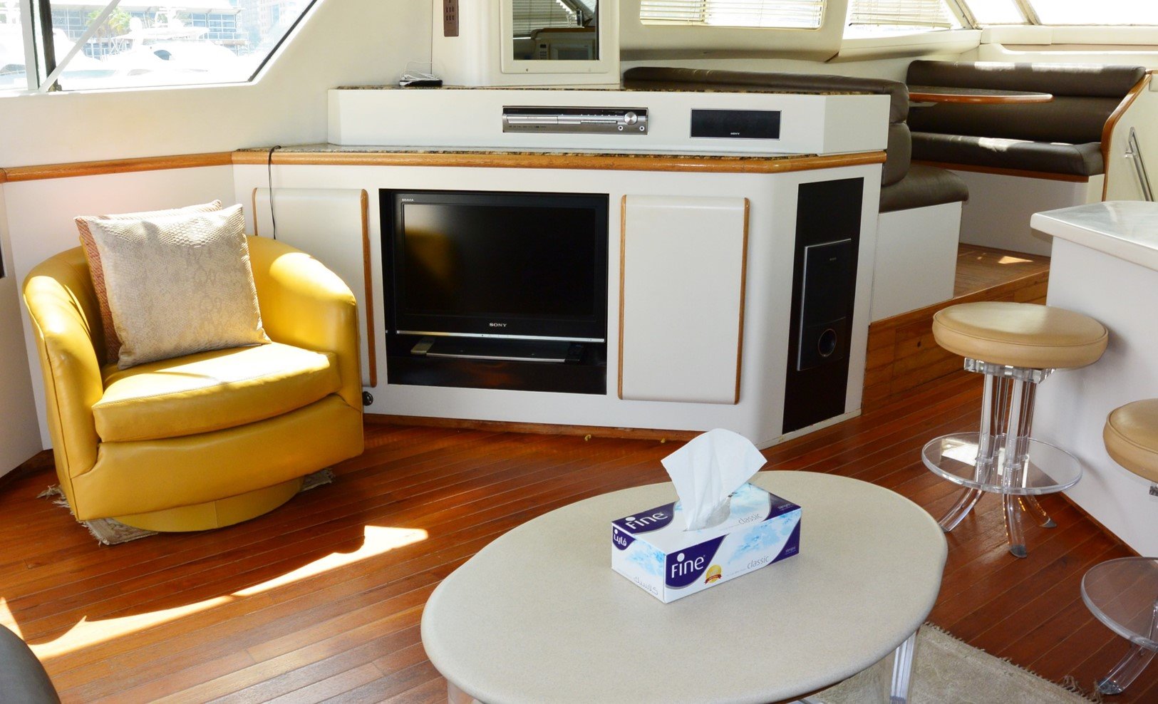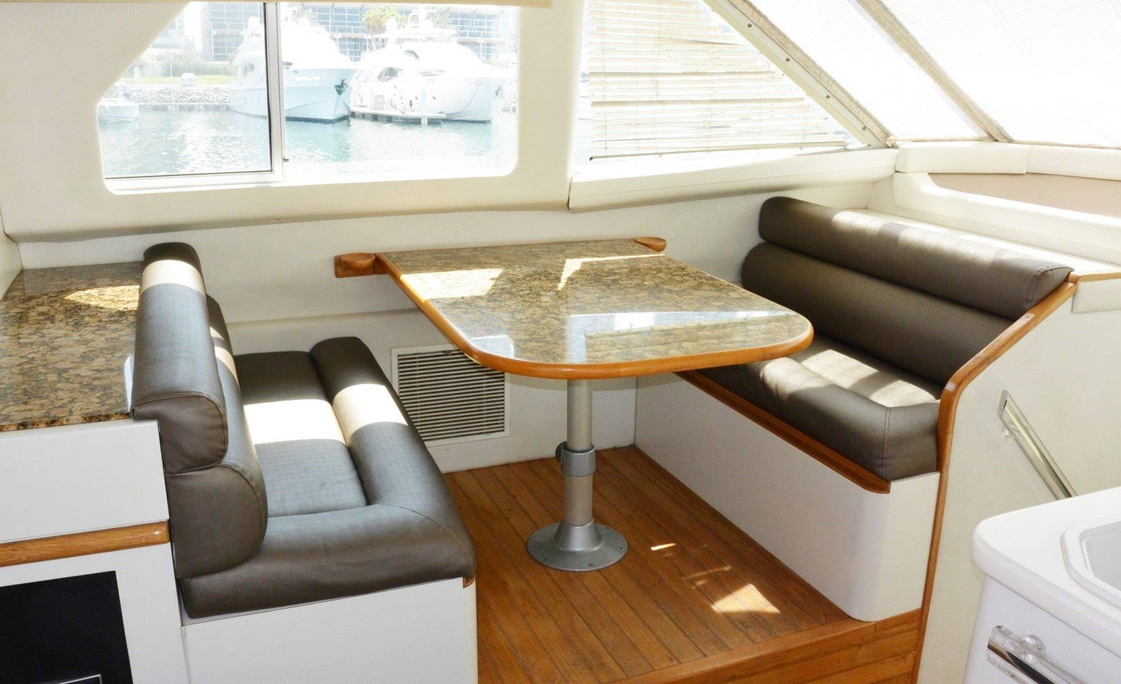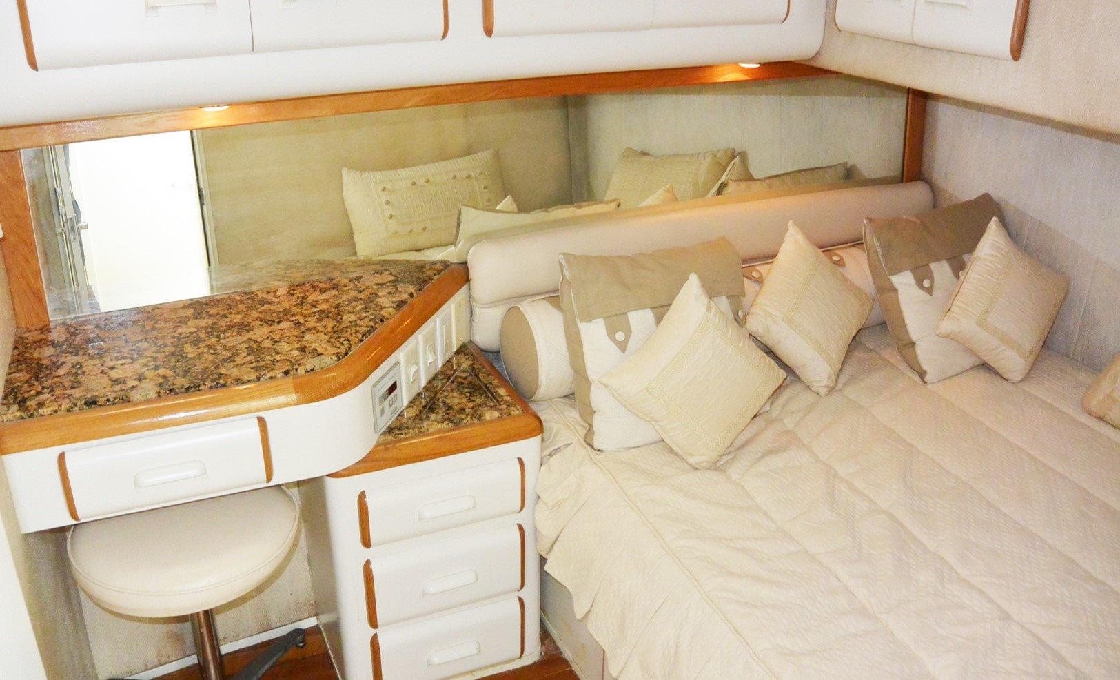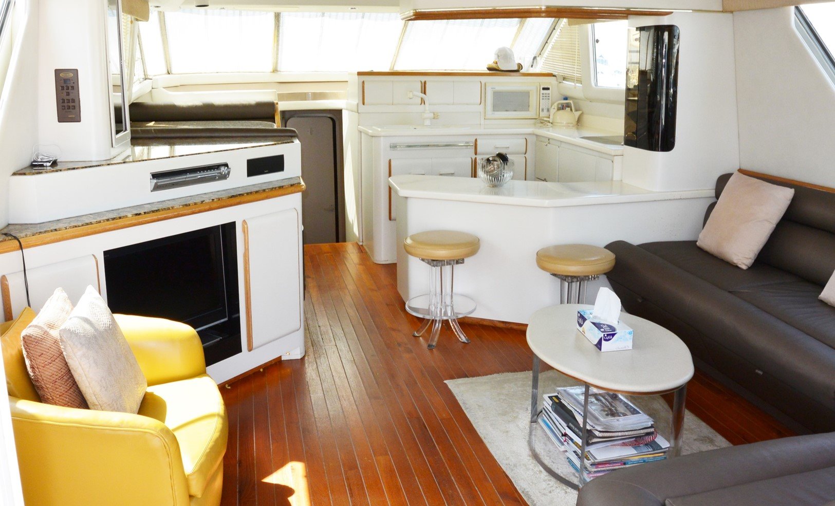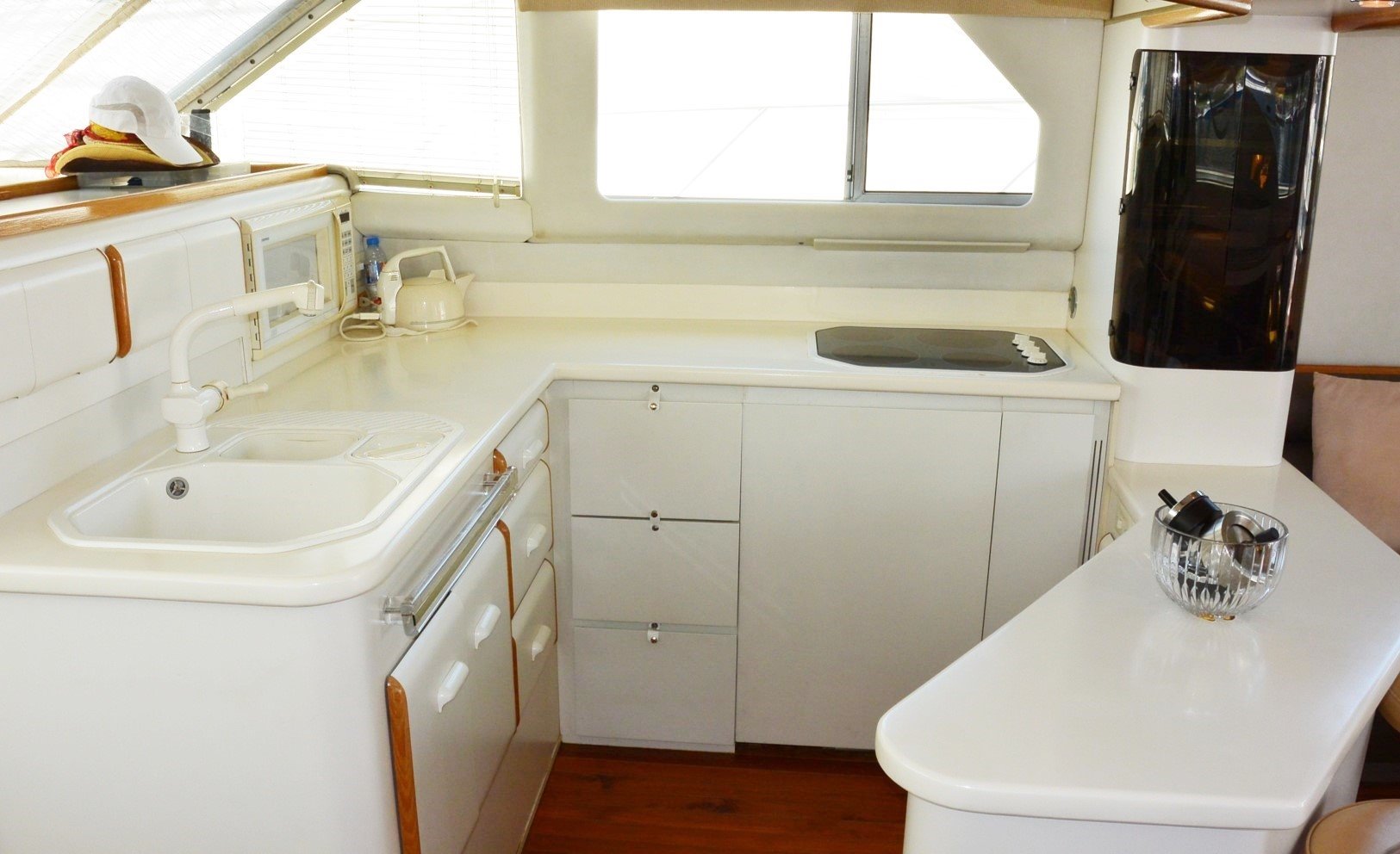 Featuring a spacious cockpit and flybridge, the ample spacing also flows into a thoughtfully designed interior, with a three cabin layout to accommodate up to 6 guests comfortably.