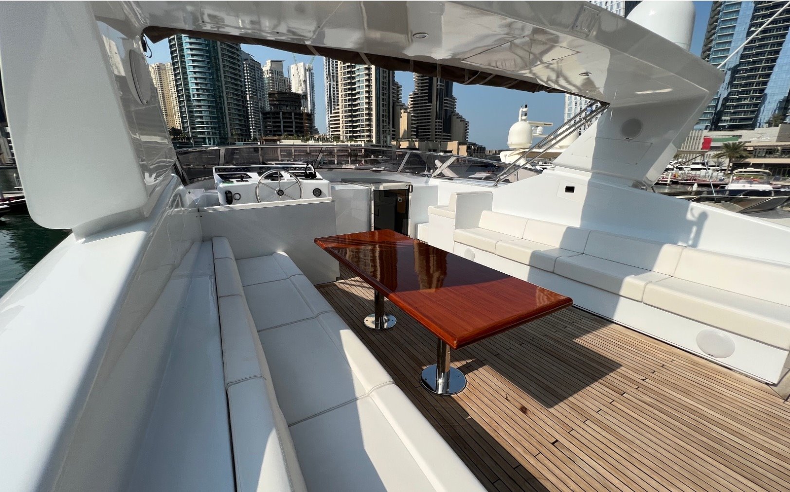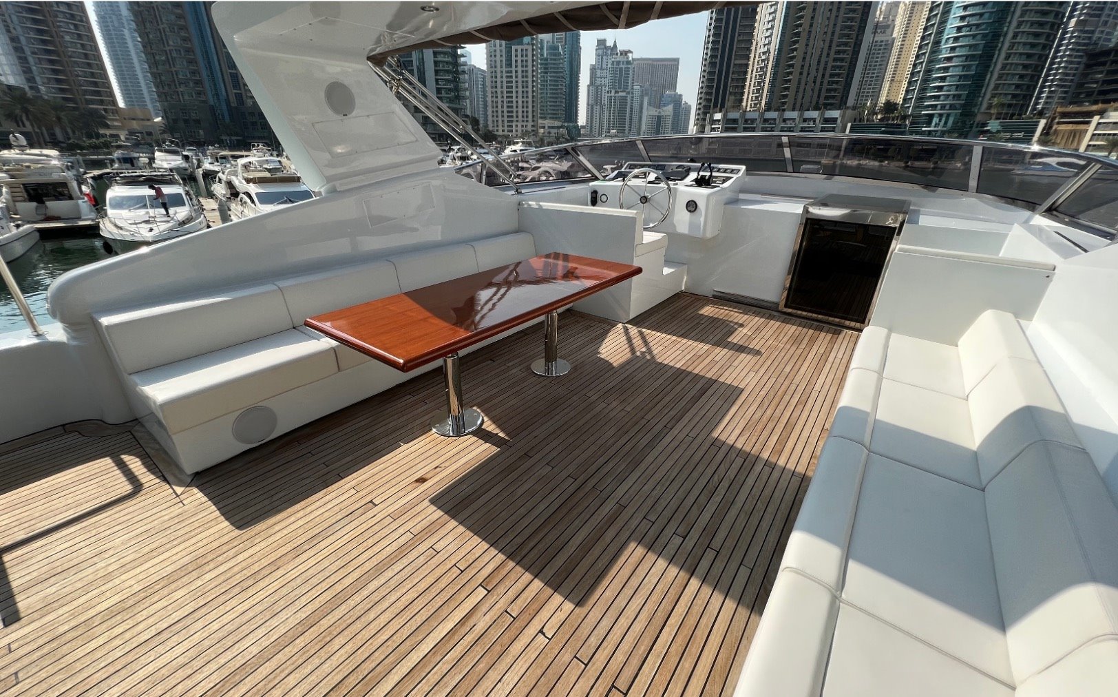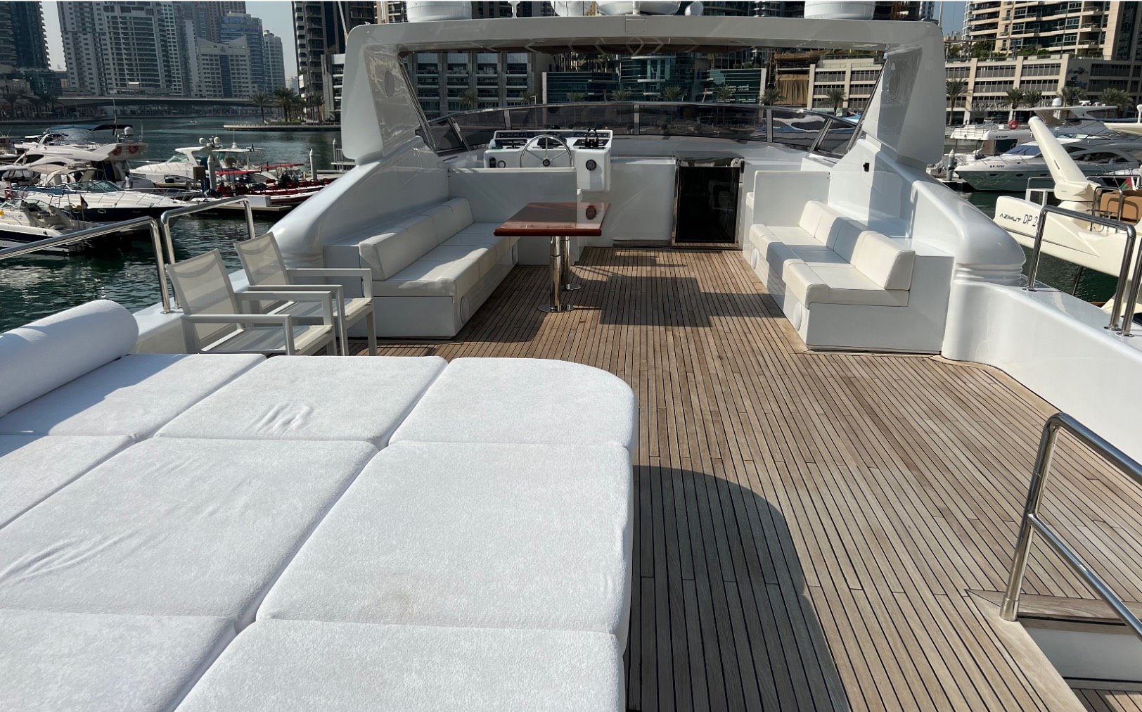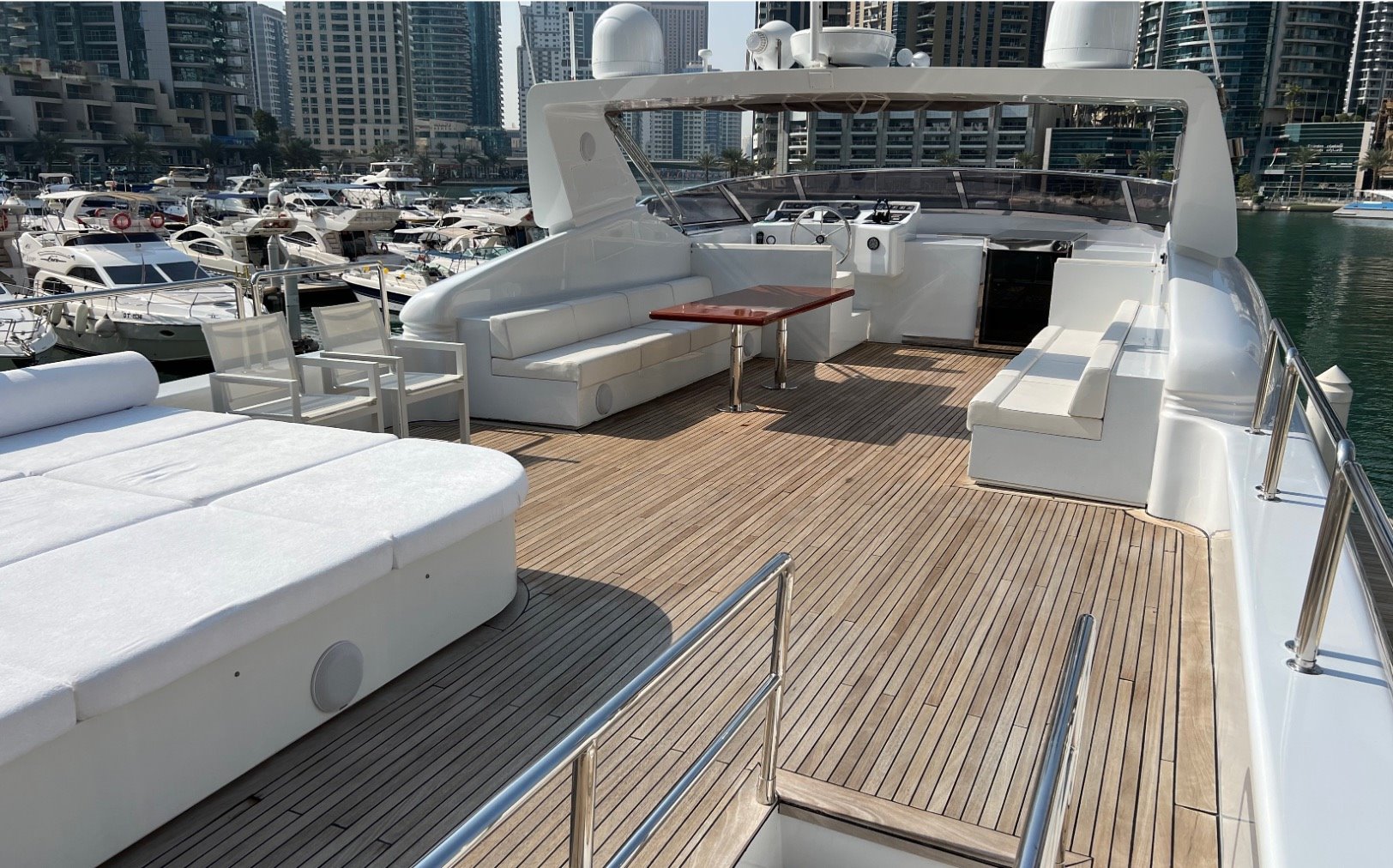 This Technomarine 90 feet (27.61m) is built to the highest standards of safety and elegance and got a recent interior / exterior refit. The yacht can provide you with luxurious and comfortable space for accommodating your loved ones around for a relaxing yet cheerful gathering. She is a luxurious yacht, with a spacious four cabin layout offering a smooth cruising speed of 18 knots. It has a large cockpit / flybridge for entertainment.