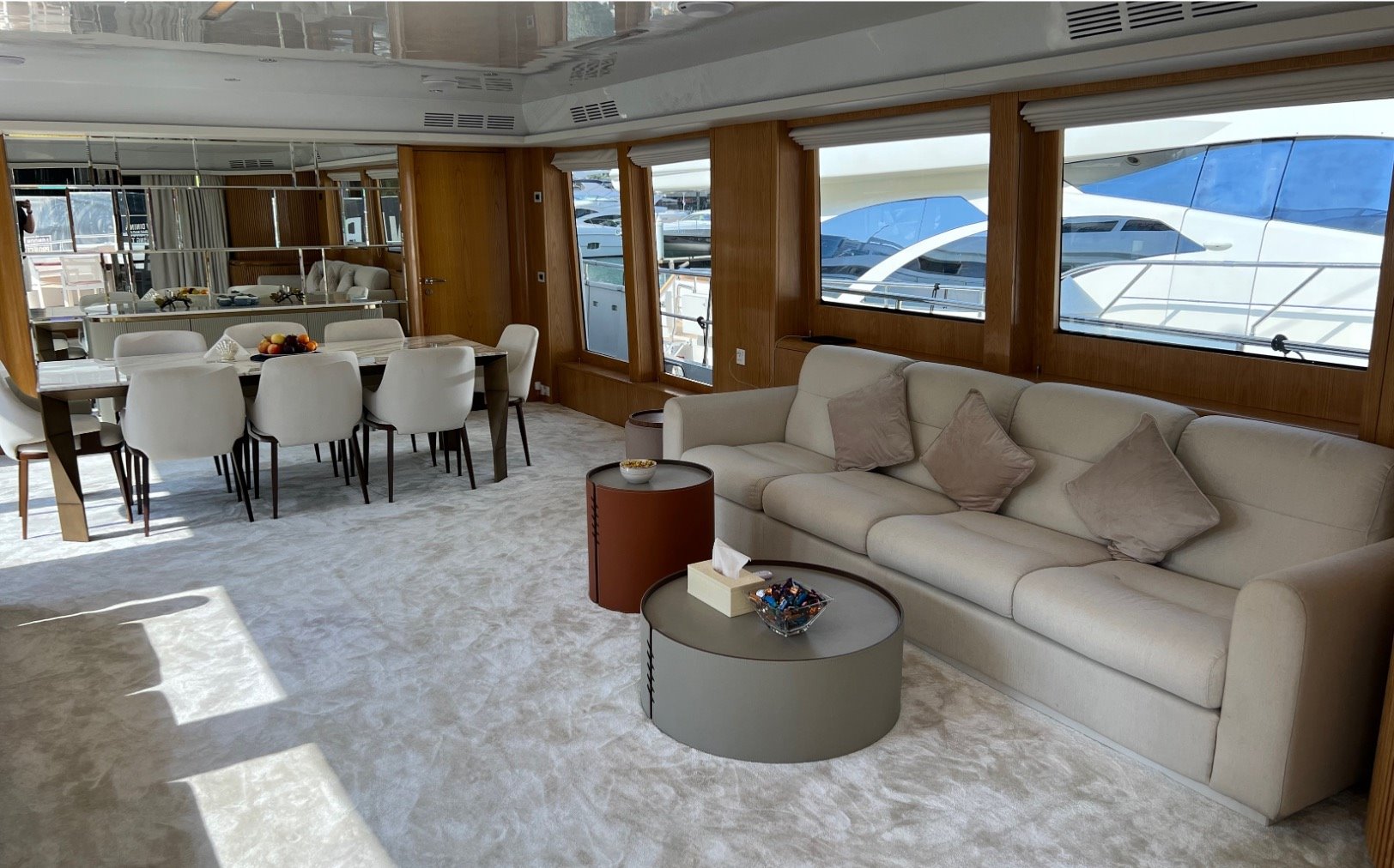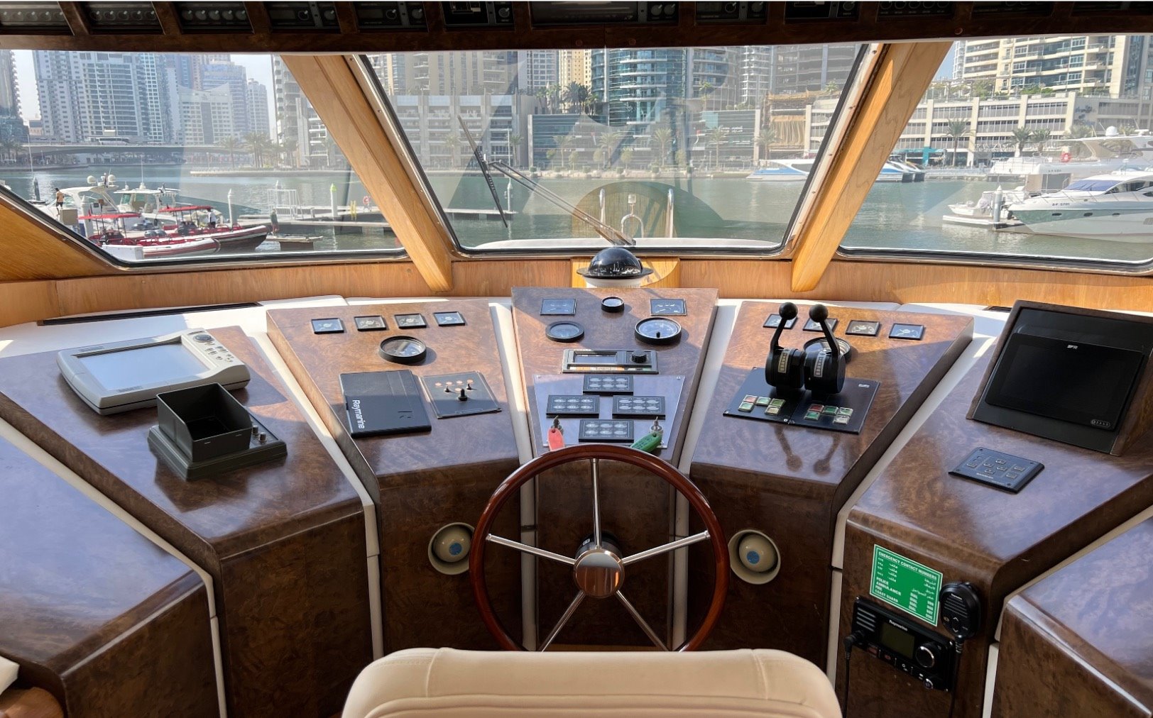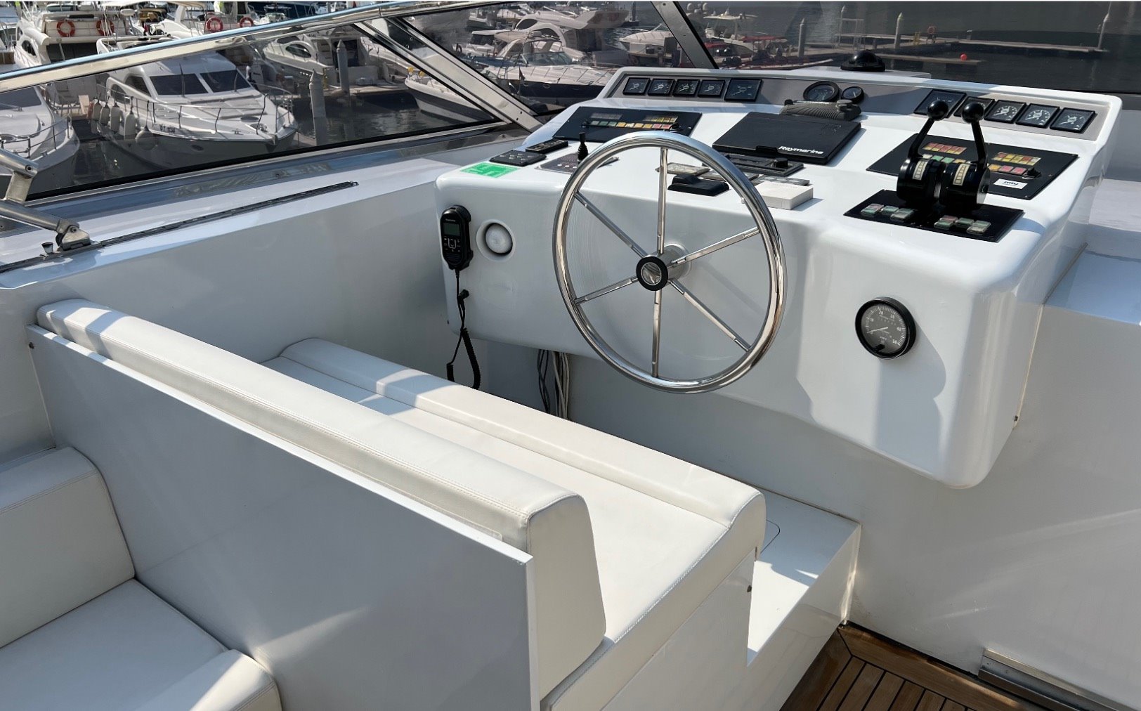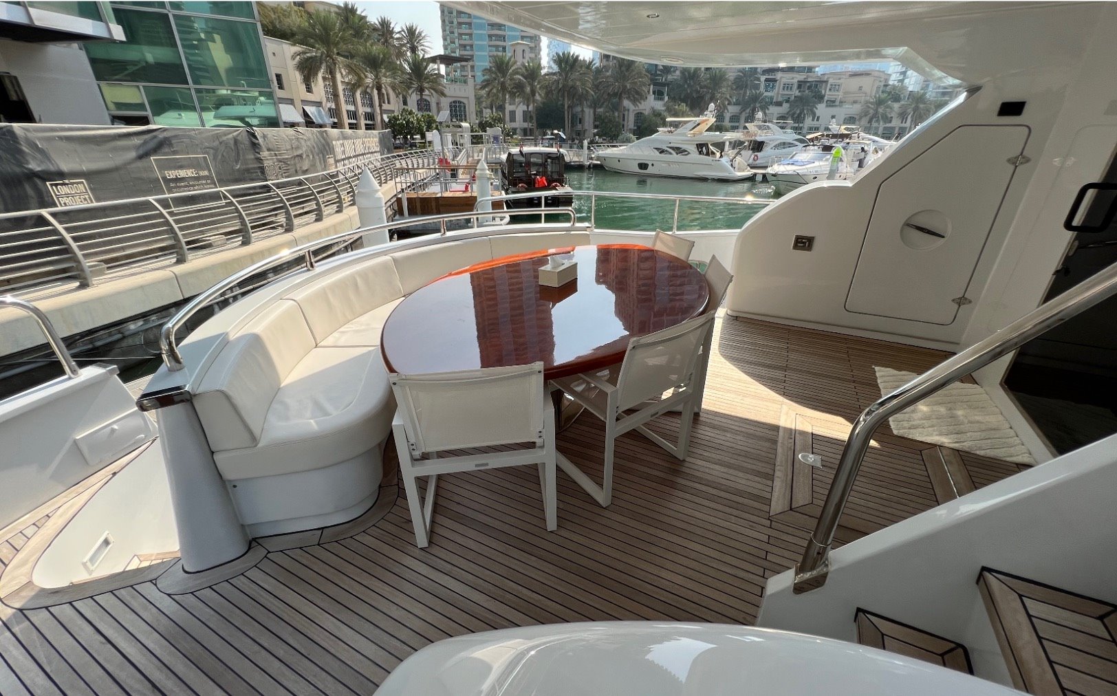 This Technomarine 90 feet (27.61m) is built to the highest standards of safety and elegance and got a recent interior / exterior refit. The yacht can provide you with luxurious and comfortable space for accommodating your loved ones around for a relaxing yet cheerful gathering. She is a luxurious yacht, with a spacious four cabin layout offering a smooth cruising speed of 18 knots. It has a large cockpit / flybridge for entertainment.