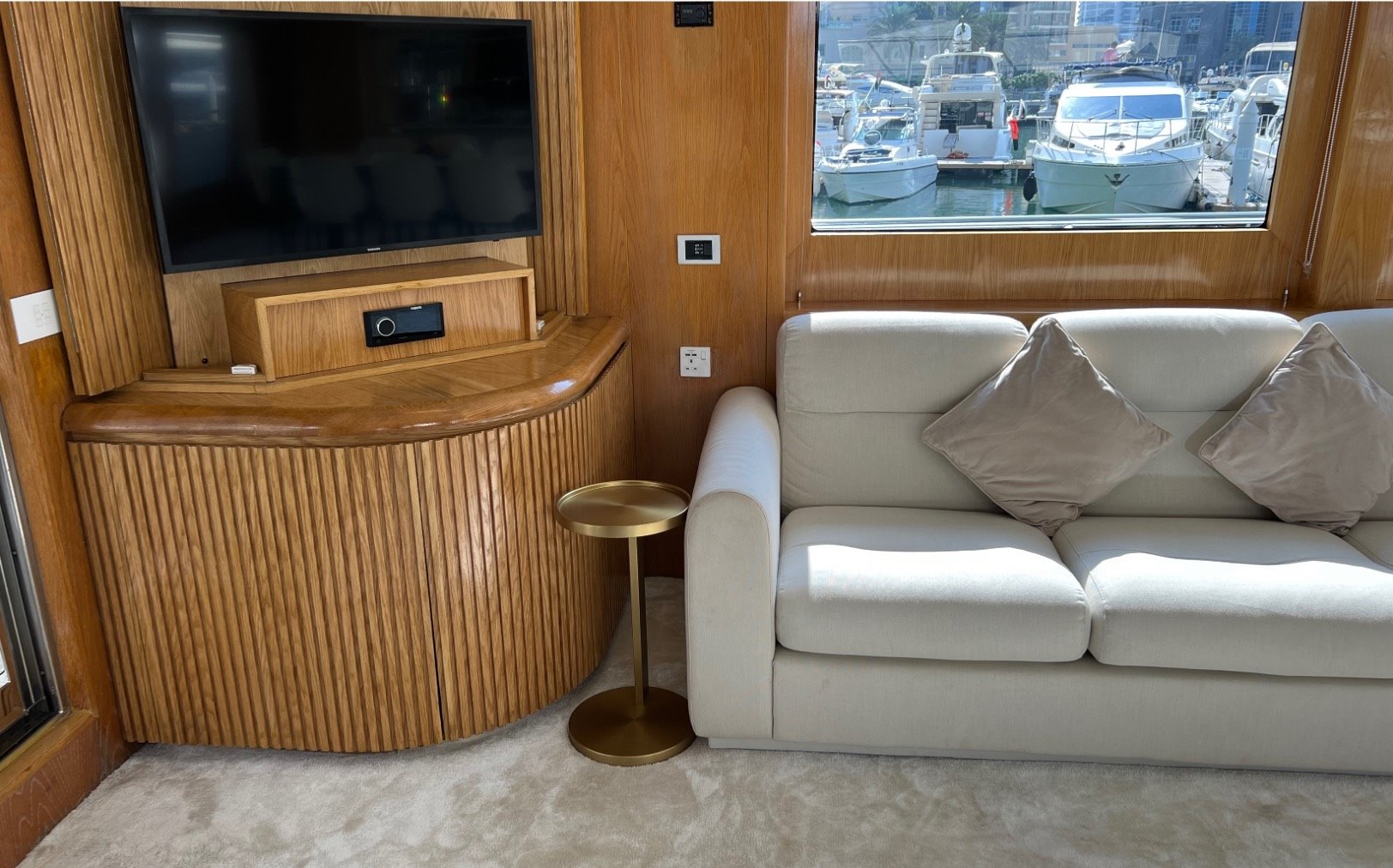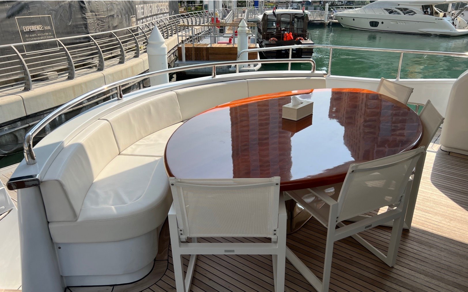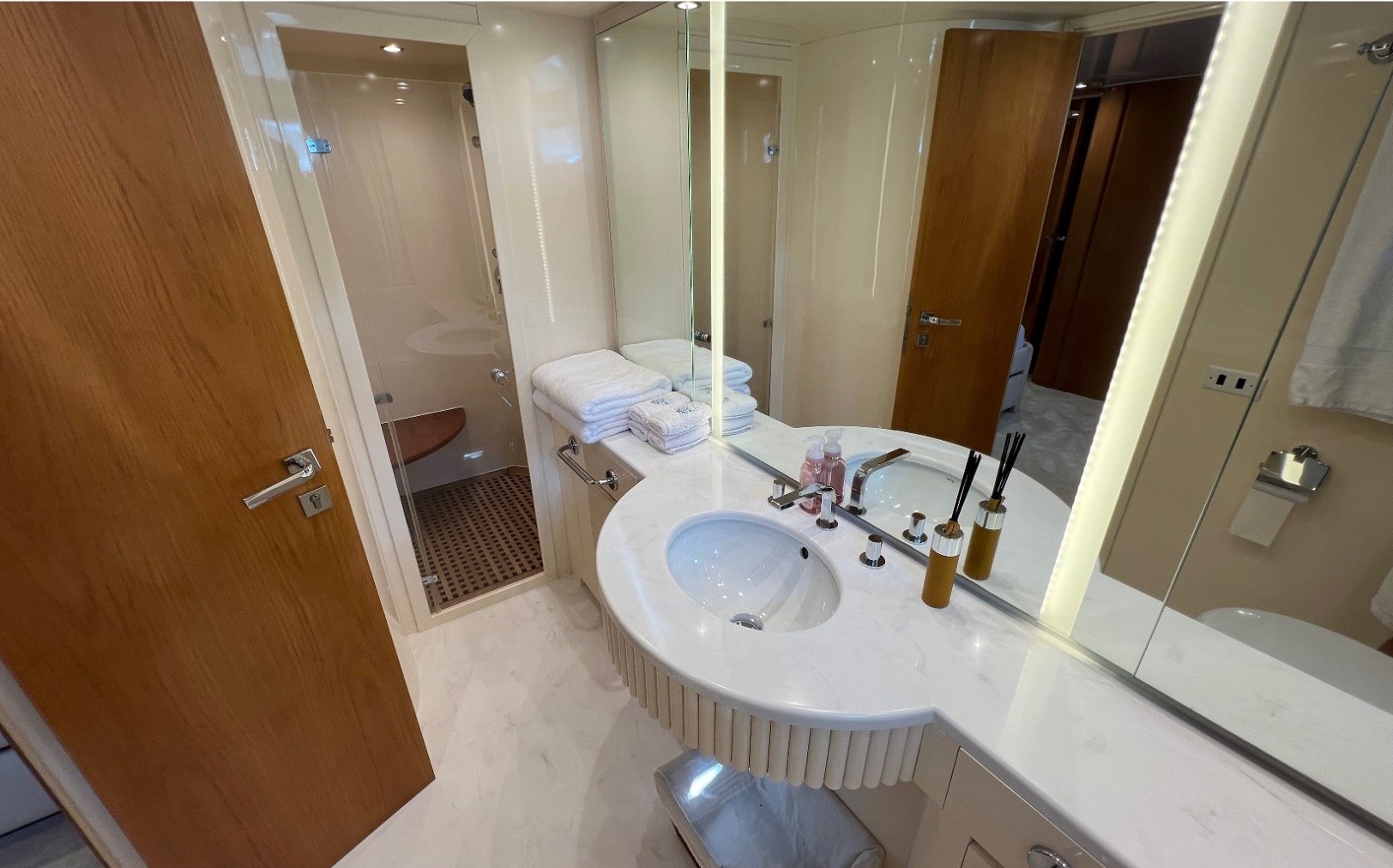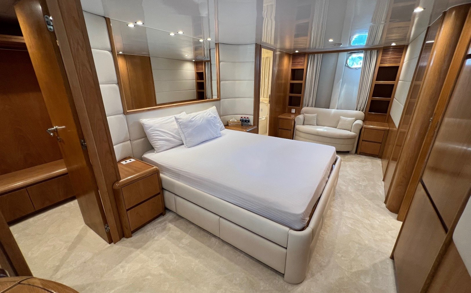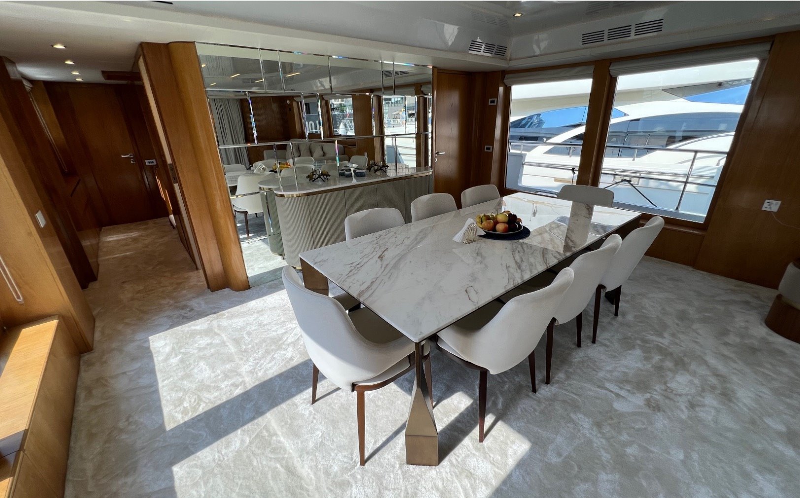 This Technomarine 90 feet (27.61m) is built to the highest standards of safety and elegance and got a recent interior / exterior refit. The yacht can provide you with luxurious and comfortable space for accommodating your loved ones around for a relaxing yet cheerful gathering. She is a luxurious yacht, with a spacious four cabin layout offering a smooth cruising speed of 18 knots. It has a large cockpit / flybridge for entertainment.