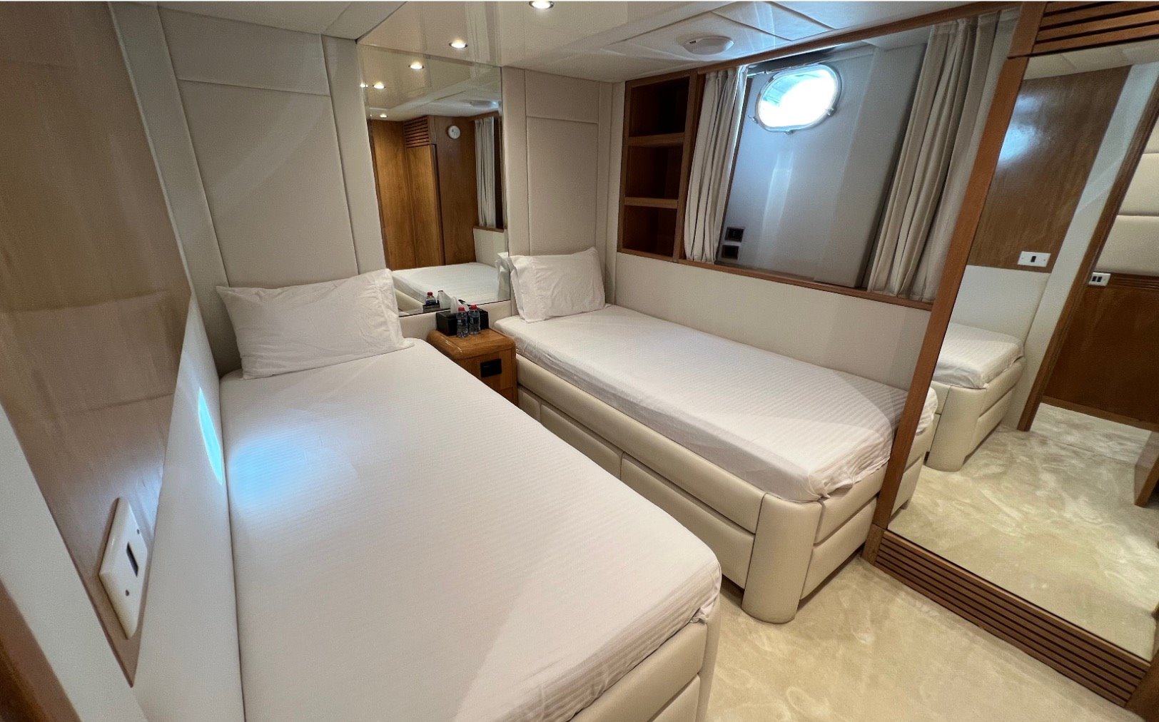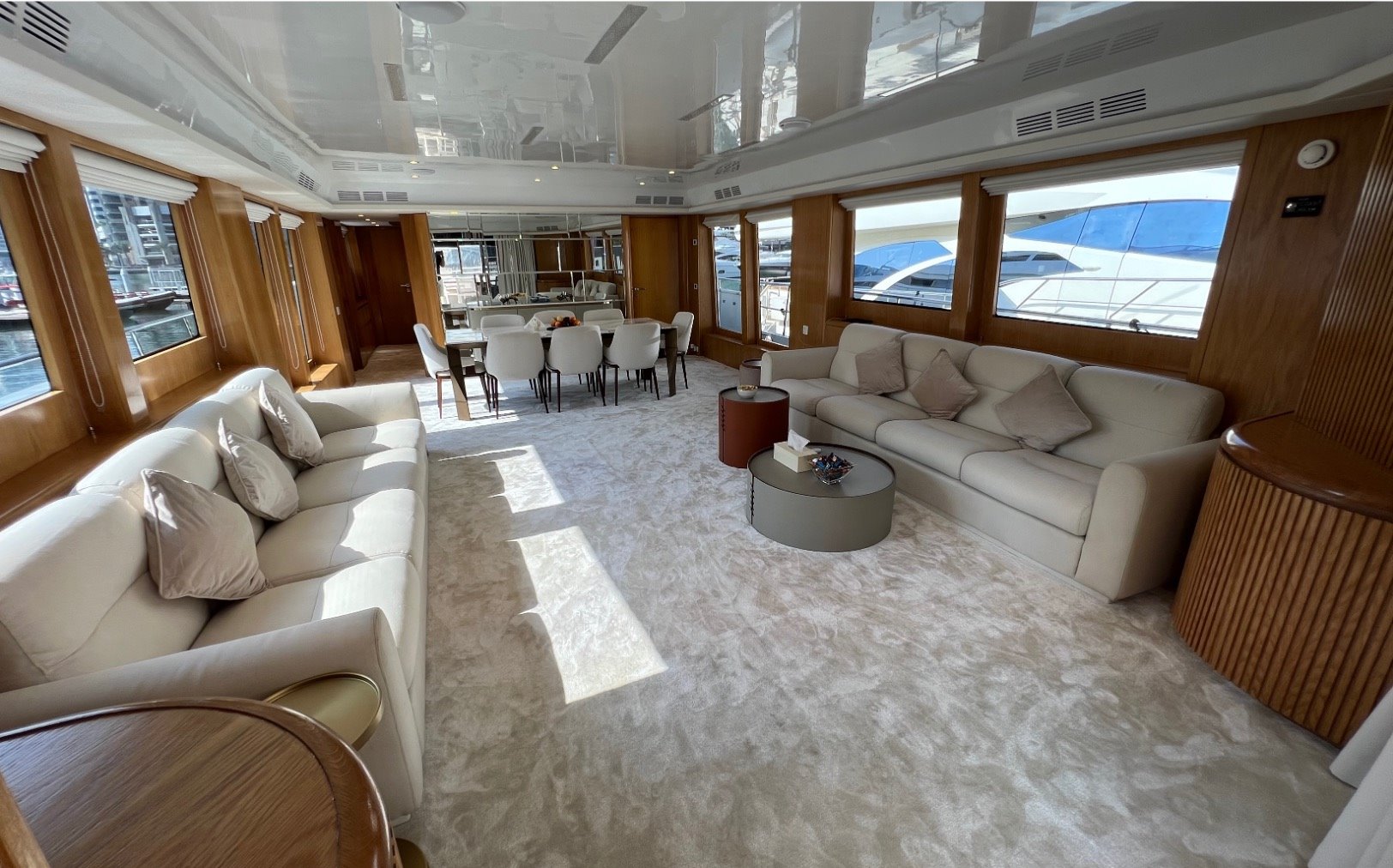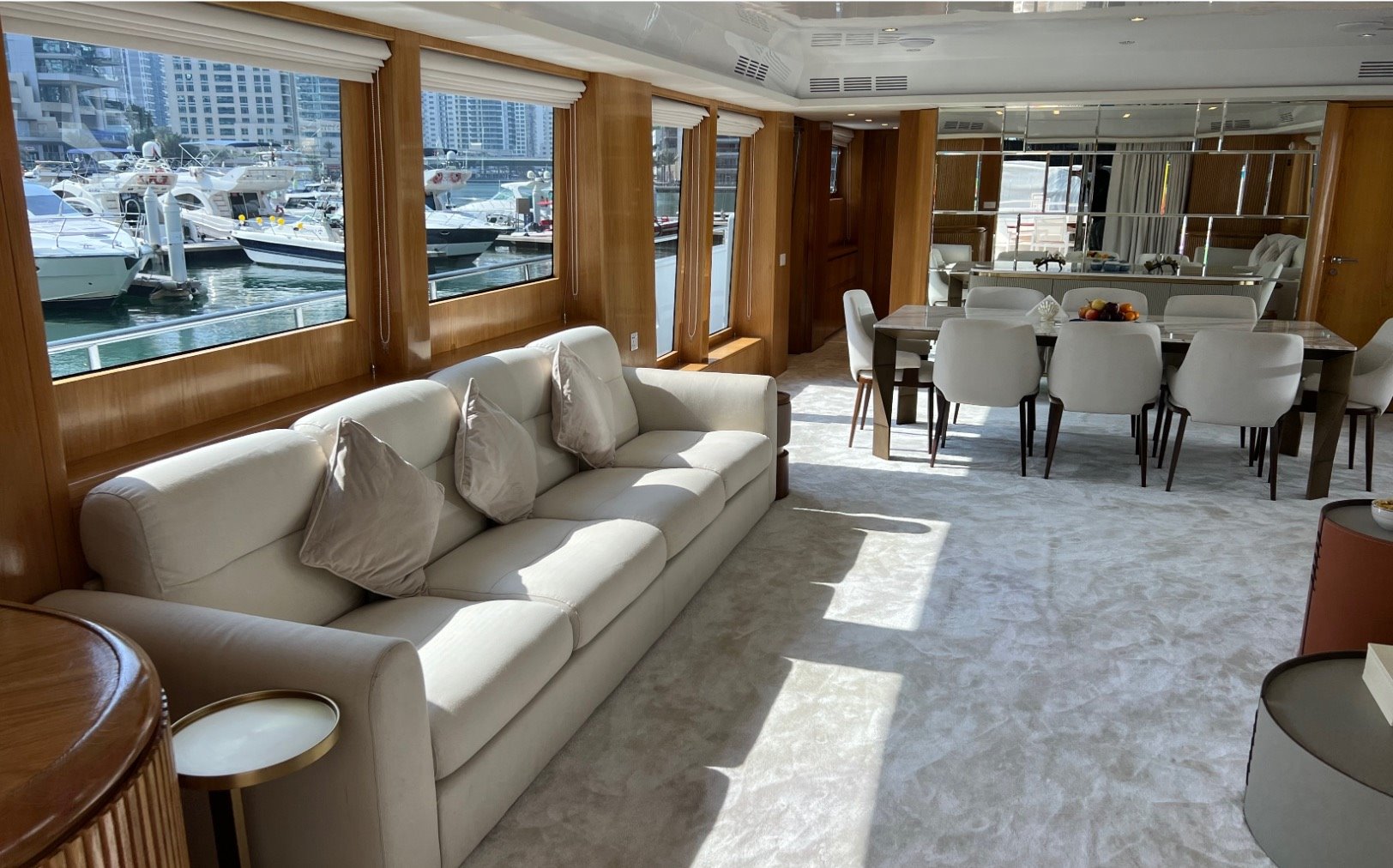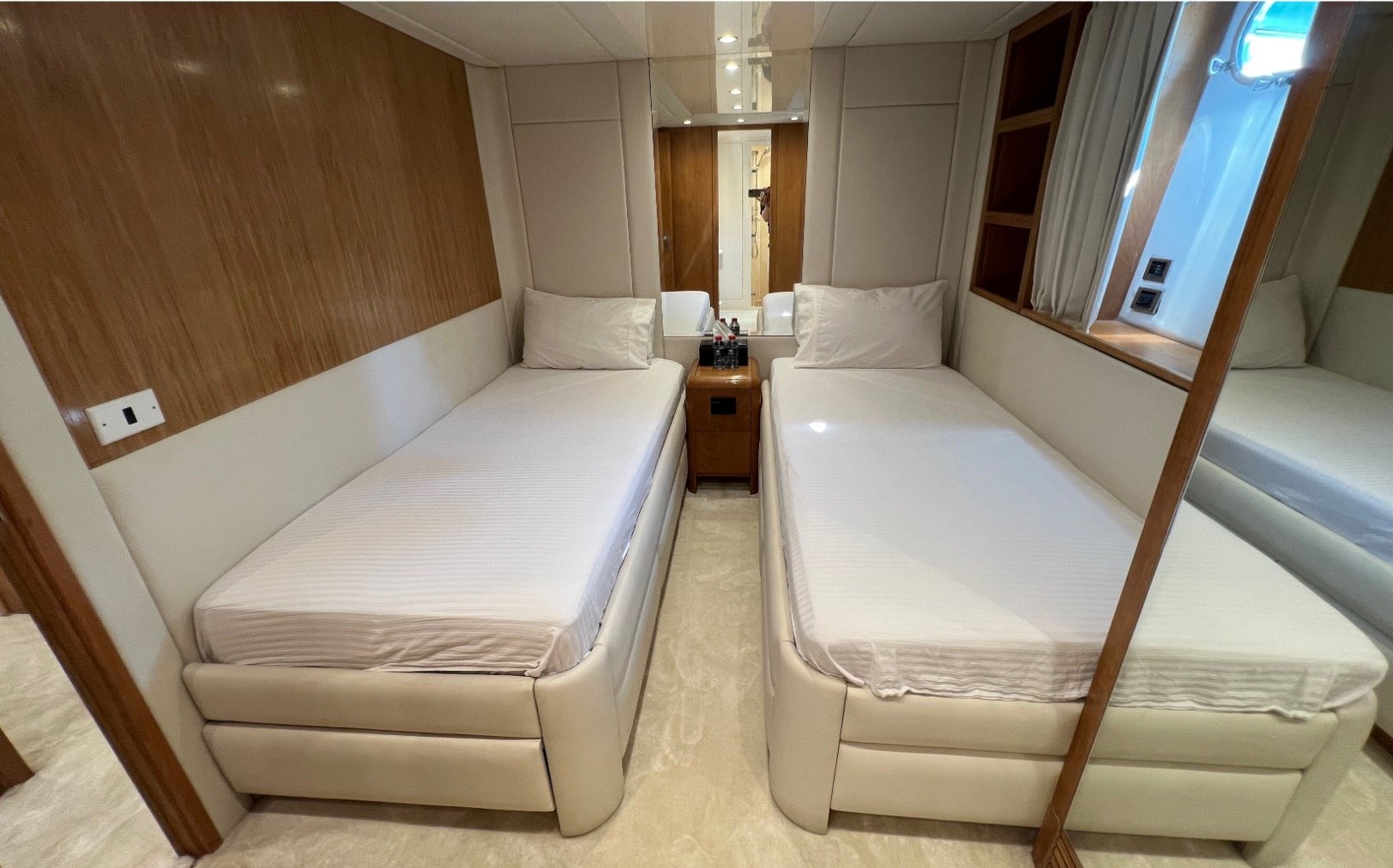 This Technomarine 90 feet (27.61m) is built to the highest standards of safety and elegance and got a recent interior / exterior refit. The yacht can provide you with luxurious and comfortable space for accommodating your loved ones around for a relaxing yet cheerful gathering. She is a luxurious yacht, with a spacious four cabin layout offering a smooth cruising speed of 18 knots. It has a large cockpit / flybridge for entertainment.