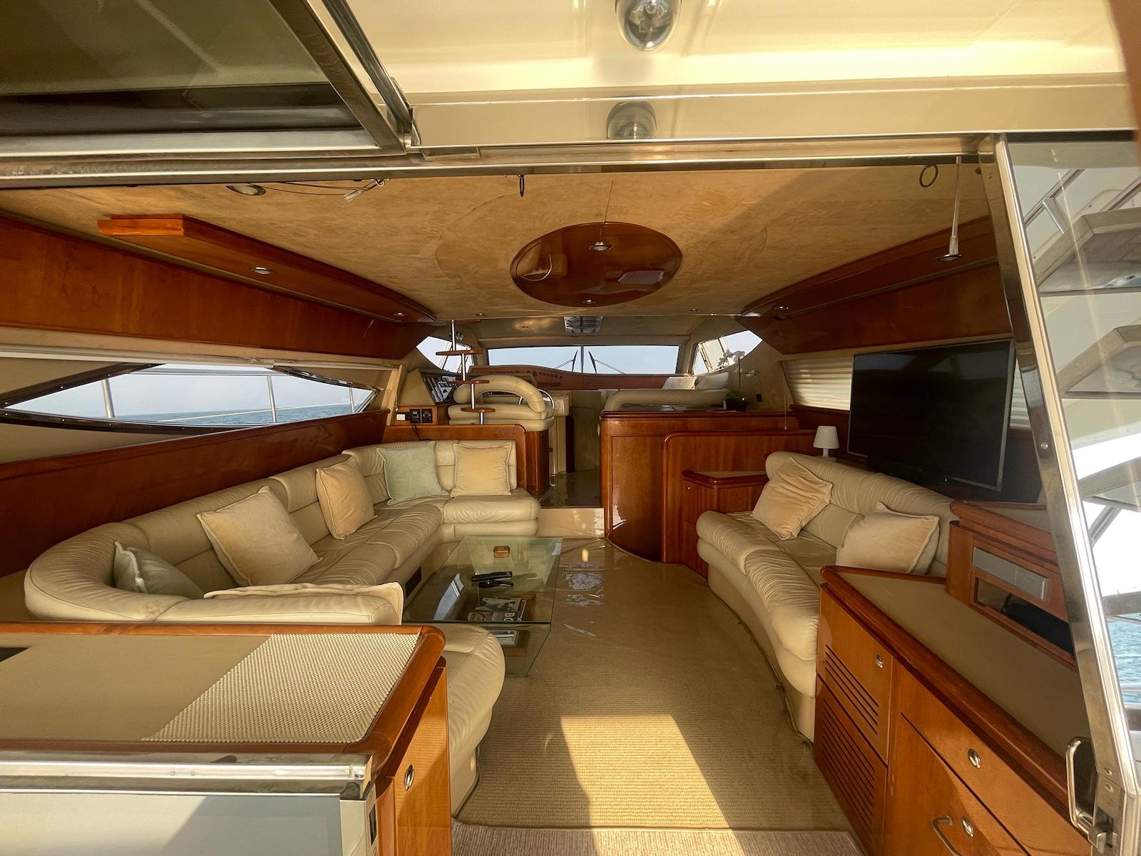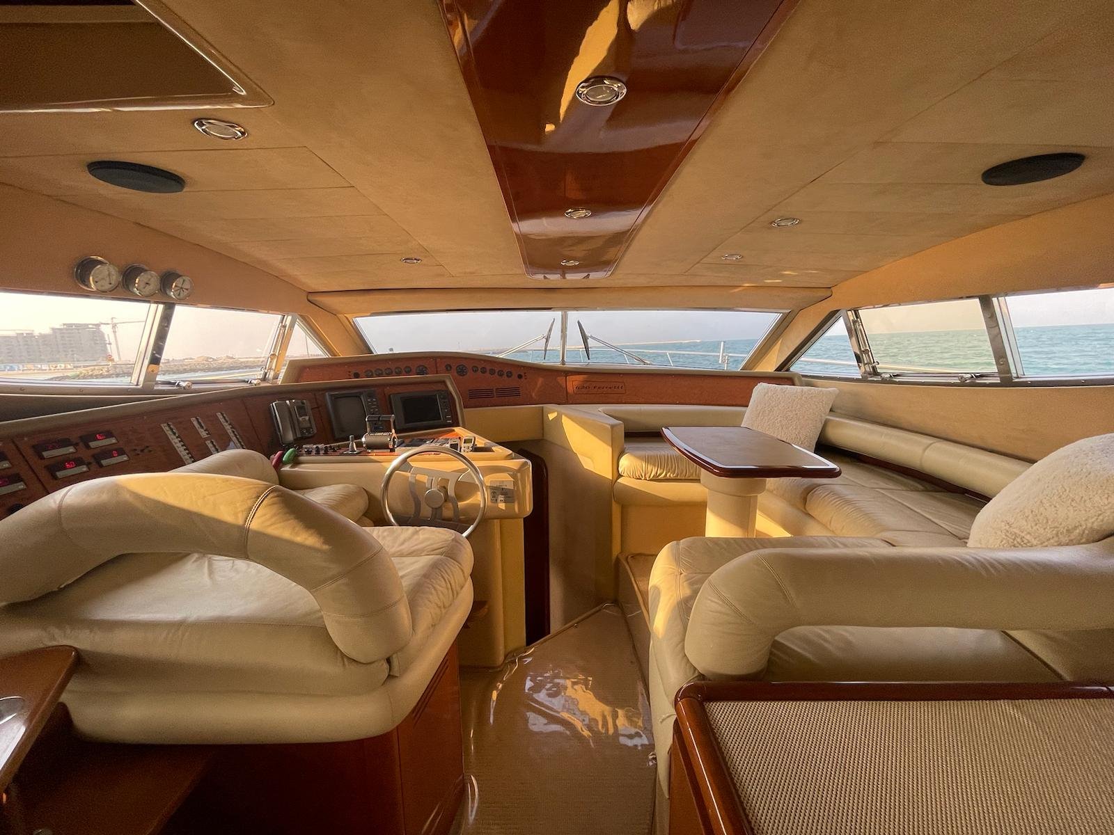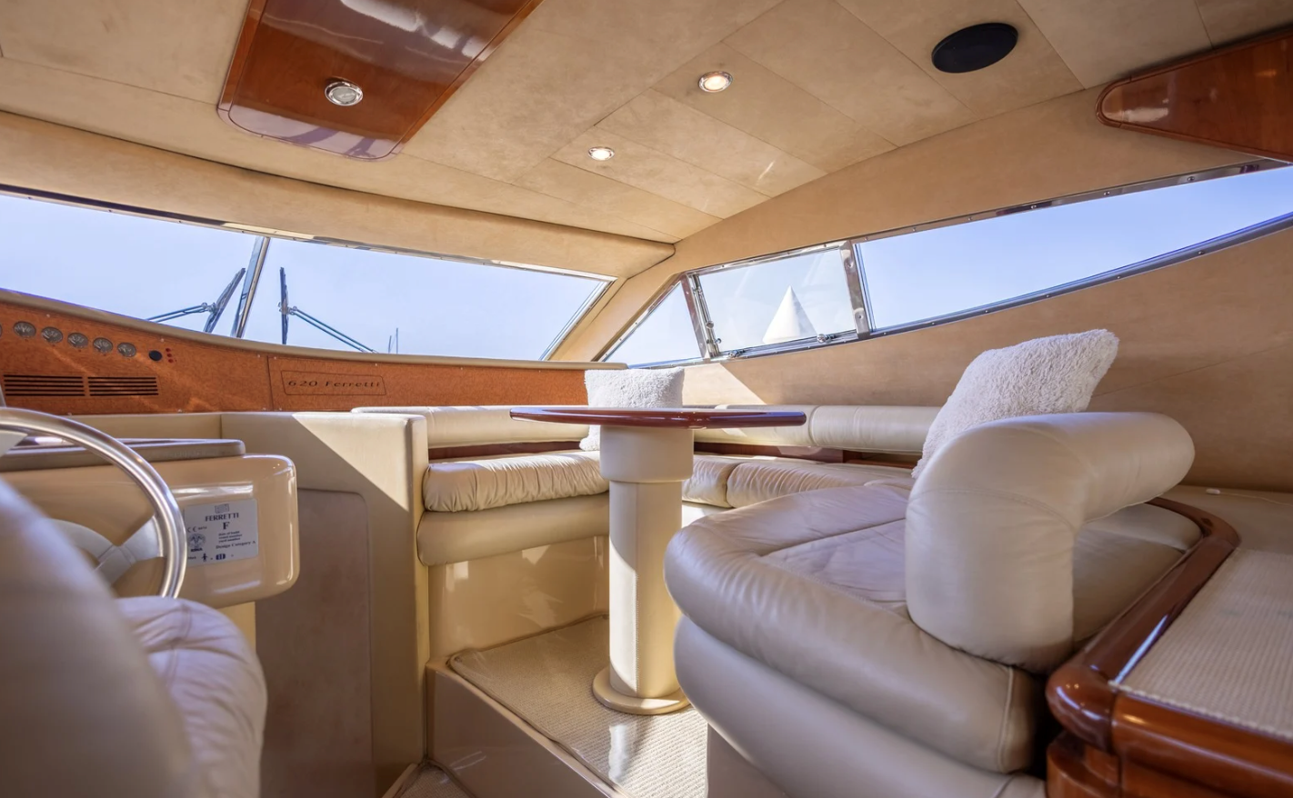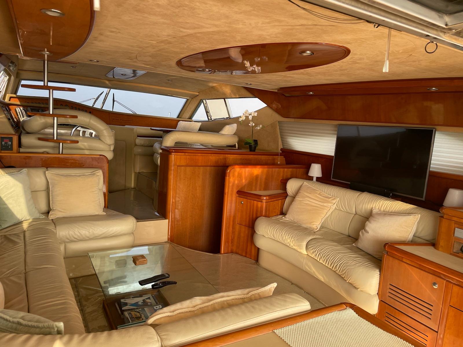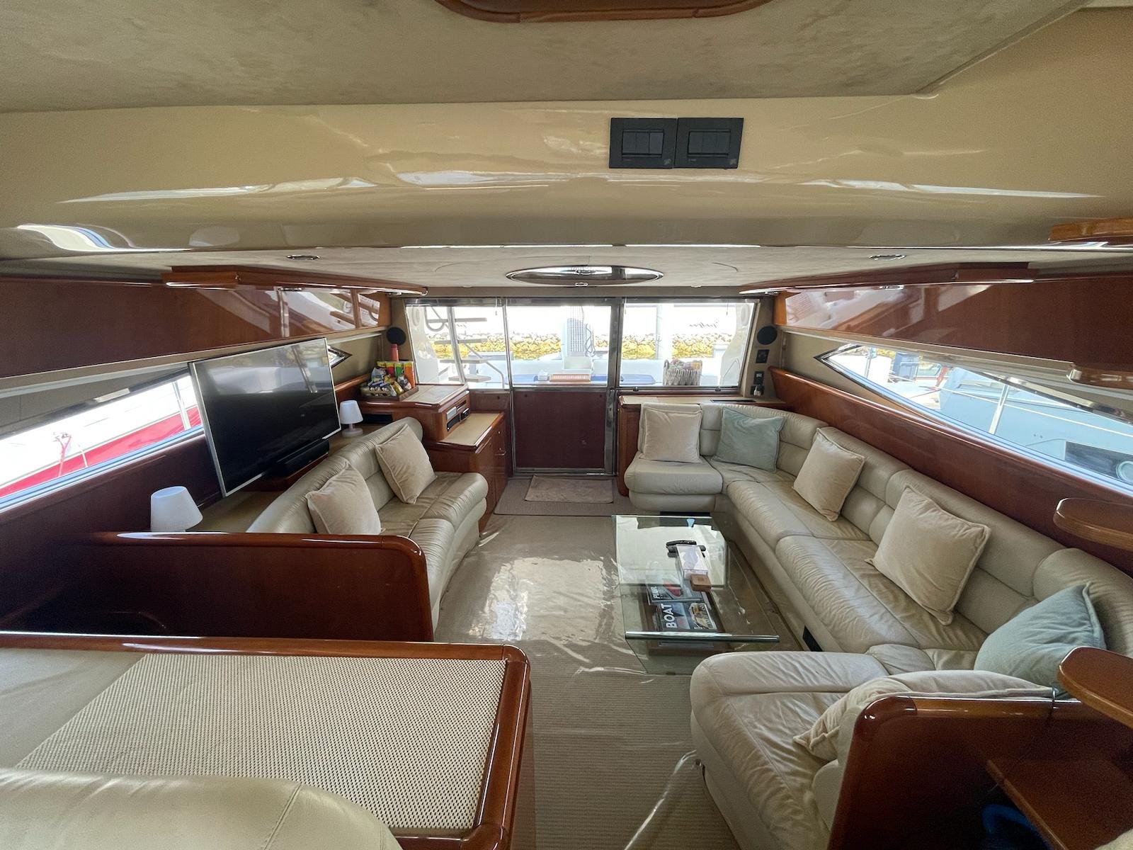 The 2002 Ferretti 620 is a superbly crafted yacht, offering both luxury and functionality. Its spacious flybridge provides ample room for relaxation and entertainment, making it ideal for those who enjoy spending time outdoors. We have redone and refitted a new canopy in the same style, ensuring the flybridge remains a comfortable and stylish space. Inside, the open saloon offers a bright, airy atmosphere, perfect for socializing or unwinding in comfort.