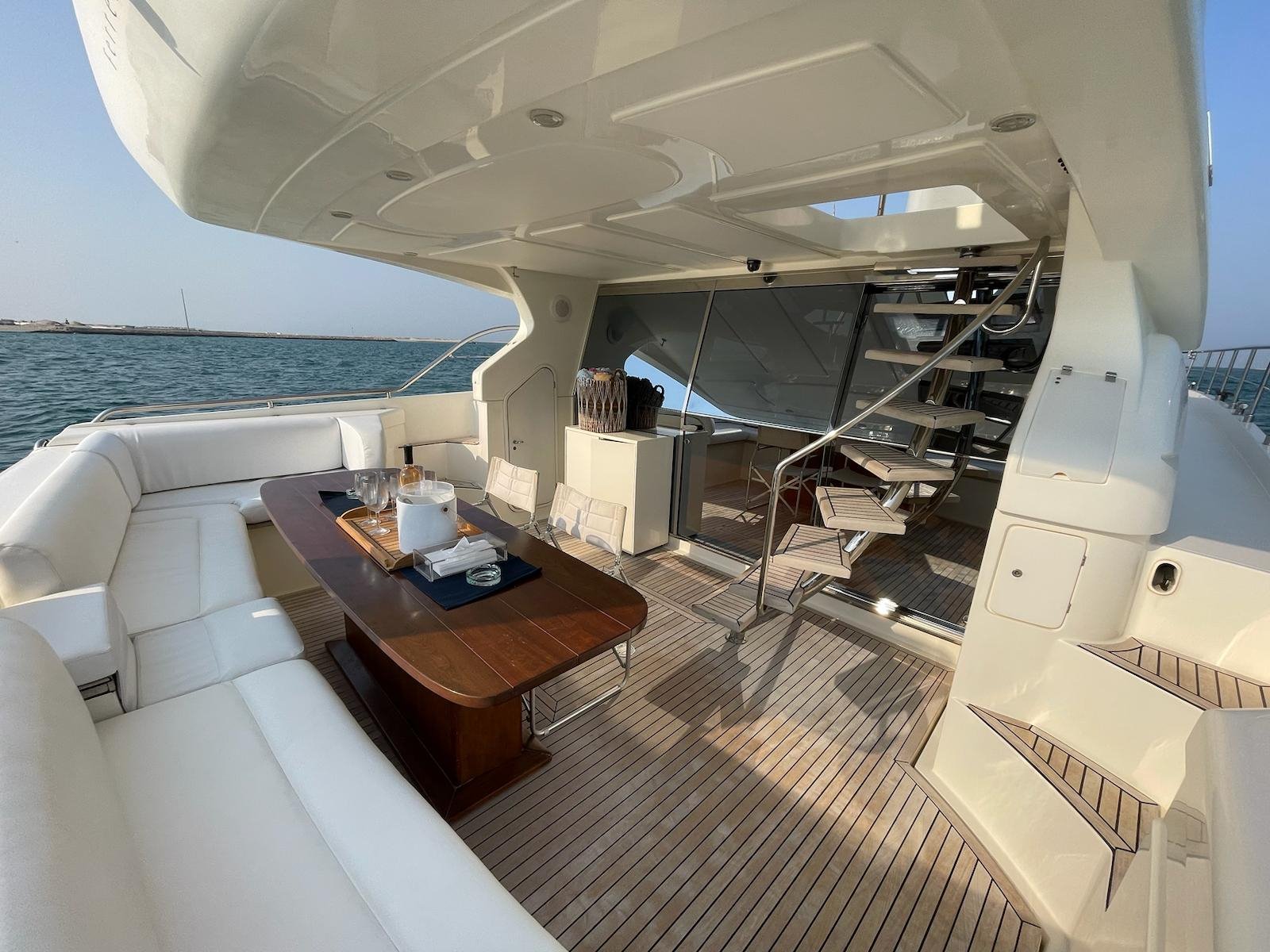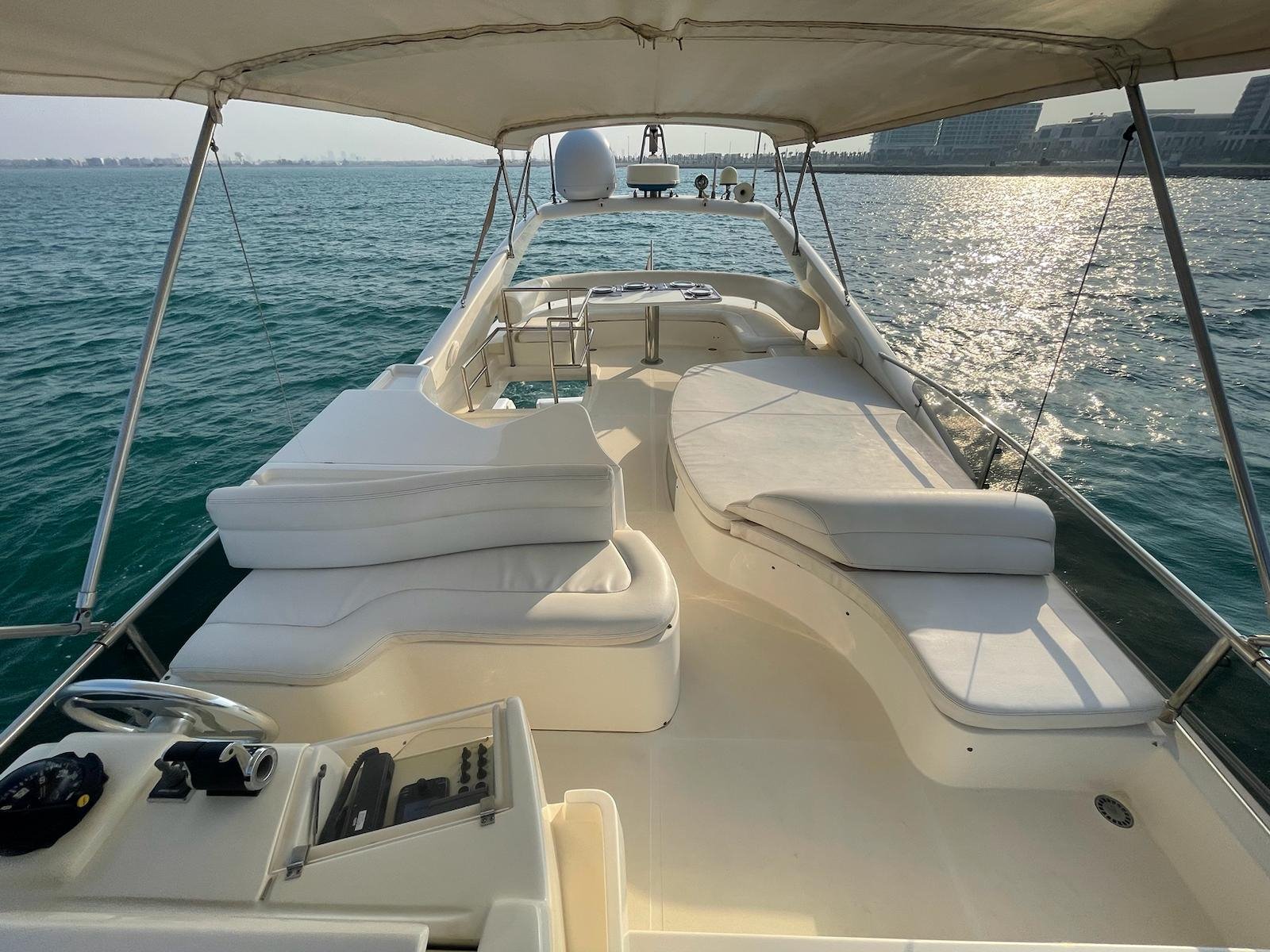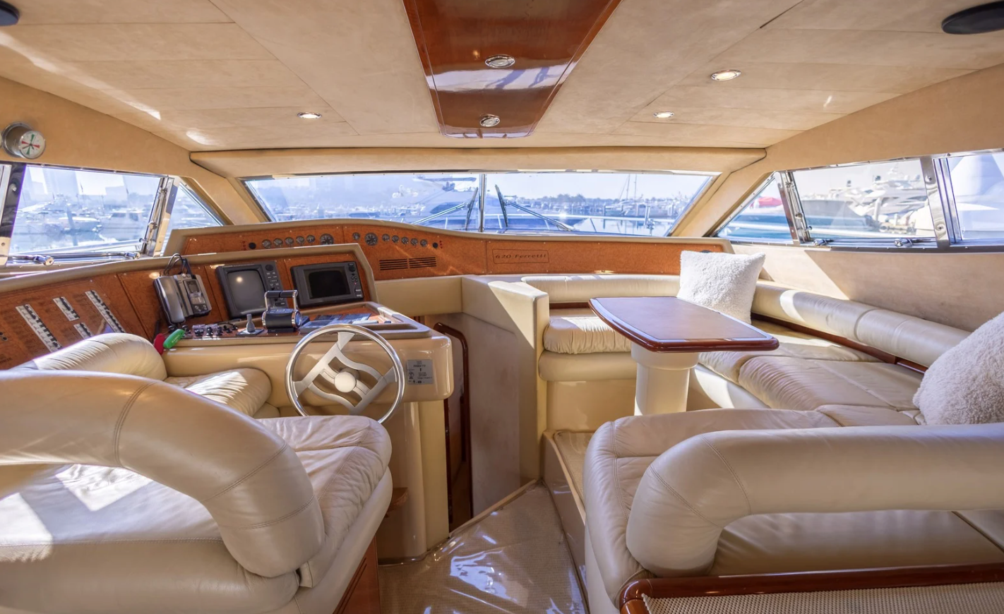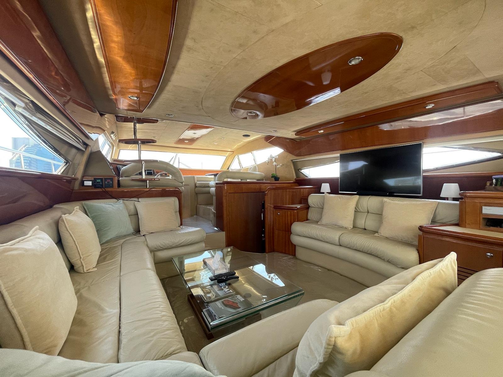 The 2002 Ferretti 620 is a superbly crafted yacht, offering both luxury and functionality. Its spacious flybridge provides ample room for relaxation and entertainment, making it ideal for those who enjoy spending time outdoors. We have redone and refitted a new canopy in the same style, ensuring the flybridge remains a comfortable and stylish space. Inside, the open saloon offers a bright, airy atmosphere, perfect for socializing or unwinding in comfort.