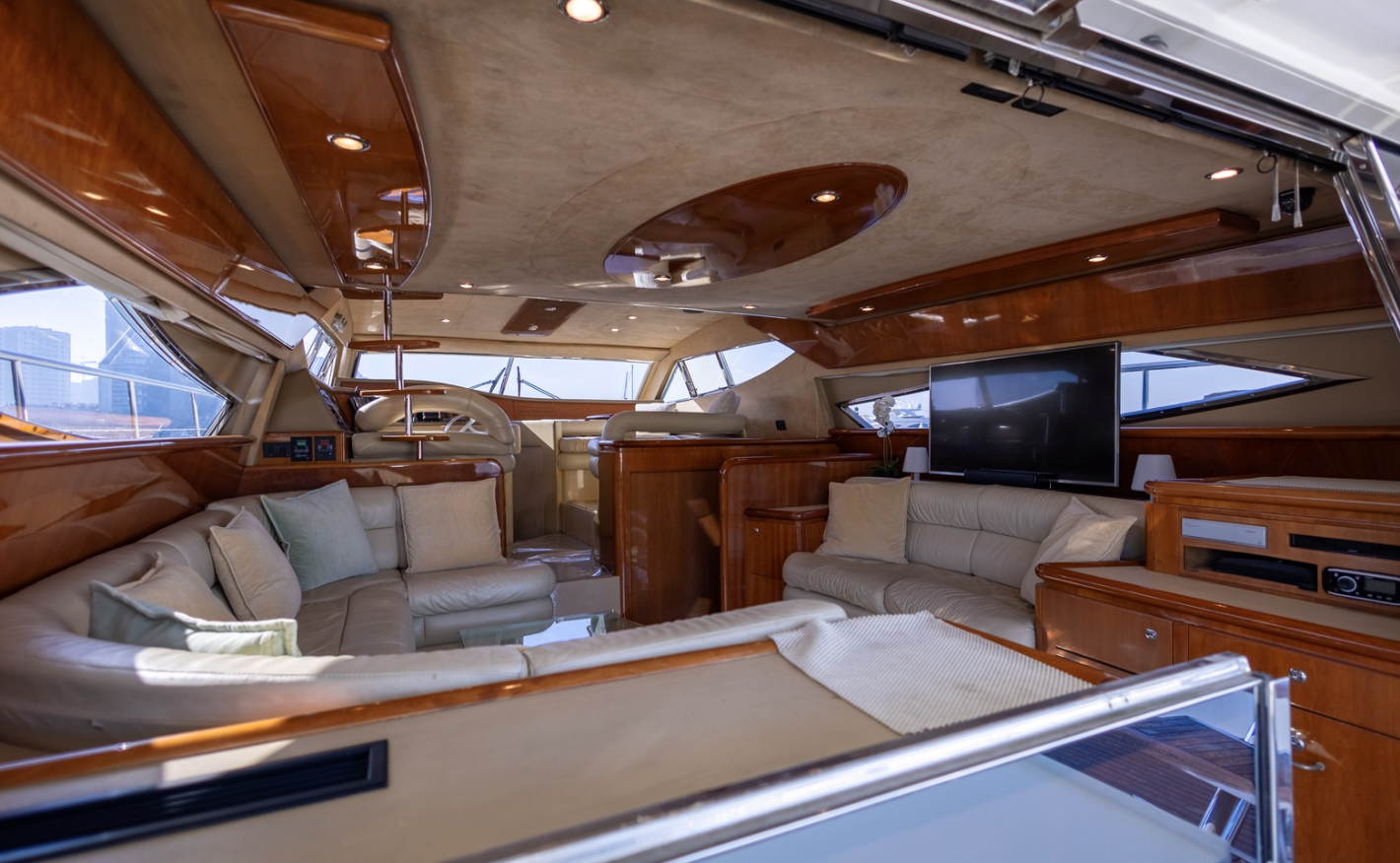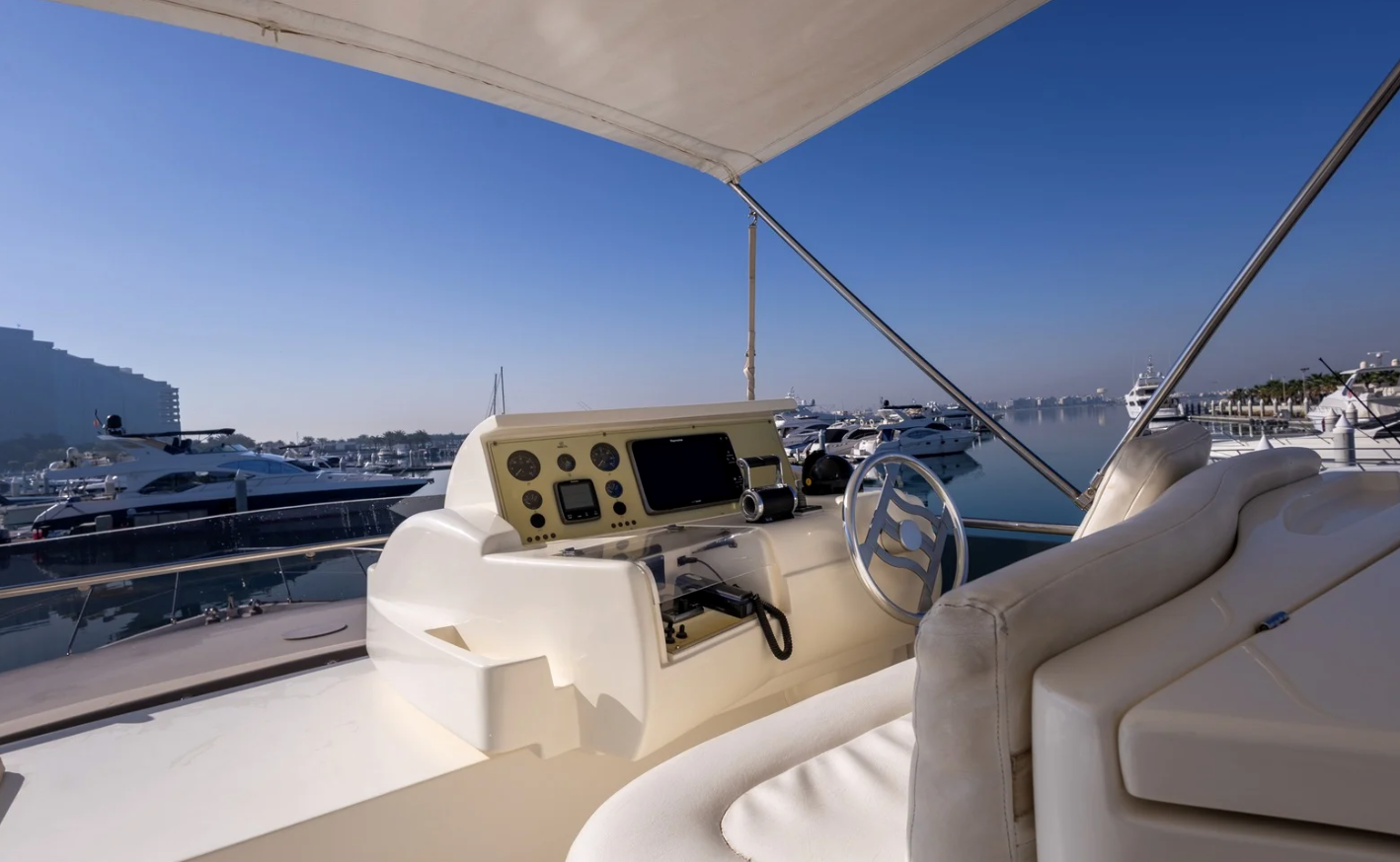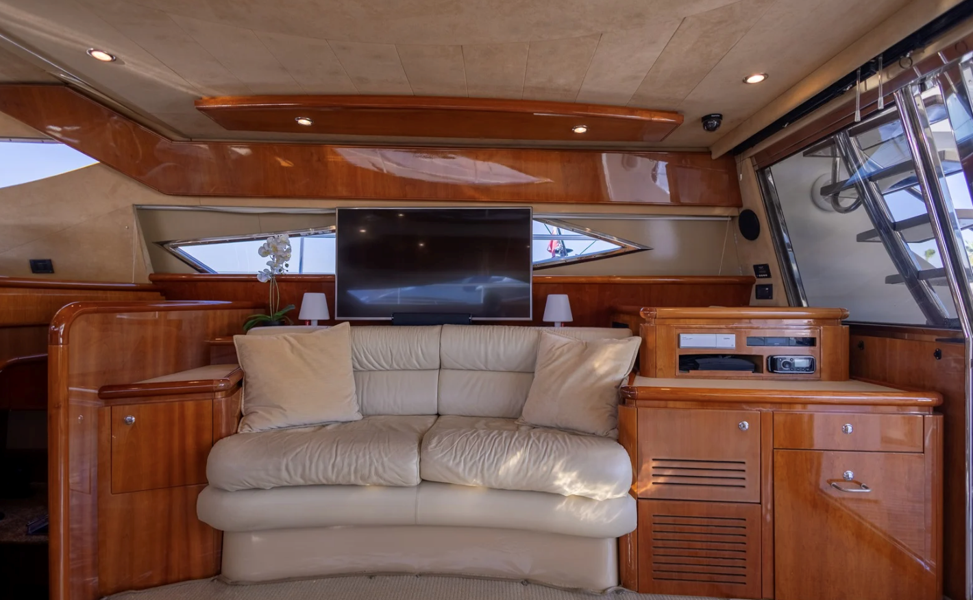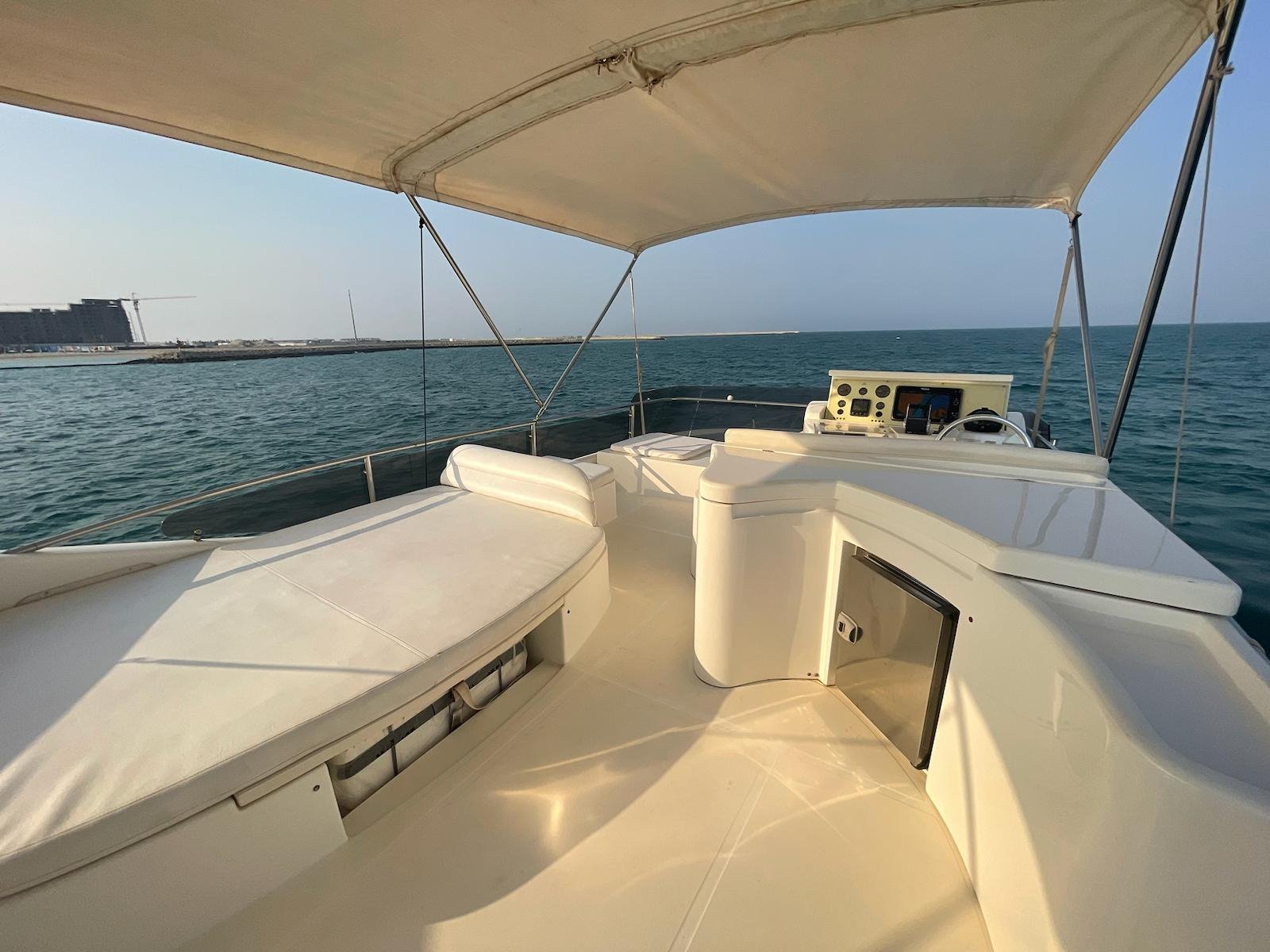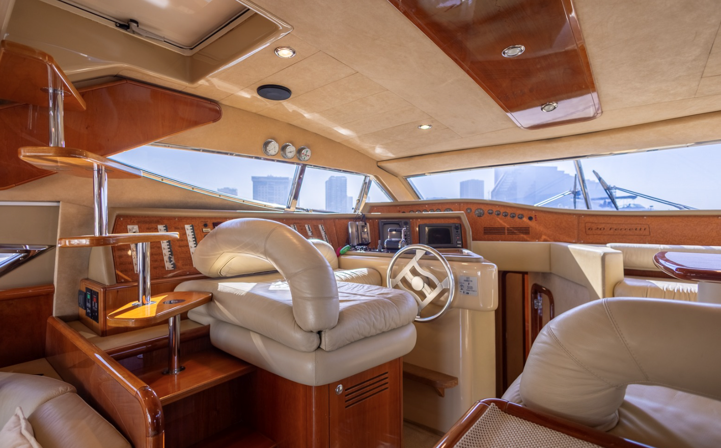 The 2002 Ferretti 620 is a superbly crafted yacht, offering both luxury and functionality. Its spacious flybridge provides ample room for relaxation and entertainment, making it ideal for those who enjoy spending time outdoors. We have redone and refitted a new canopy in the same style, ensuring the flybridge remains a comfortable and stylish space. Inside, the open saloon offers a bright, airy atmosphere, perfect for socializing or unwinding in comfort.