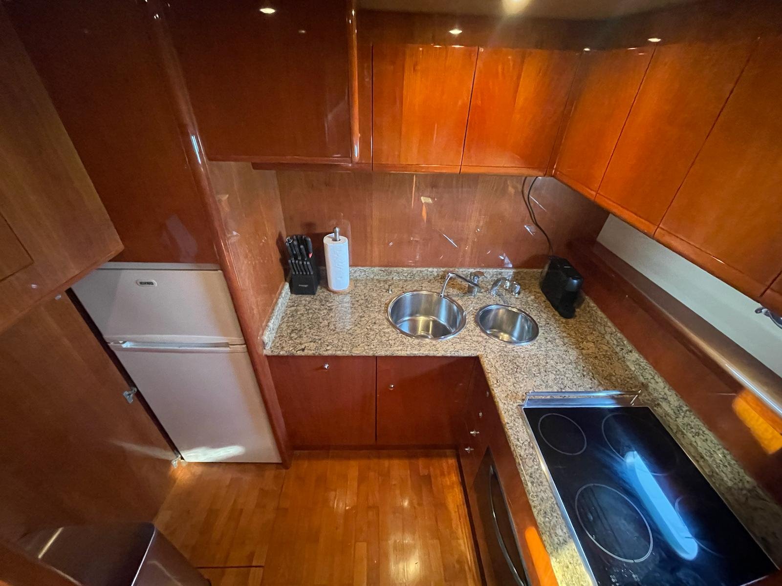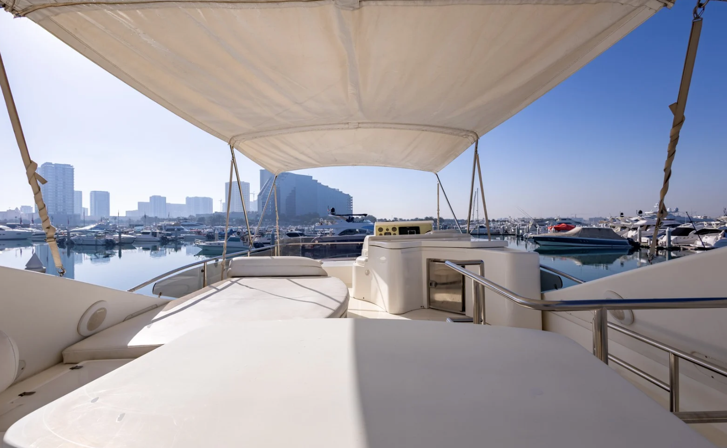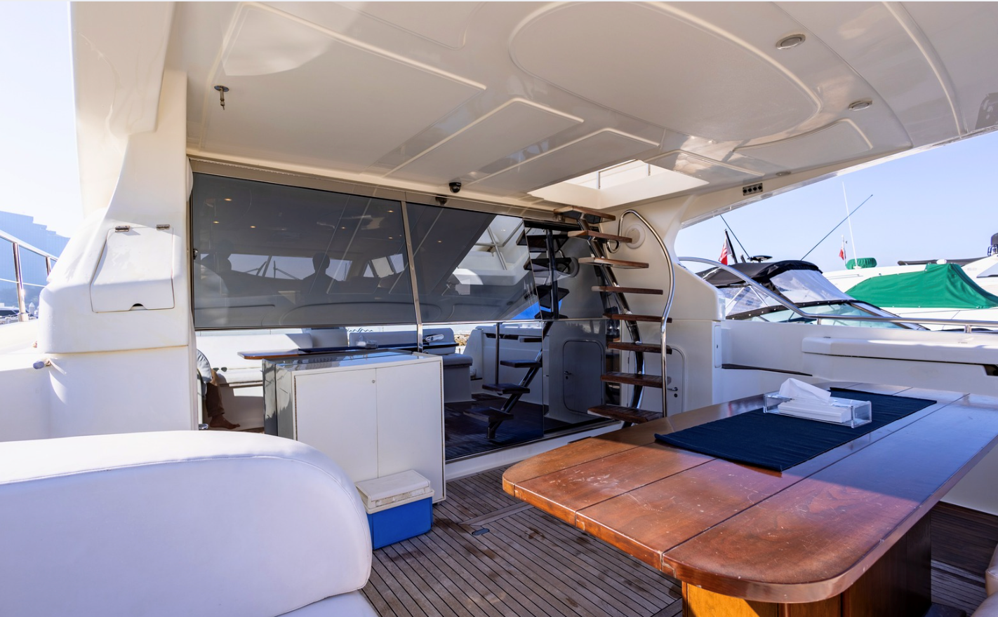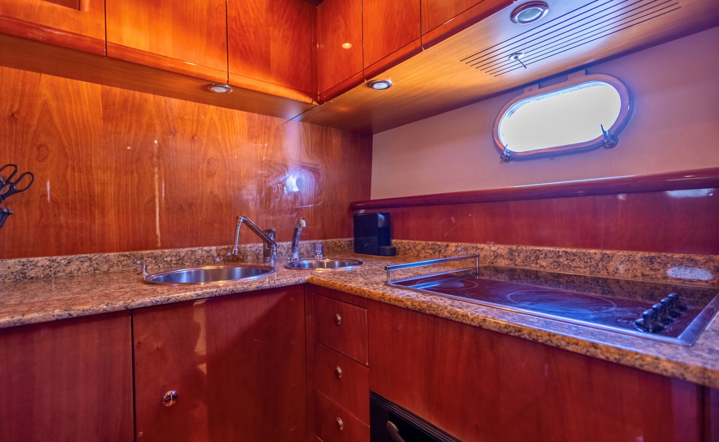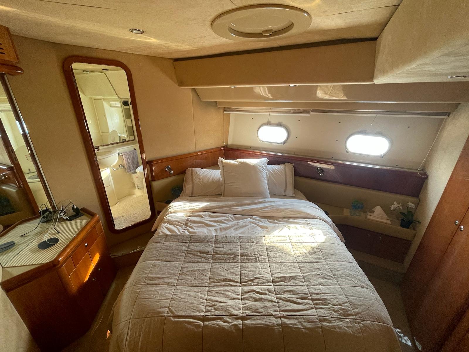The 2002 Ferretti 620 is a superbly crafted yacht, offering both luxury and functionality. Its spacious flybridge provides ample room for relaxation and entertainment, making it ideal for those who enjoy spending time outdoors. We have redone and refitted a new canopy in the same style, ensuring the flybridge remains a comfortable and stylish space. Inside, the open saloon offers a bright, airy atmosphere, perfect for socializing or unwinding in comfort.