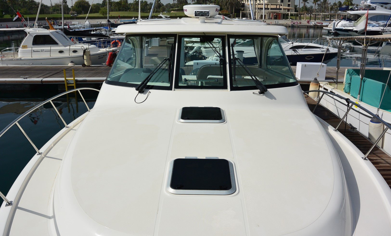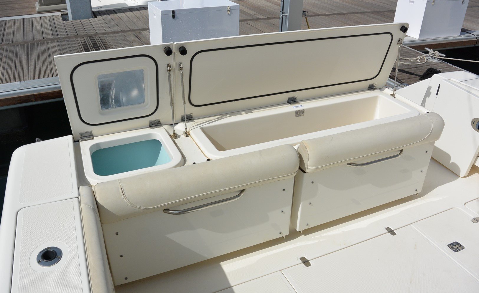 With one owner from new and boasting an upgraded interior layout, the vessel is in very good condition and ready to be enjoyed by its new owner. Featuring a fully integrated hardtop and windshield, engineered to support an optional factory-built tower. Her sleek, express style with a 13-foot beam results in an expansive cockpit and roomy interior below decks; the perfect boat for weekend fishing trips