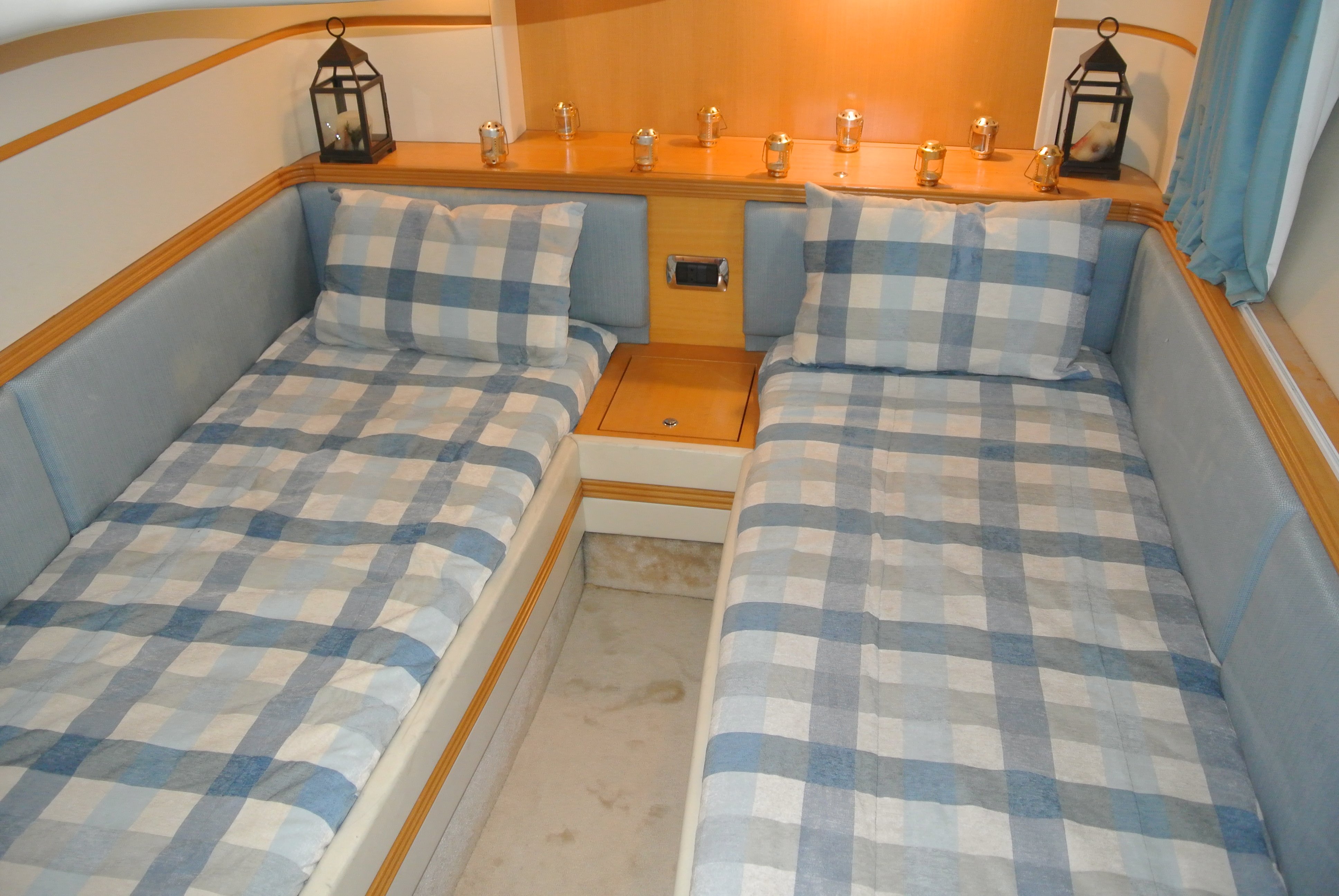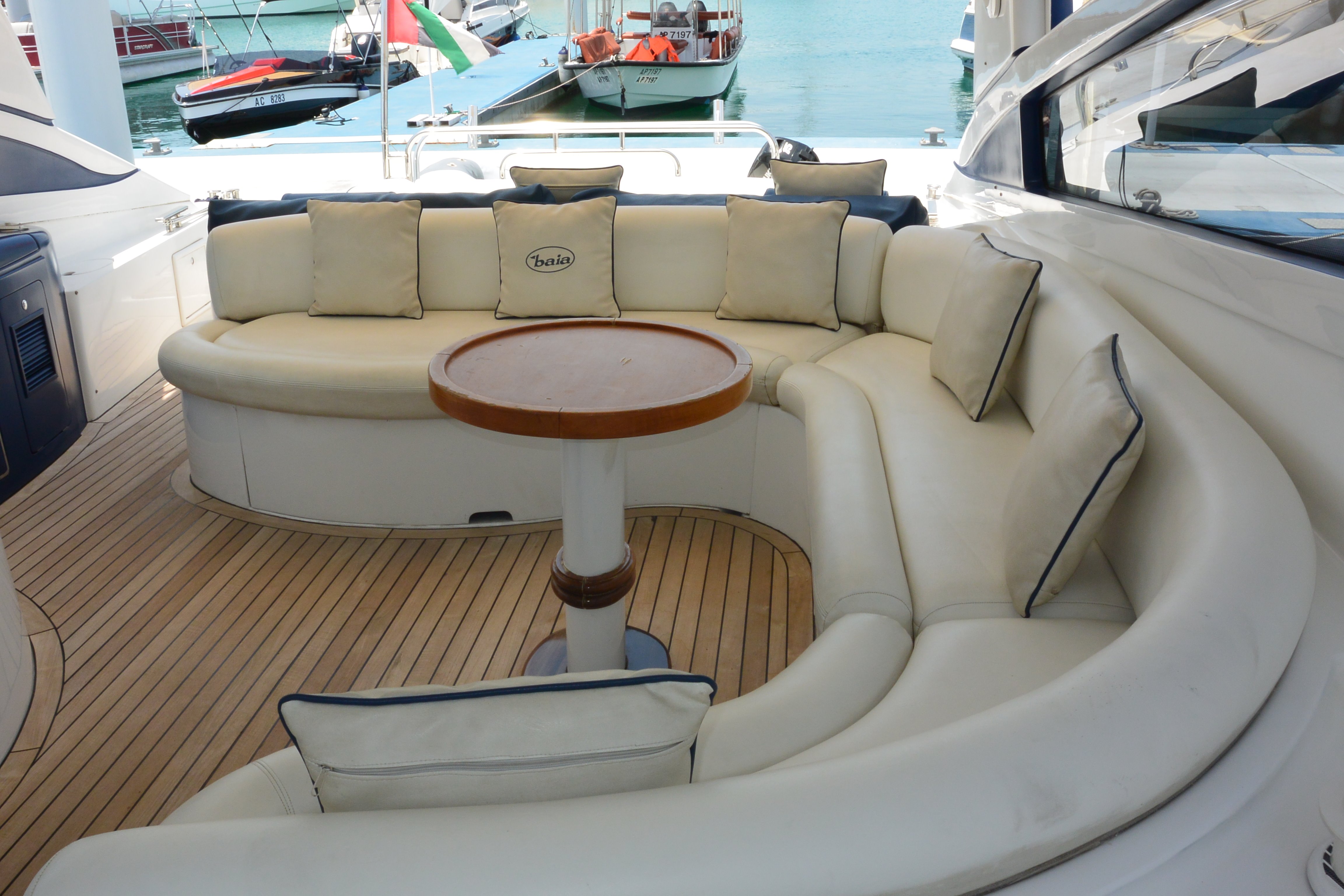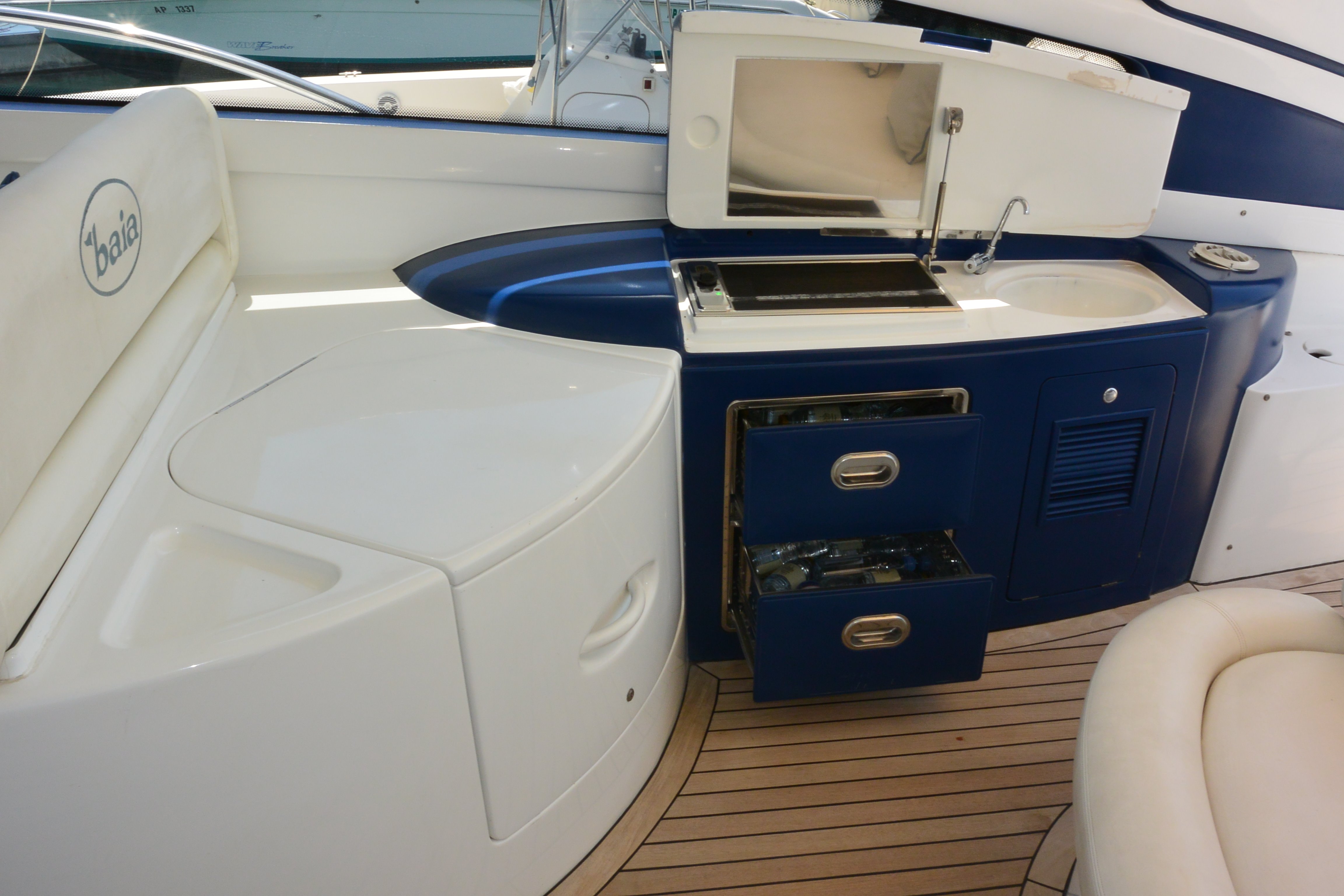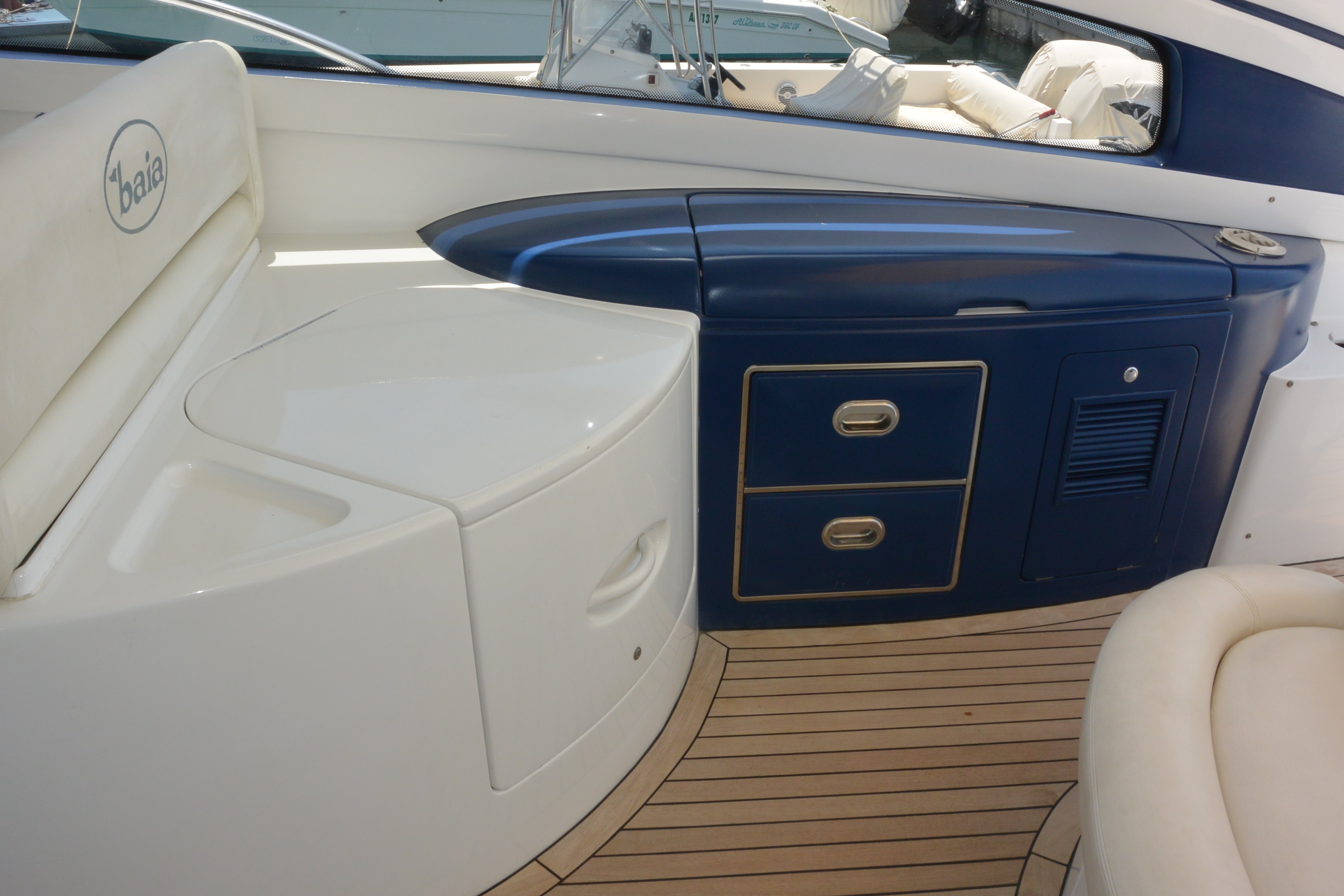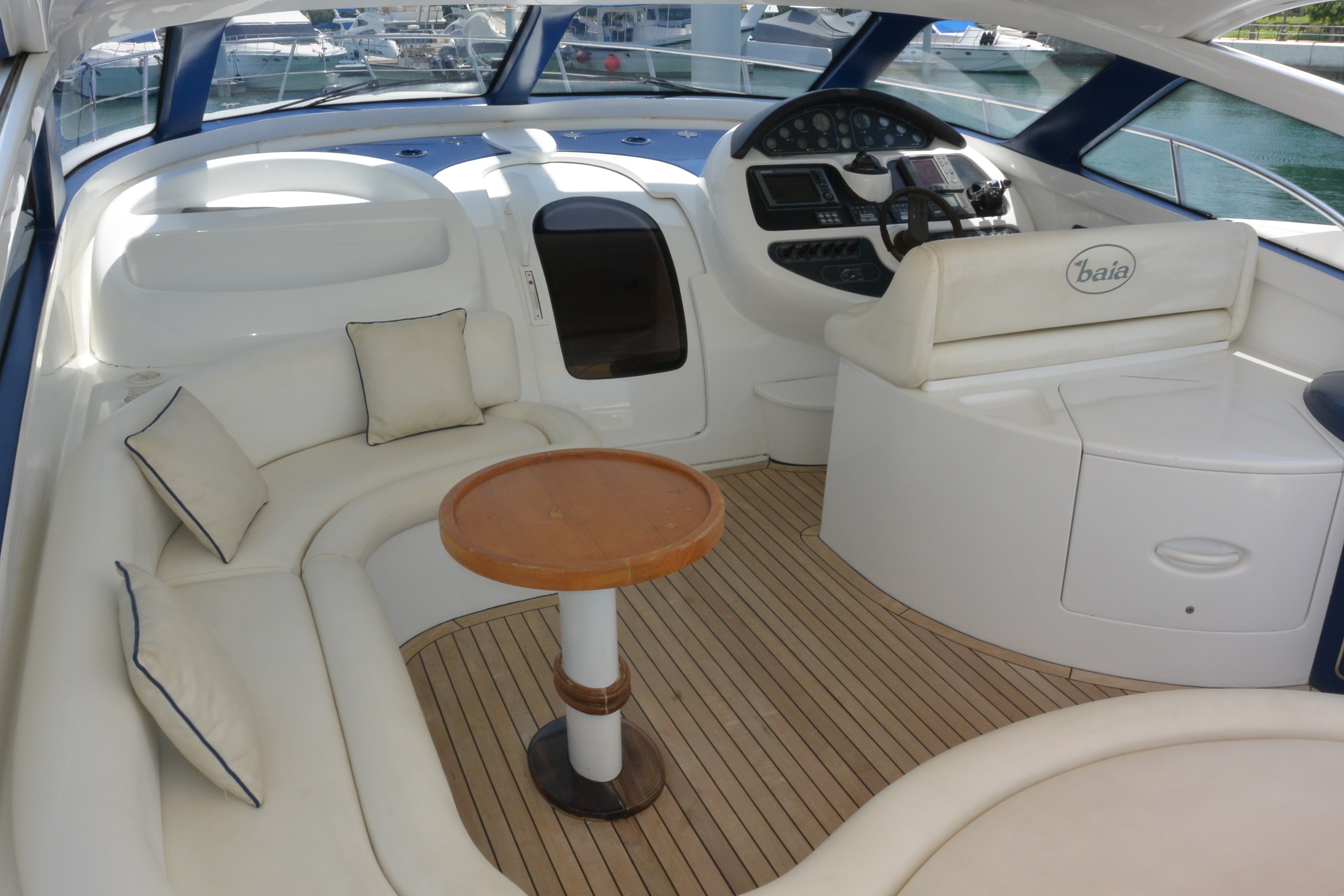 The boat reaches a top speed of 45 knots and features a large cockpit that is great for weekly outings with family and friends. The spacious three cabin layout will make your guests’ stay even more pleasant.