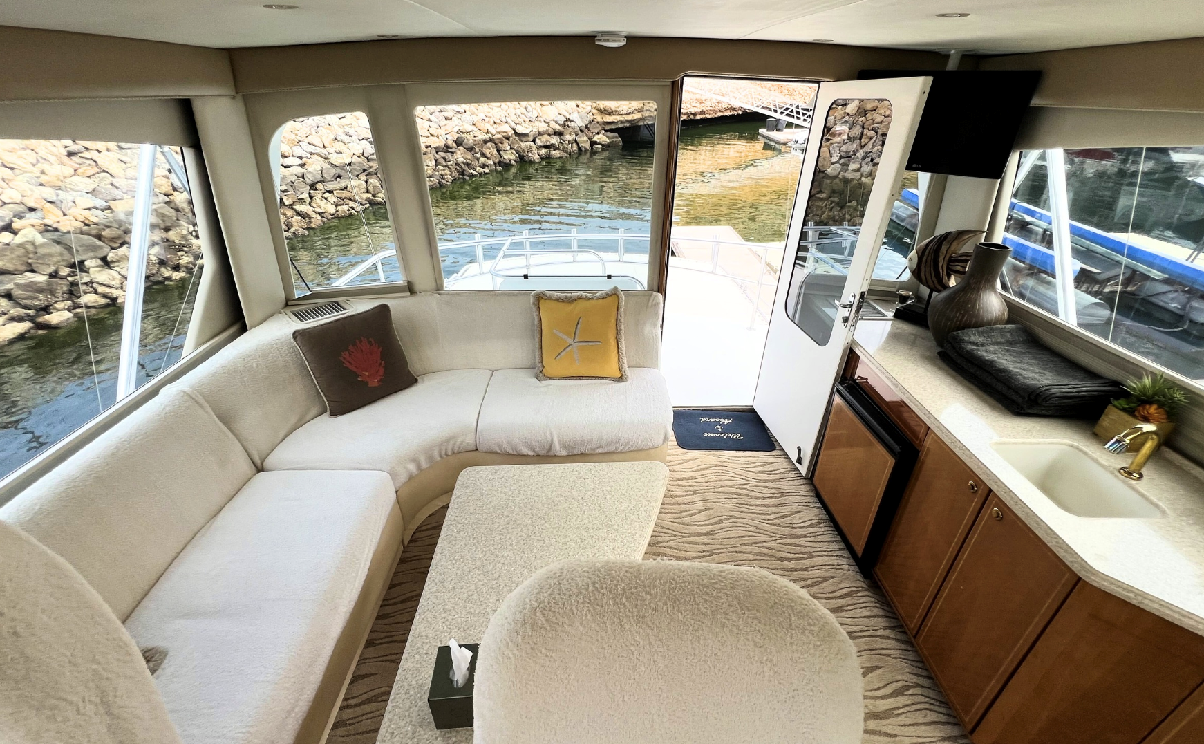 Built to accommodate varied electrical requirements, this yacht operates on 110V with a 220V converter, making it compatible with both US and European electrical standards.