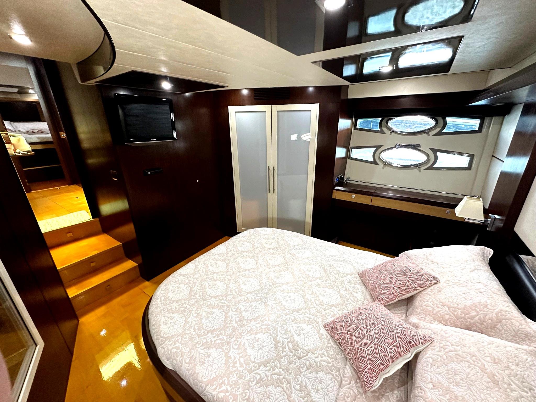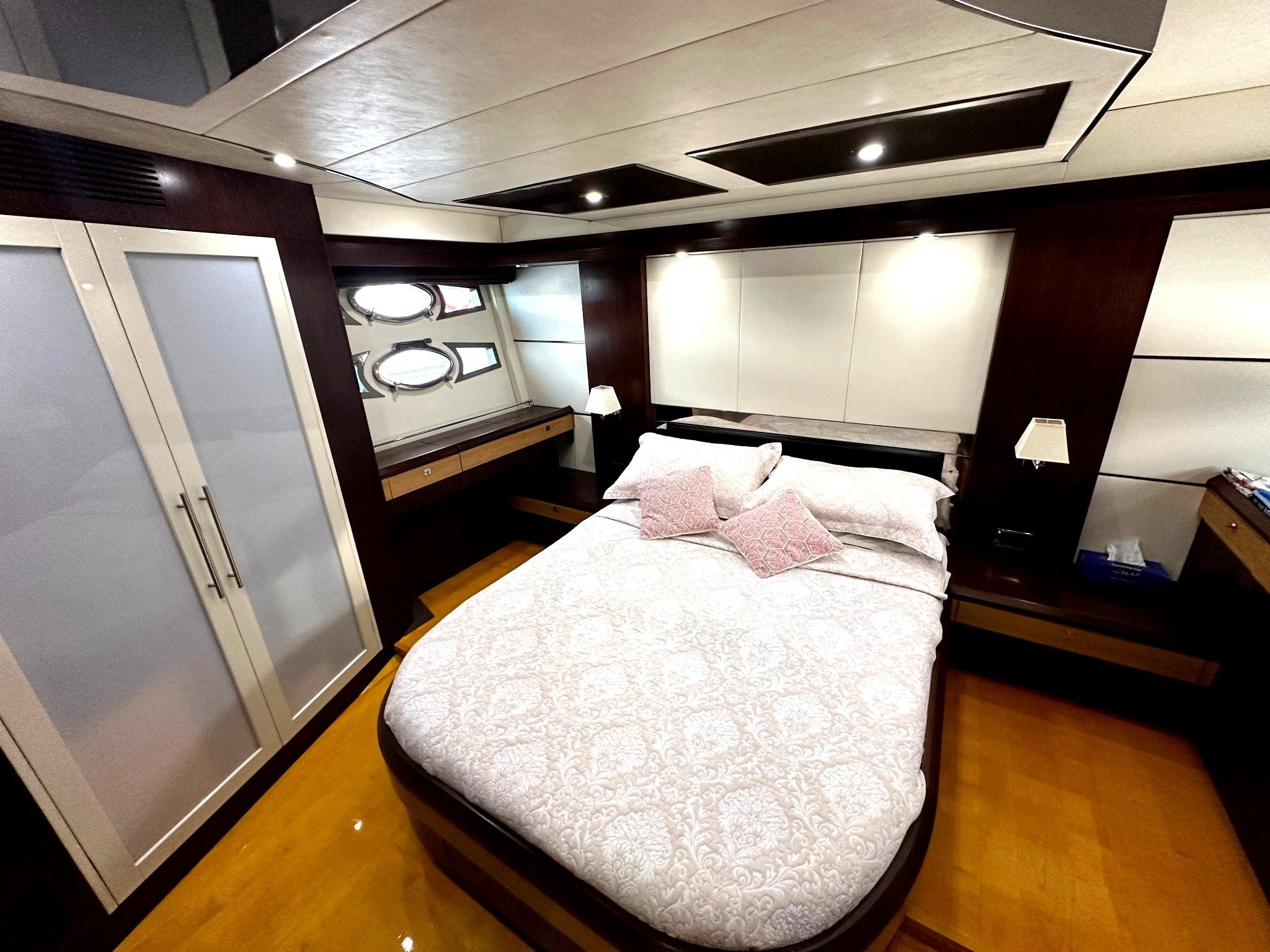 Inside, the yacht boasts two large, well-appointed bedrooms, offering generous space and privacy for extended stays. The low engine hours also ensure reliable performance and longevity, making this yacht a wise investment for discerning buyers.