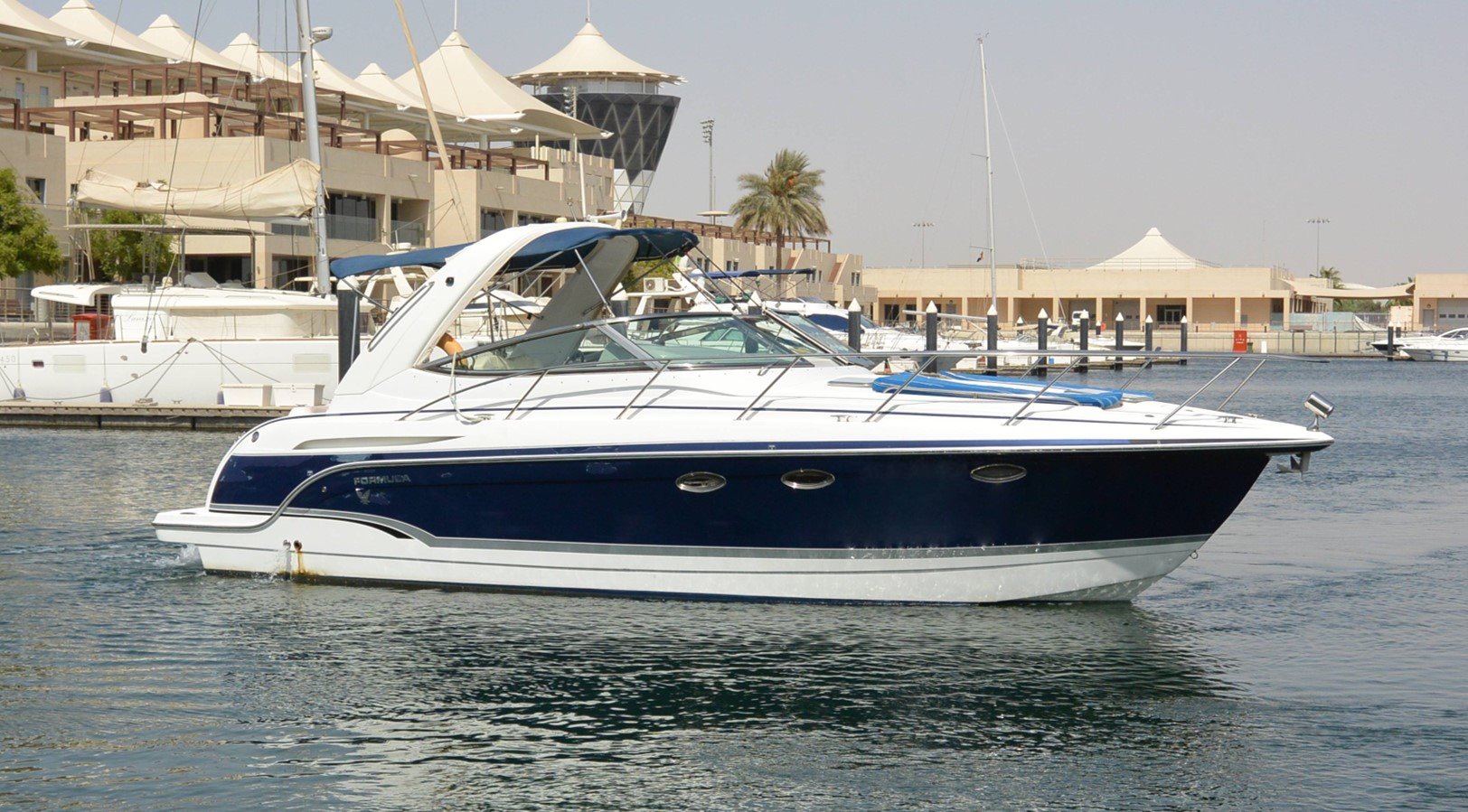 The Formula 31 PC (Performance Cruiser) is a fantastic entry-level Sports Boat. Featuring 2 Cabins, ample Seating Areas, an equipped Galley and Head, the stylish cruiser is designed for couples or small families to sail the sea and enjoy an overnight stay onboard.