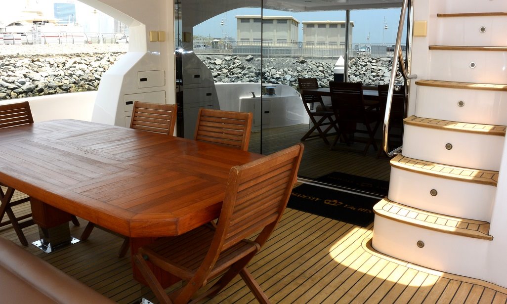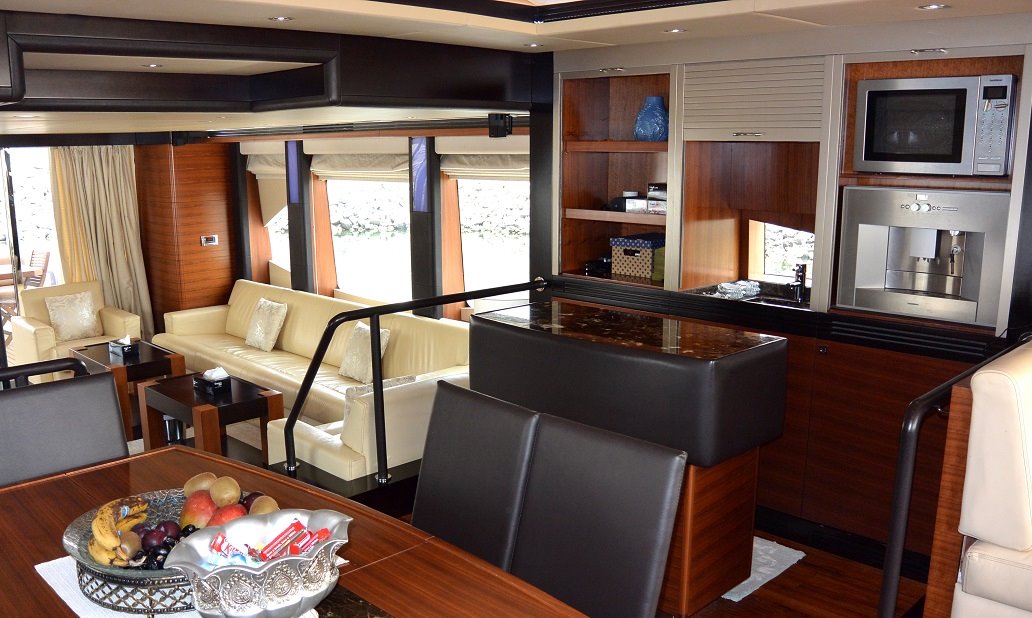 The Majesty 77 Luxury Yacht is the perfect full option Boat for family cruising or social gatherings. The vessel can accommodate up to 8 Guests, featuring a fully equipped galley, 4 guest cabins, and 4 heads; offering a luxurious home at sea.