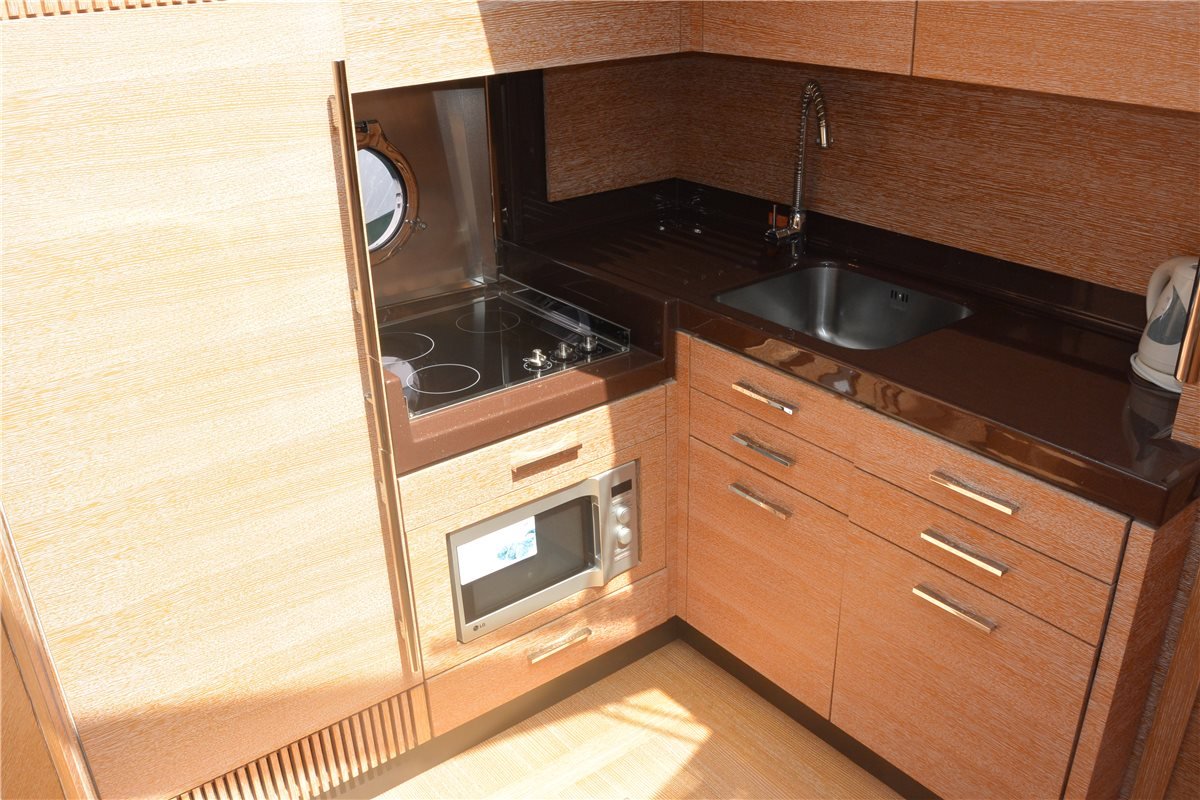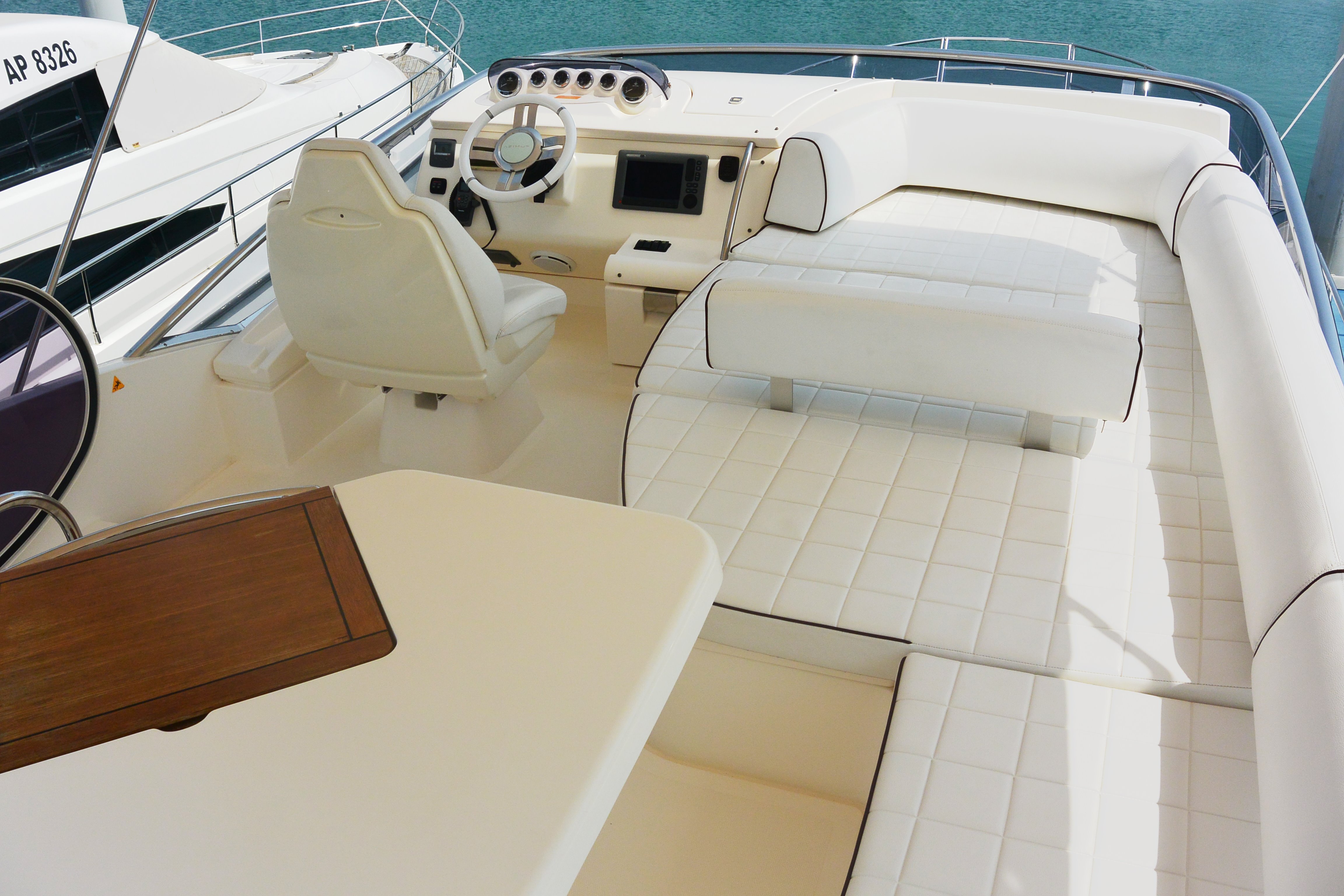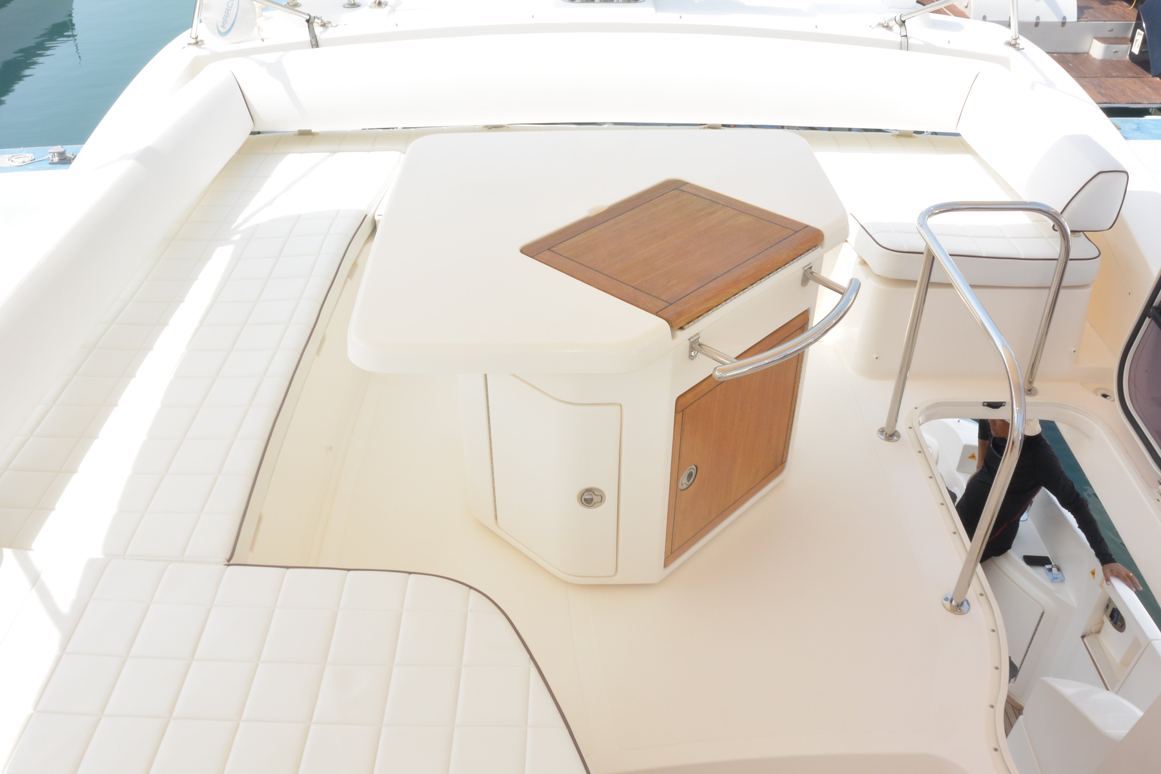 Her design features large, light-flooding windows, allowing you to truly contemplate the sea, right before your eyes. Built in 2011, and with very low engine hours, this turn-key Flybridge is virtually brand new, ready to be enjoyed with family and friends.