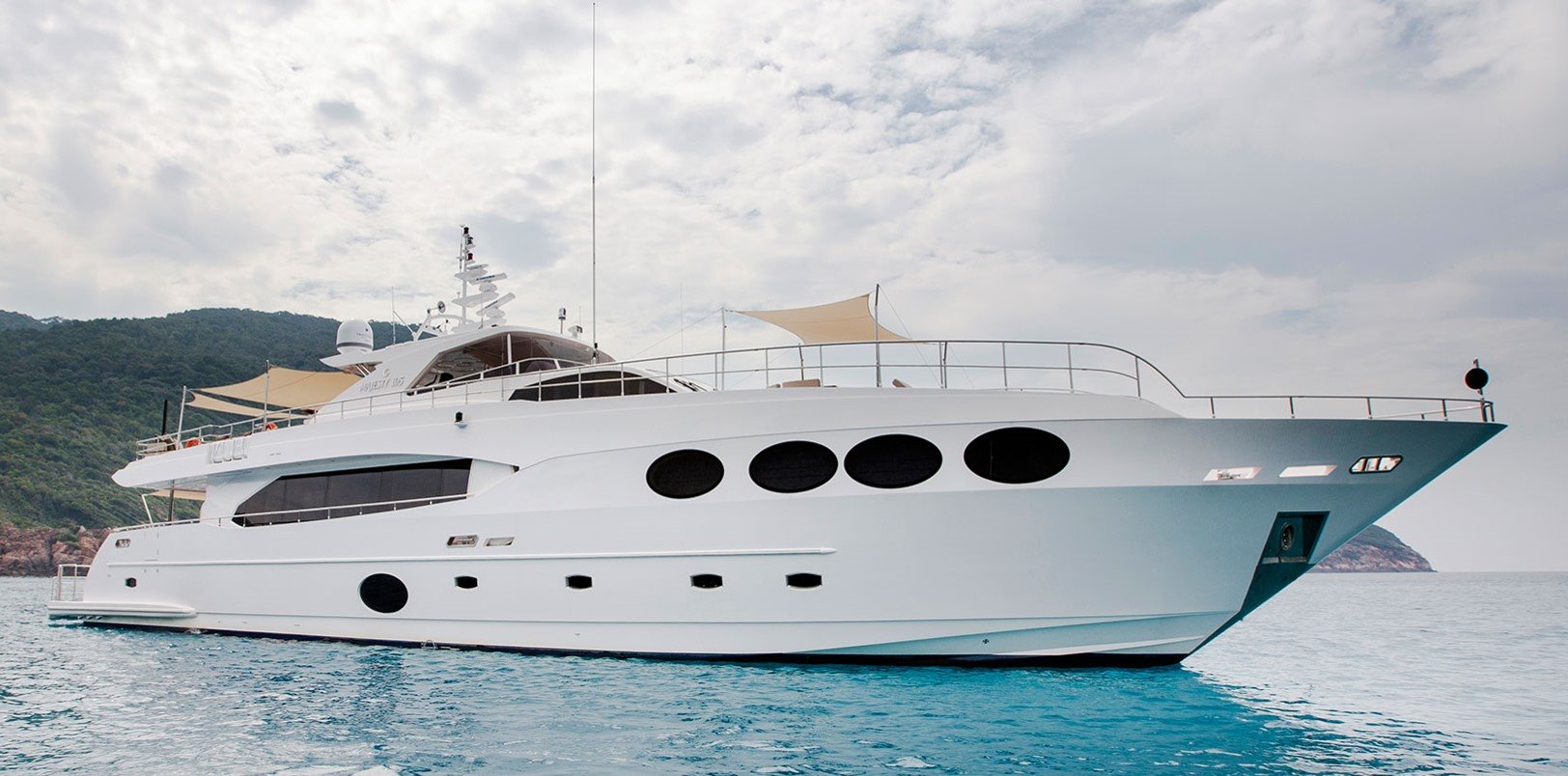 The Majesty 105 is the most spacious yachts in her category and can accommodate 10 guests in 5 ensuite cabins (there is also a day head) including an amazing full beam owners' cabin on the main deck with direct access to the main saloon. The captain has a separate cabin plus there are two crew cabins.