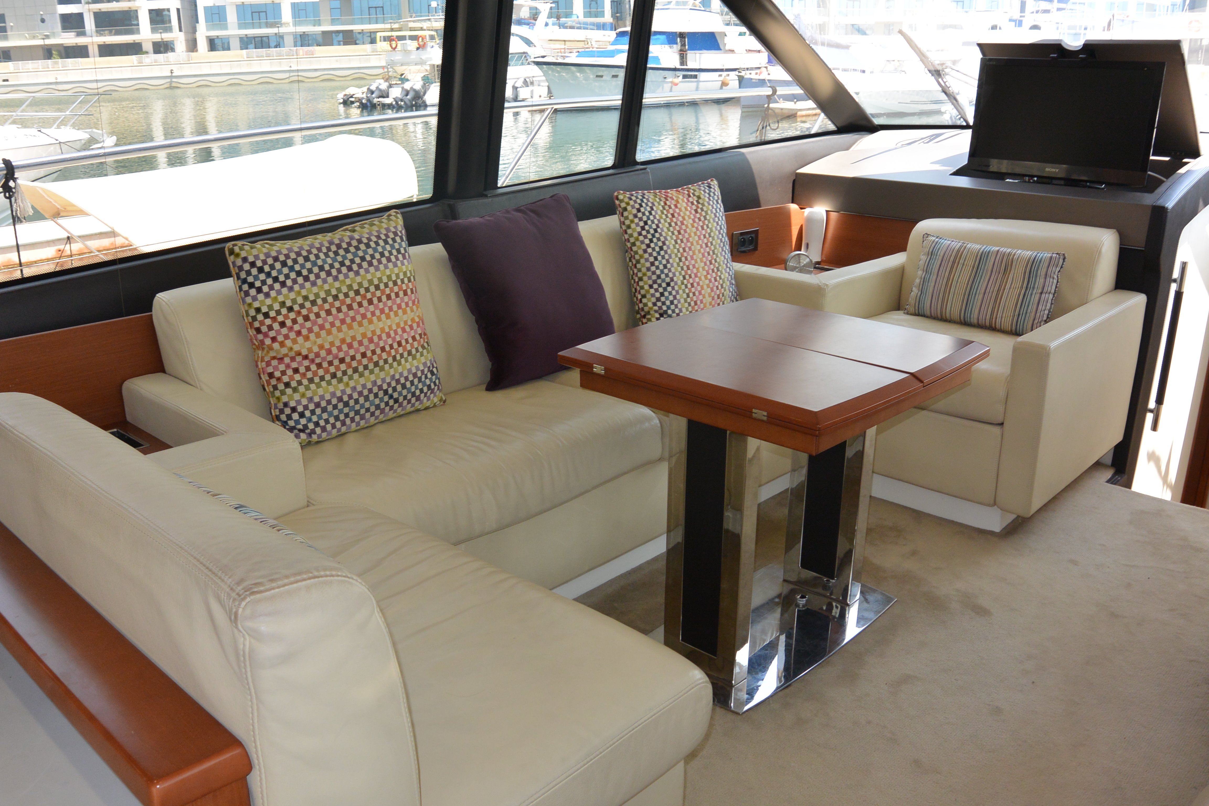 The PRESTIGE 500 Fly is a multi-award winning yacht, renowned for its unique layout, including a spectacular living space, on a single level.