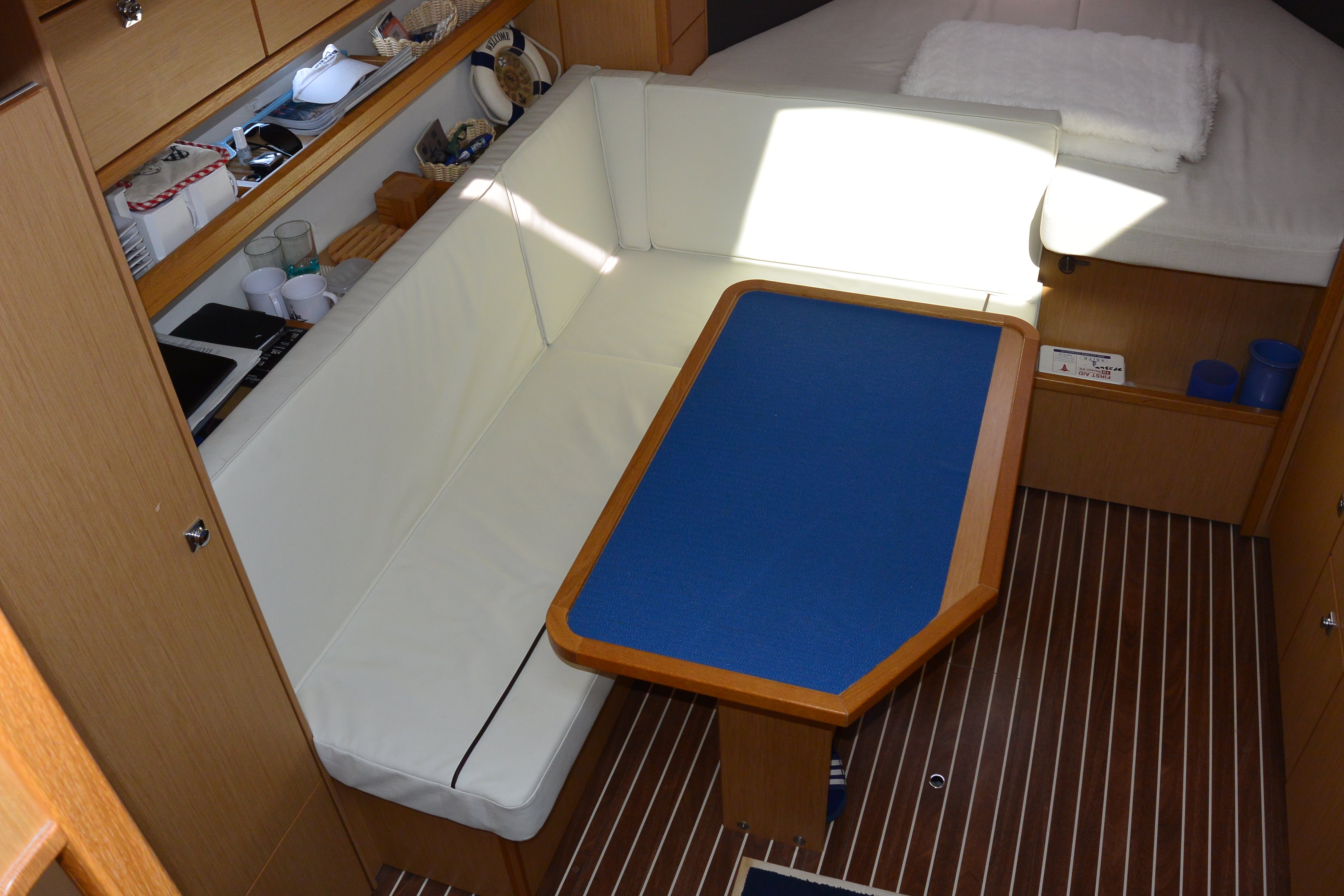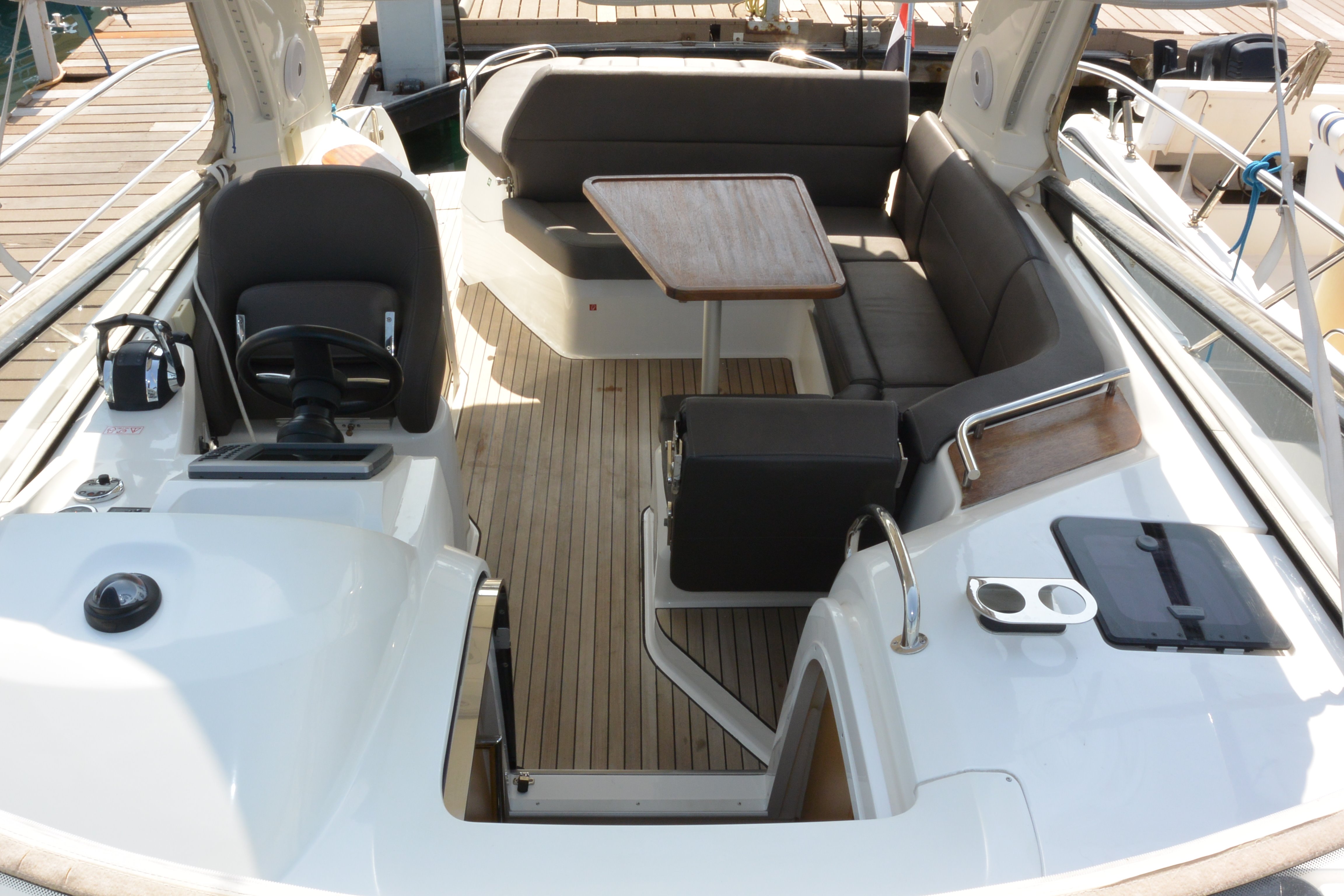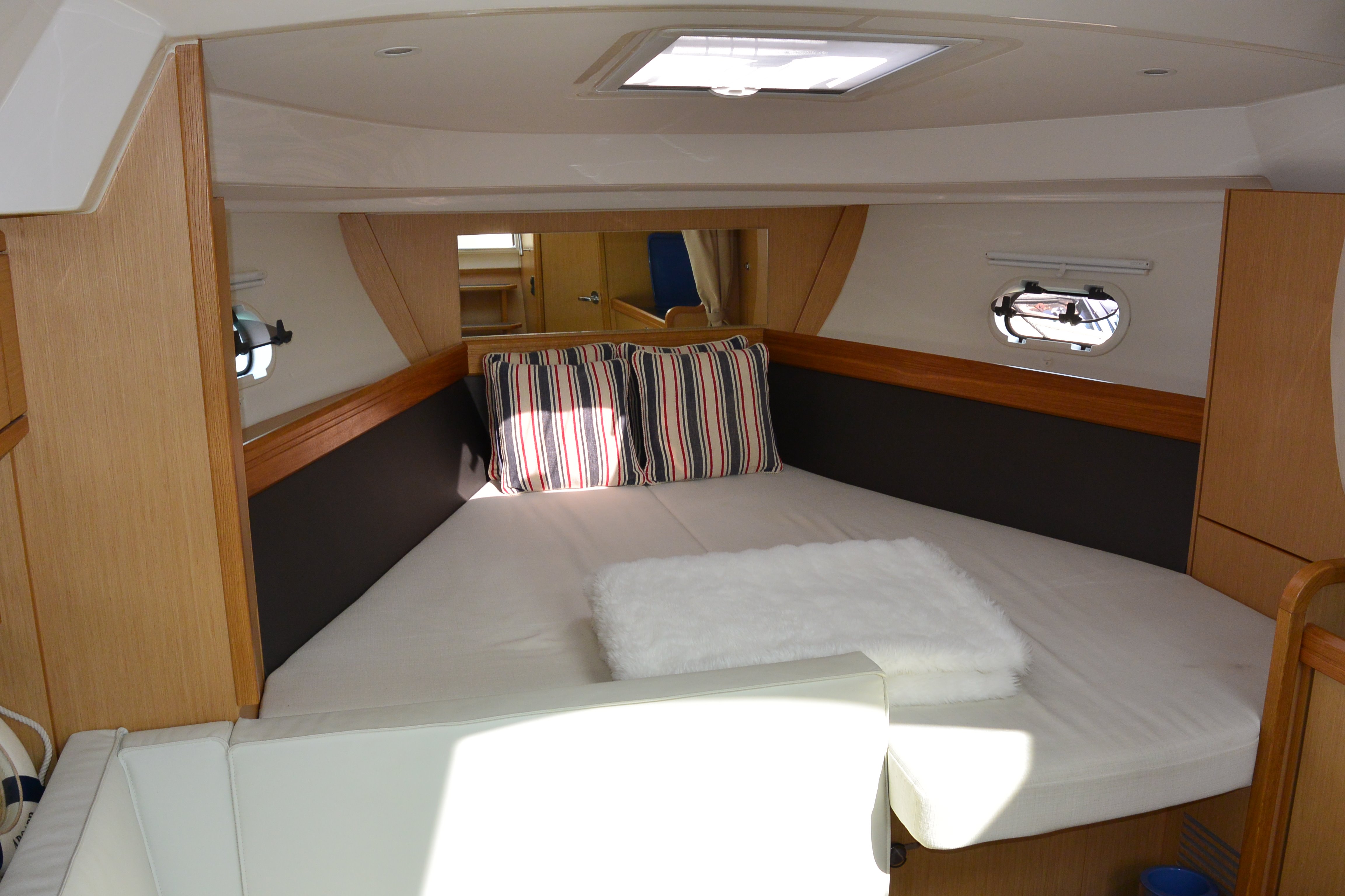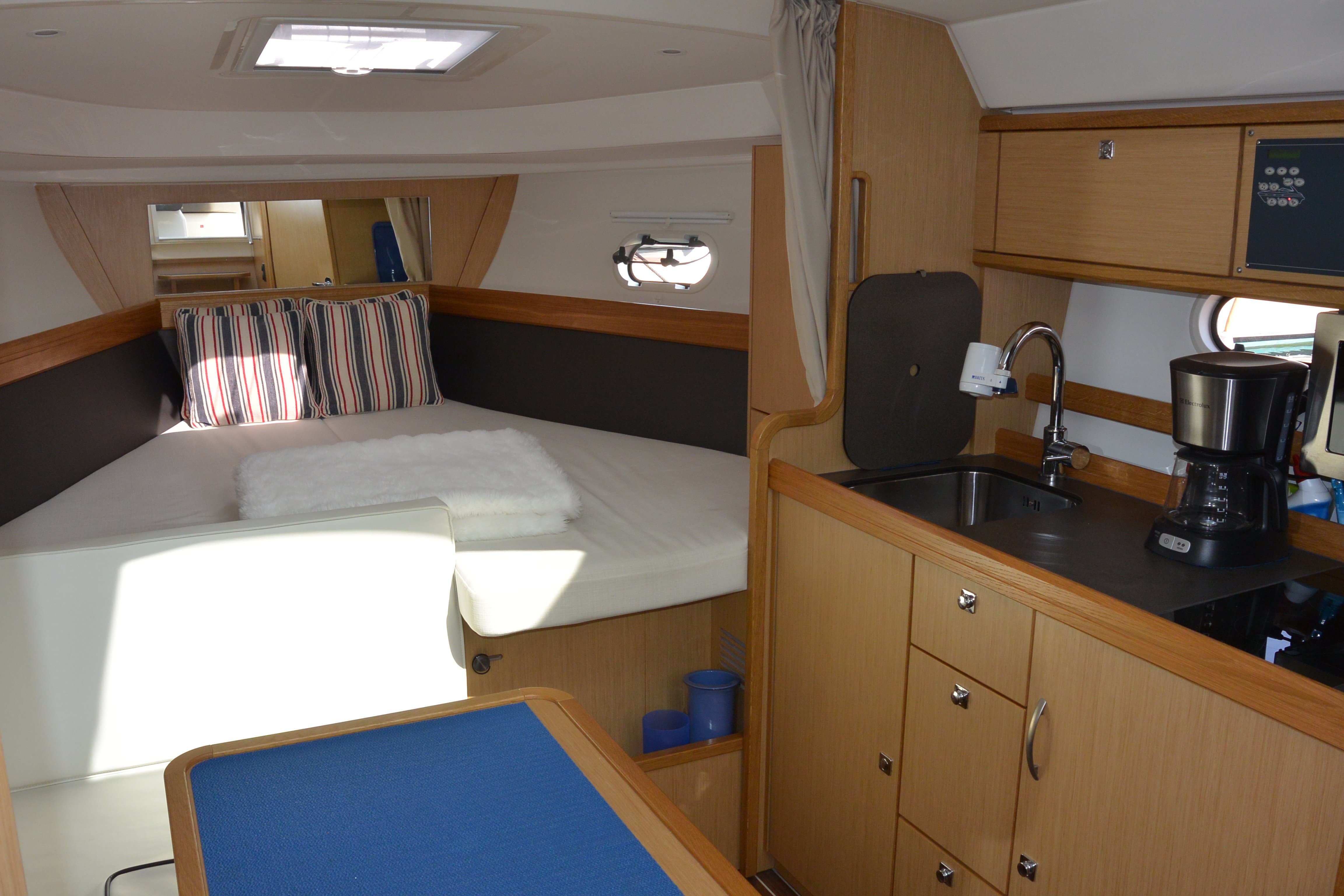 The yacht features two cabins and four berths and can transport up to 8 persons. You also get a 550-litre fuel tank and a 250-litre water tank.