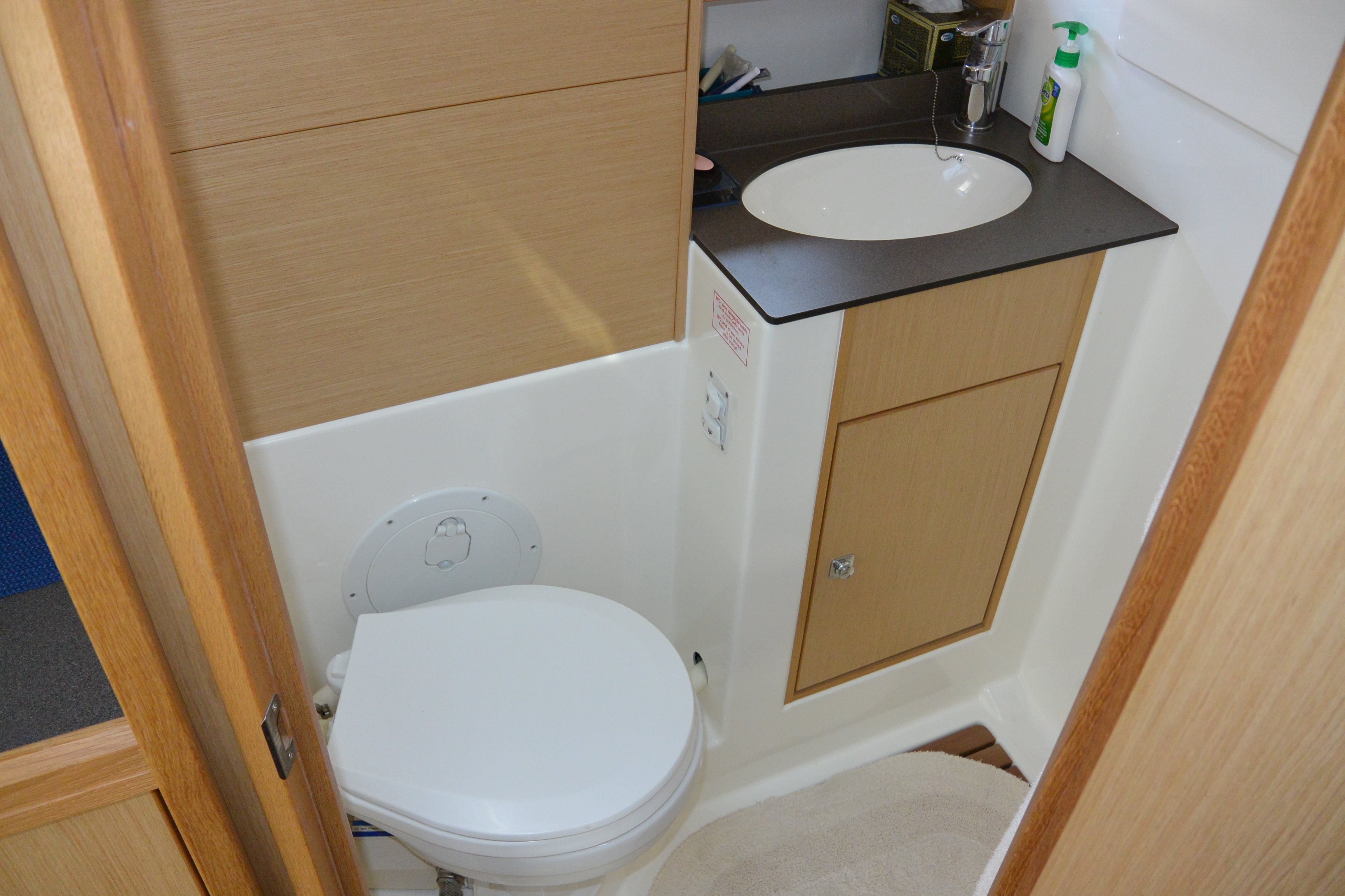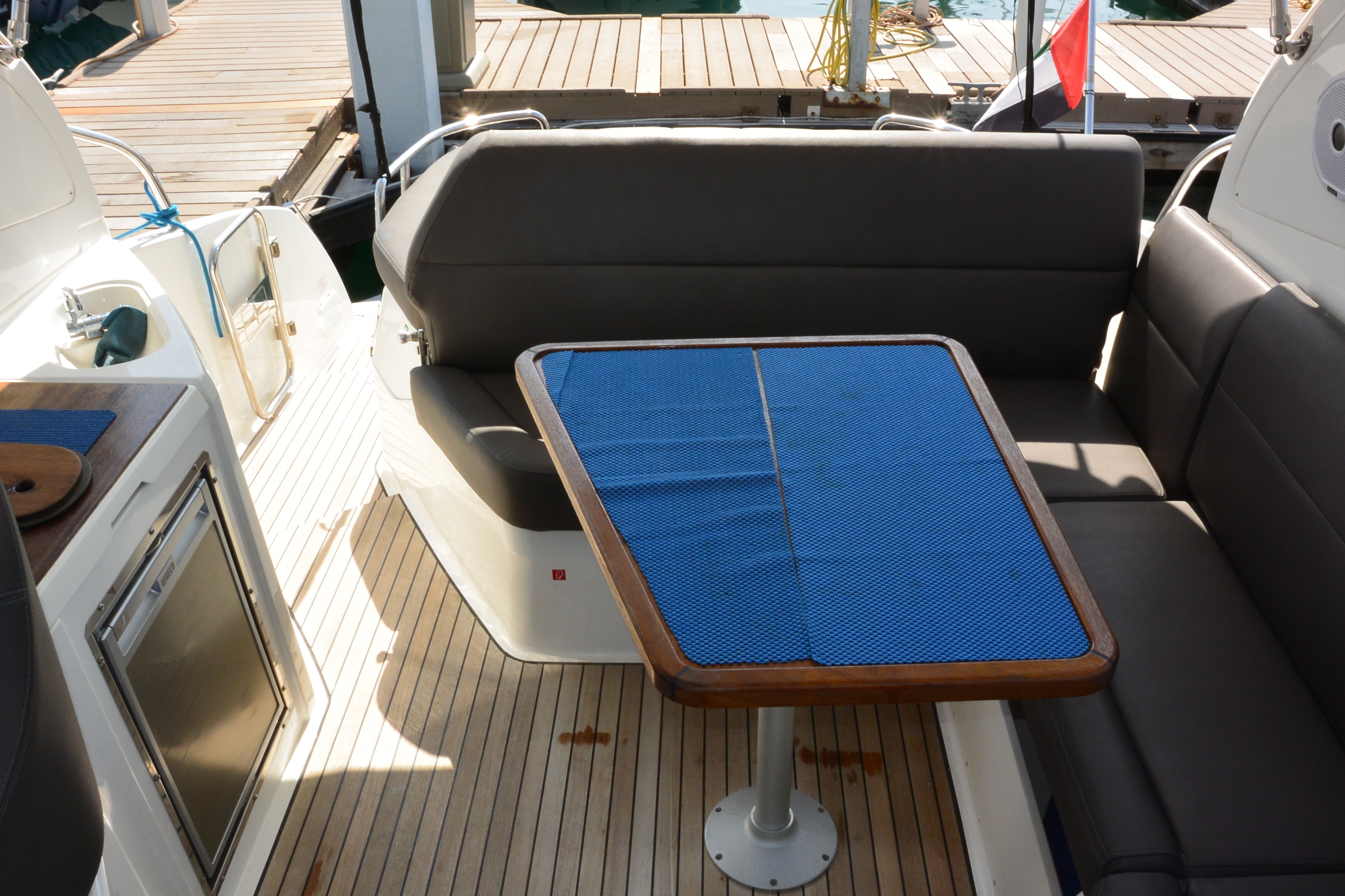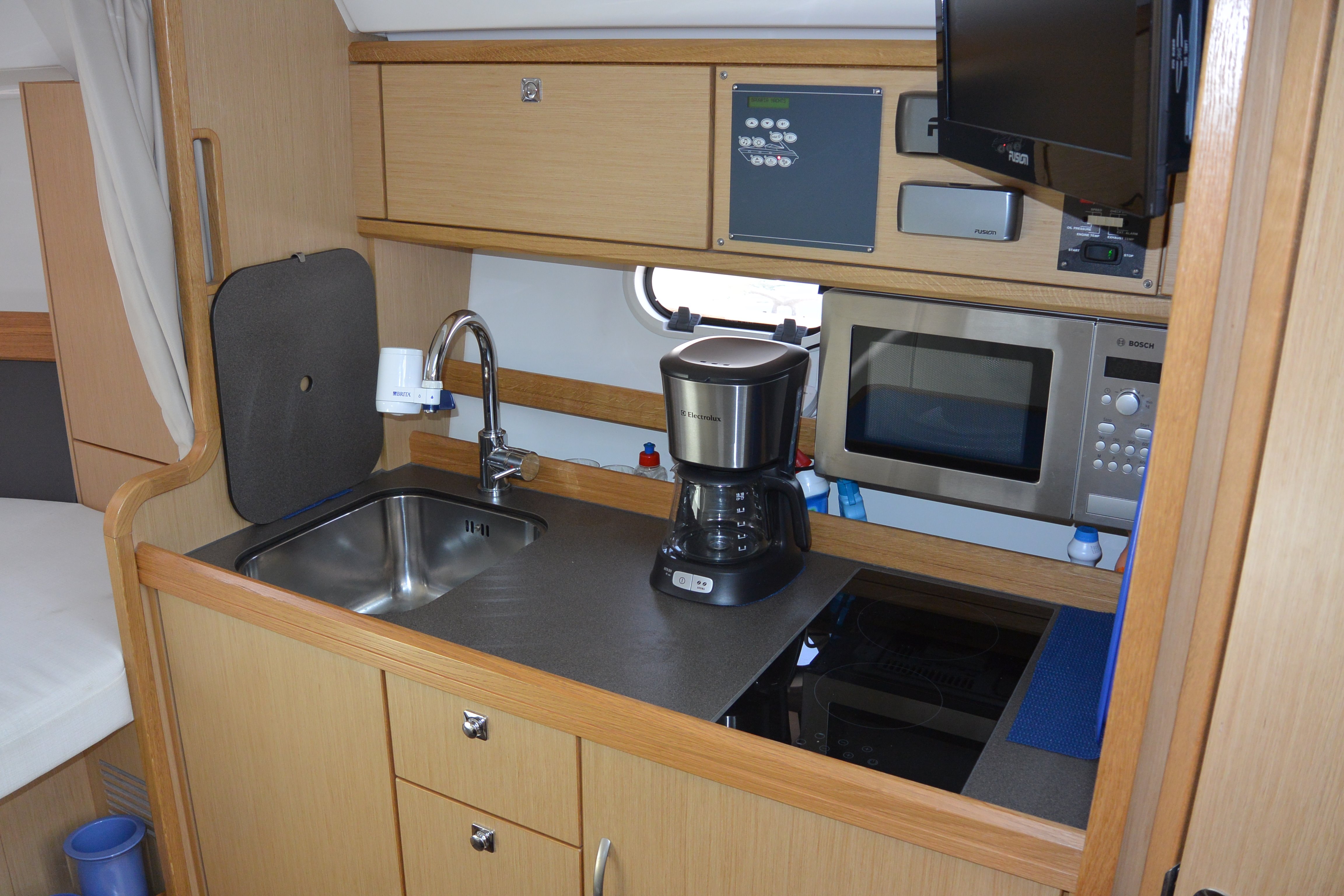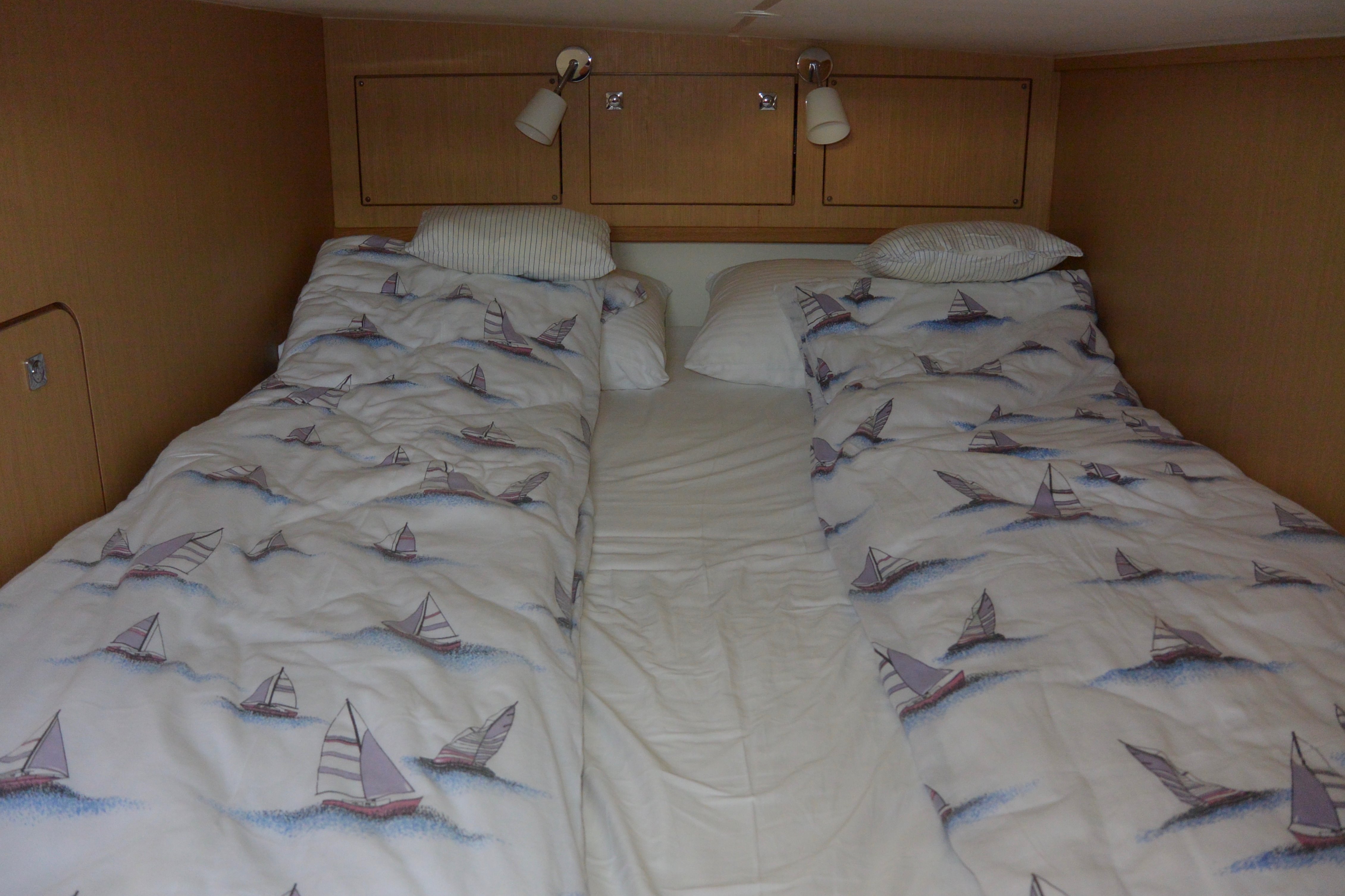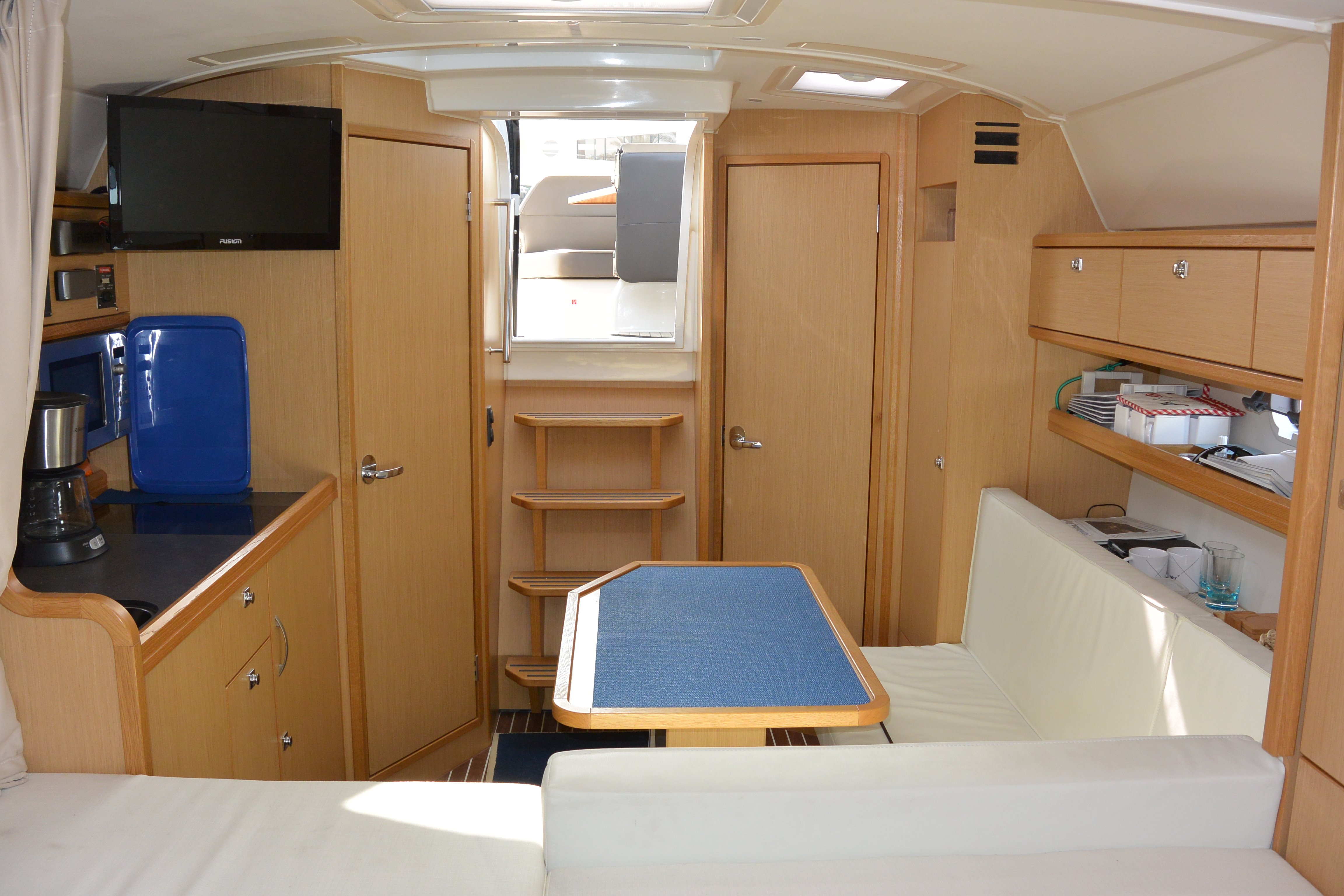 The yacht features two cabins and four berths and can transport up to 8 persons. You also get a 550-litre fuel tank and a 250-litre water tank.