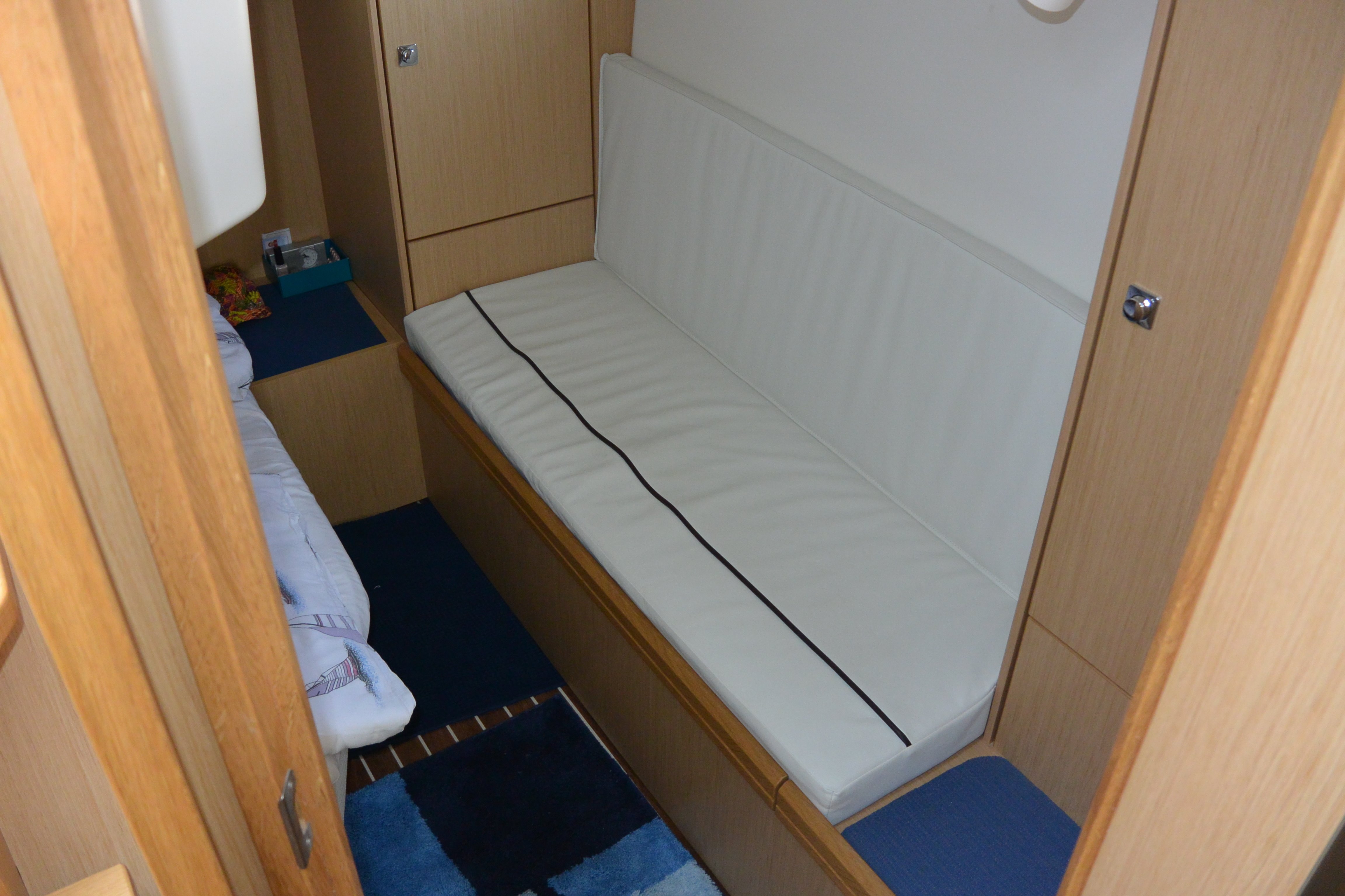 The Bavaria Sport 32 has a large sunbed on the stern and a lounger on the foredeck.