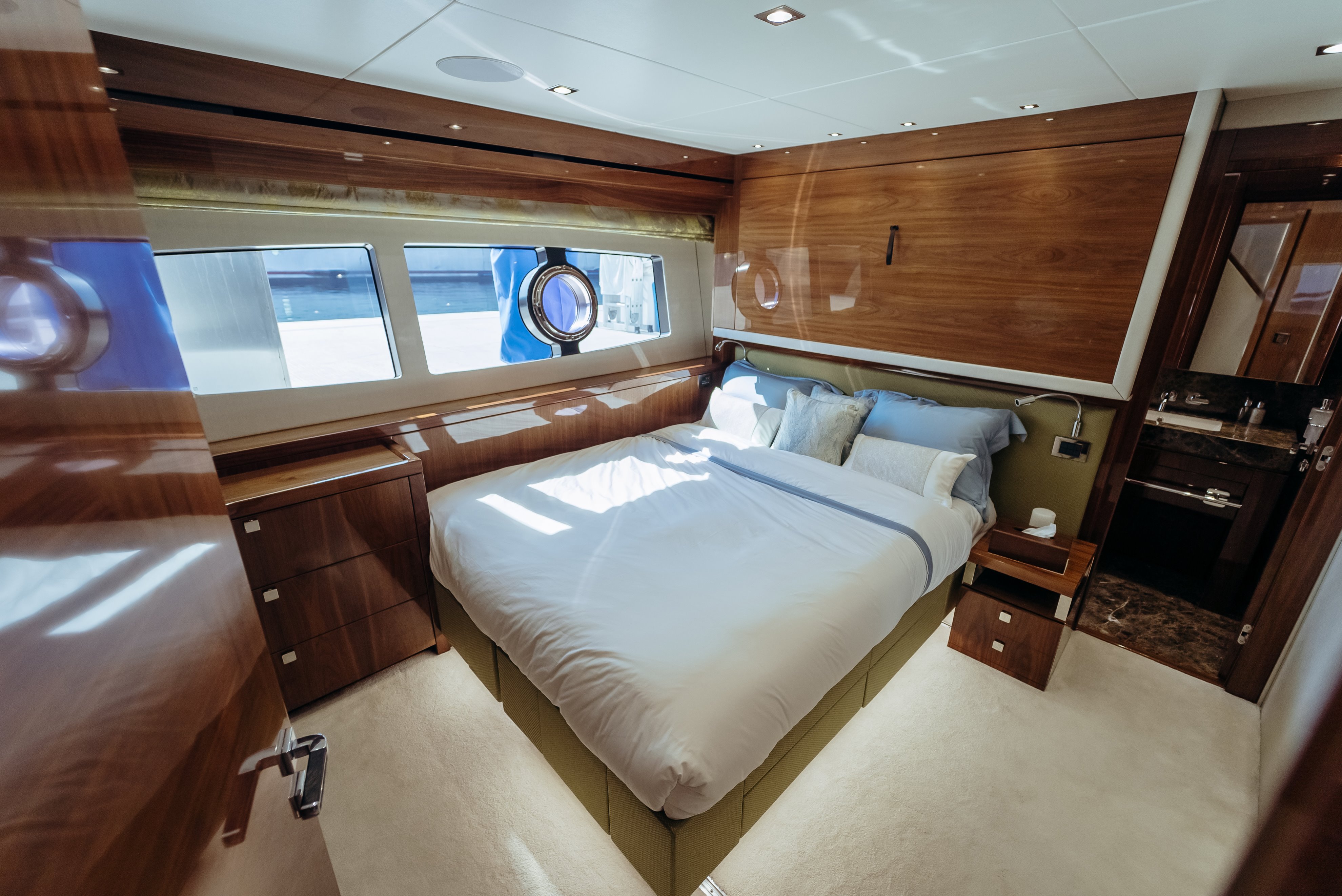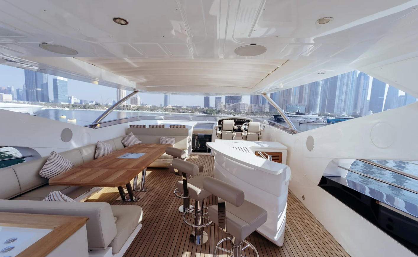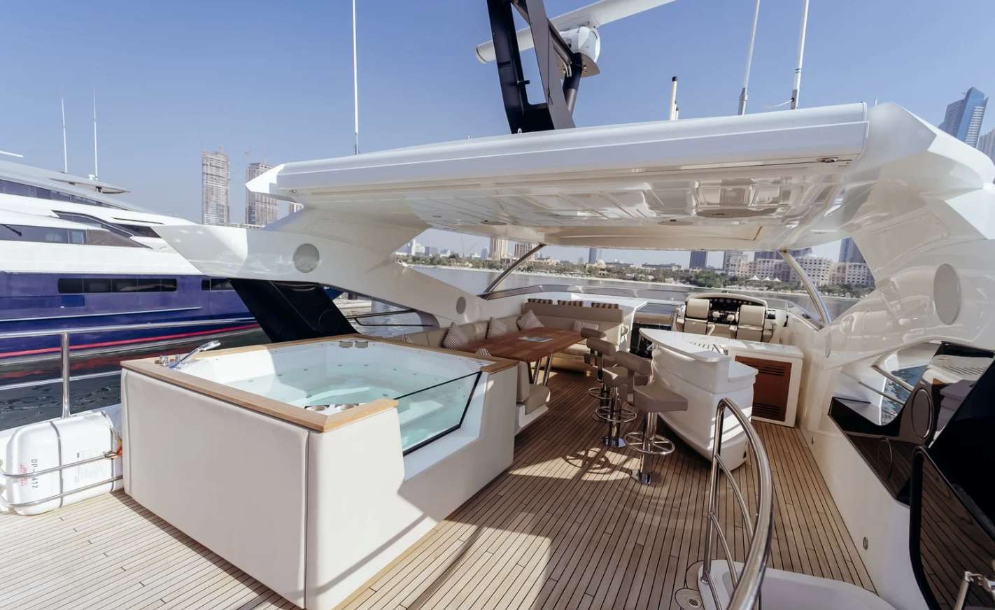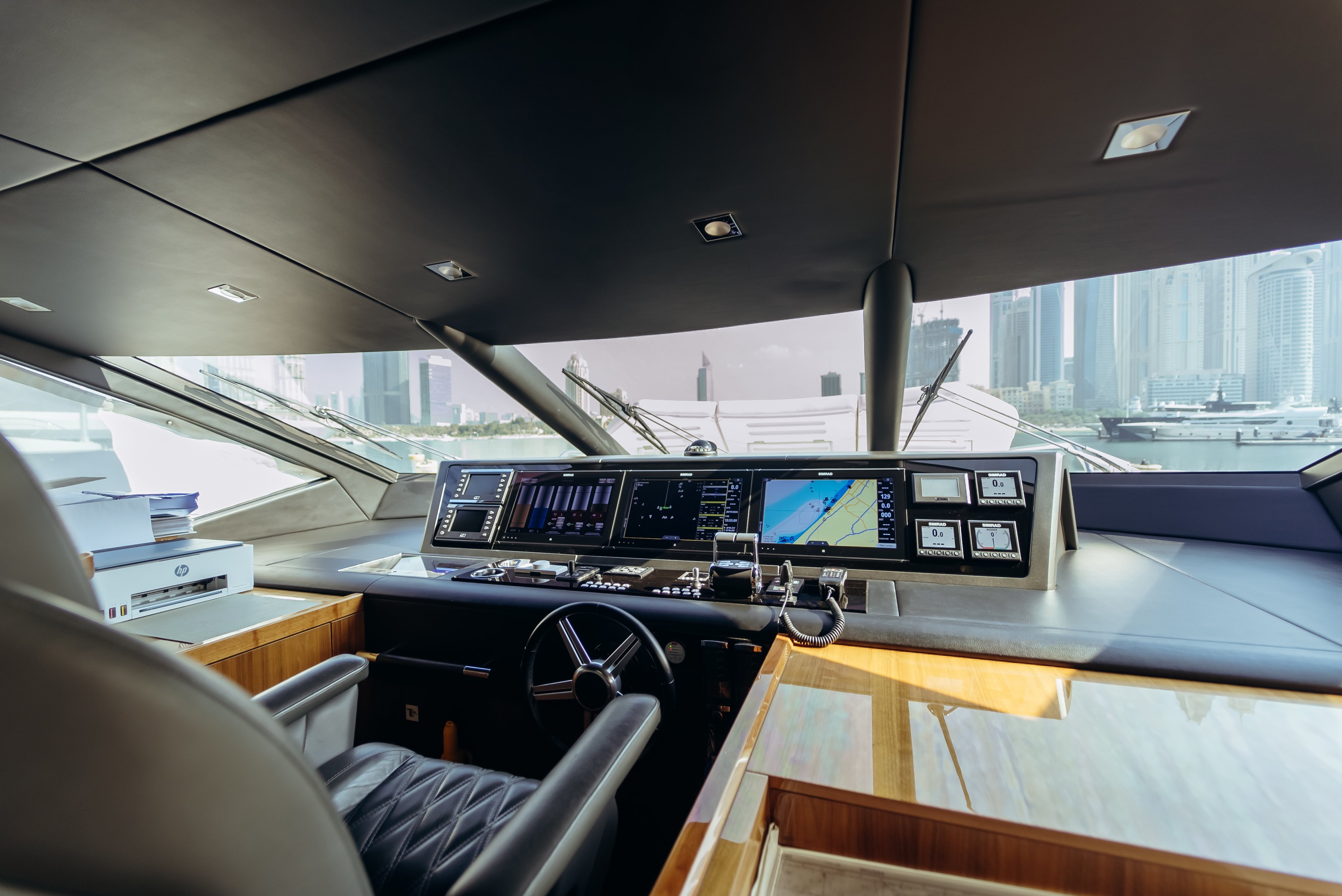 This stunning 2018 Sunseeker 95 is now available for sale in Dubai, built to RINA European specifications and featuring Gulf-spec air conditioning for ultimate comfort. With just over 550 engine hours, this yacht is in like-new condition, having been meticulously maintained and serviced throughout its life. It comes fully equipped with all optional extras, including fin stabilizers for smooth cruising and an air purifier system for the entire boat. Whether for leisure or long voyages, this yacht offers unmatched luxury and performance.