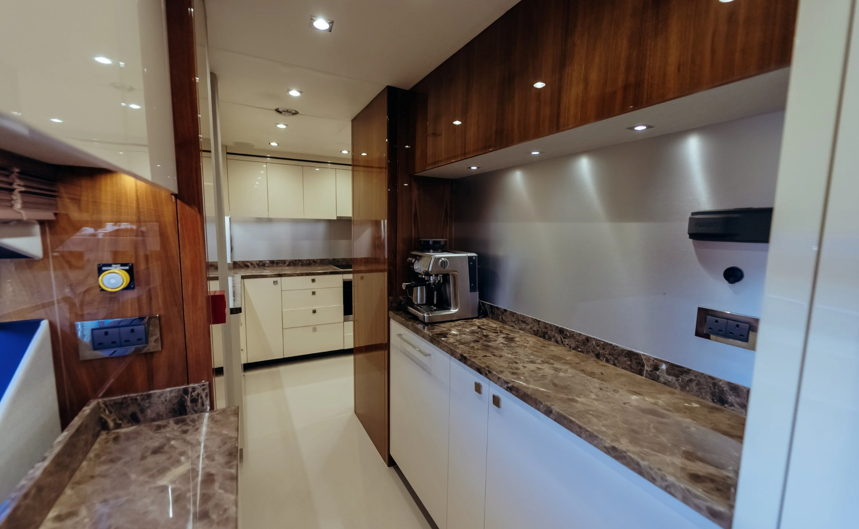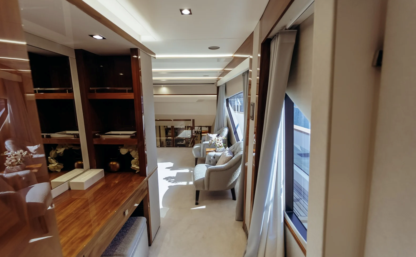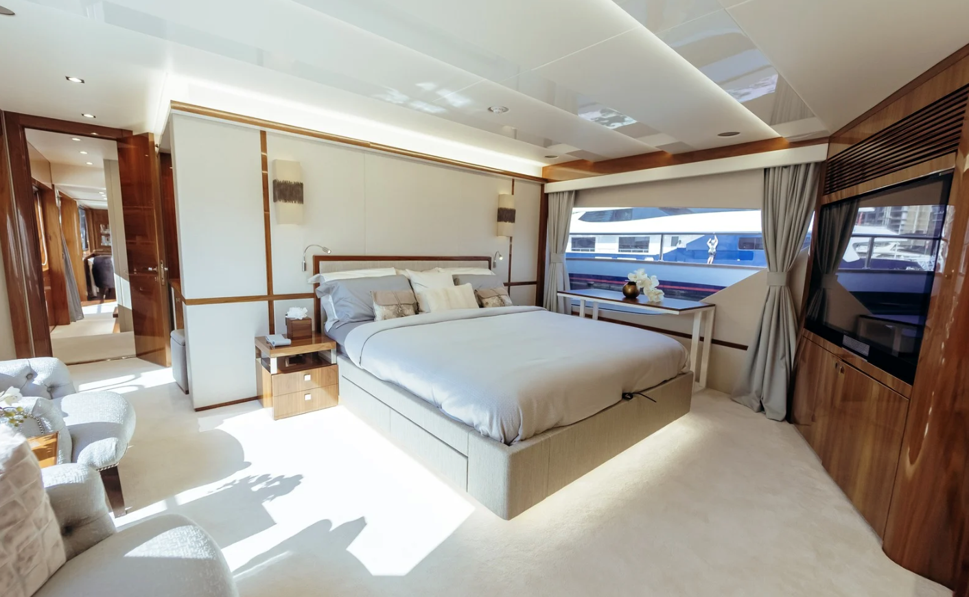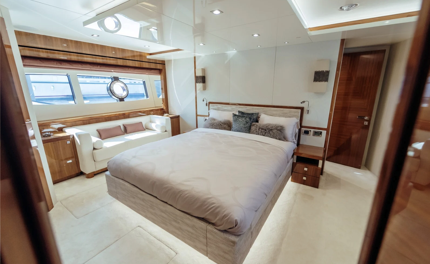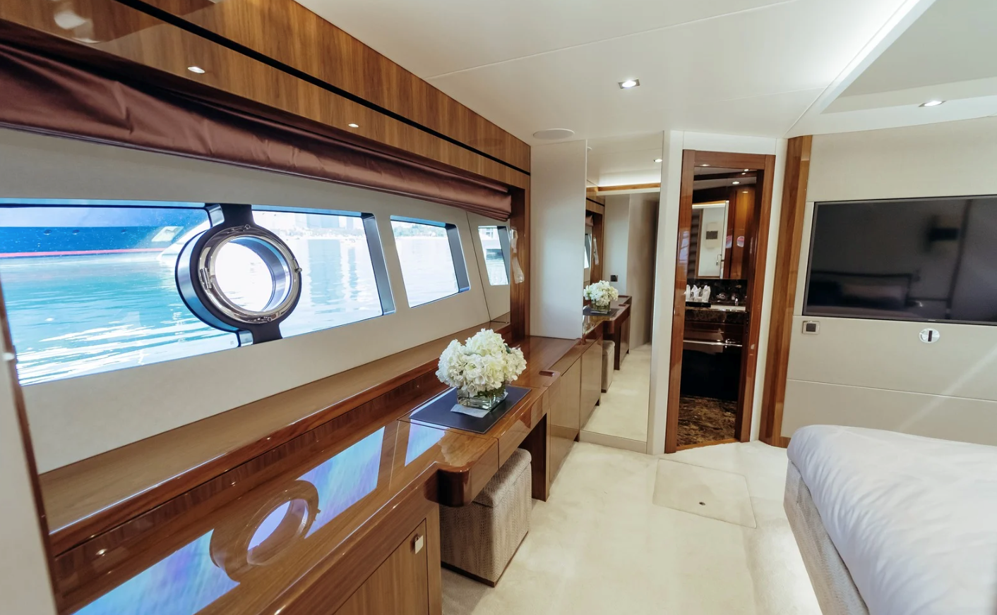 This stunning 2018 Sunseeker 95 is now available for sale in Dubai, built to RINA European specifications and featuring Gulf-spec air conditioning for ultimate comfort. With just over 550 engine hours, this yacht is in like-new condition, having been meticulously maintained and serviced throughout its life. It comes fully equipped with all optional extras, including fin stabilizers for smooth cruising and an air purifier system for the entire boat. Whether for leisure or long voyages, this yacht offers unmatched luxury and performance.