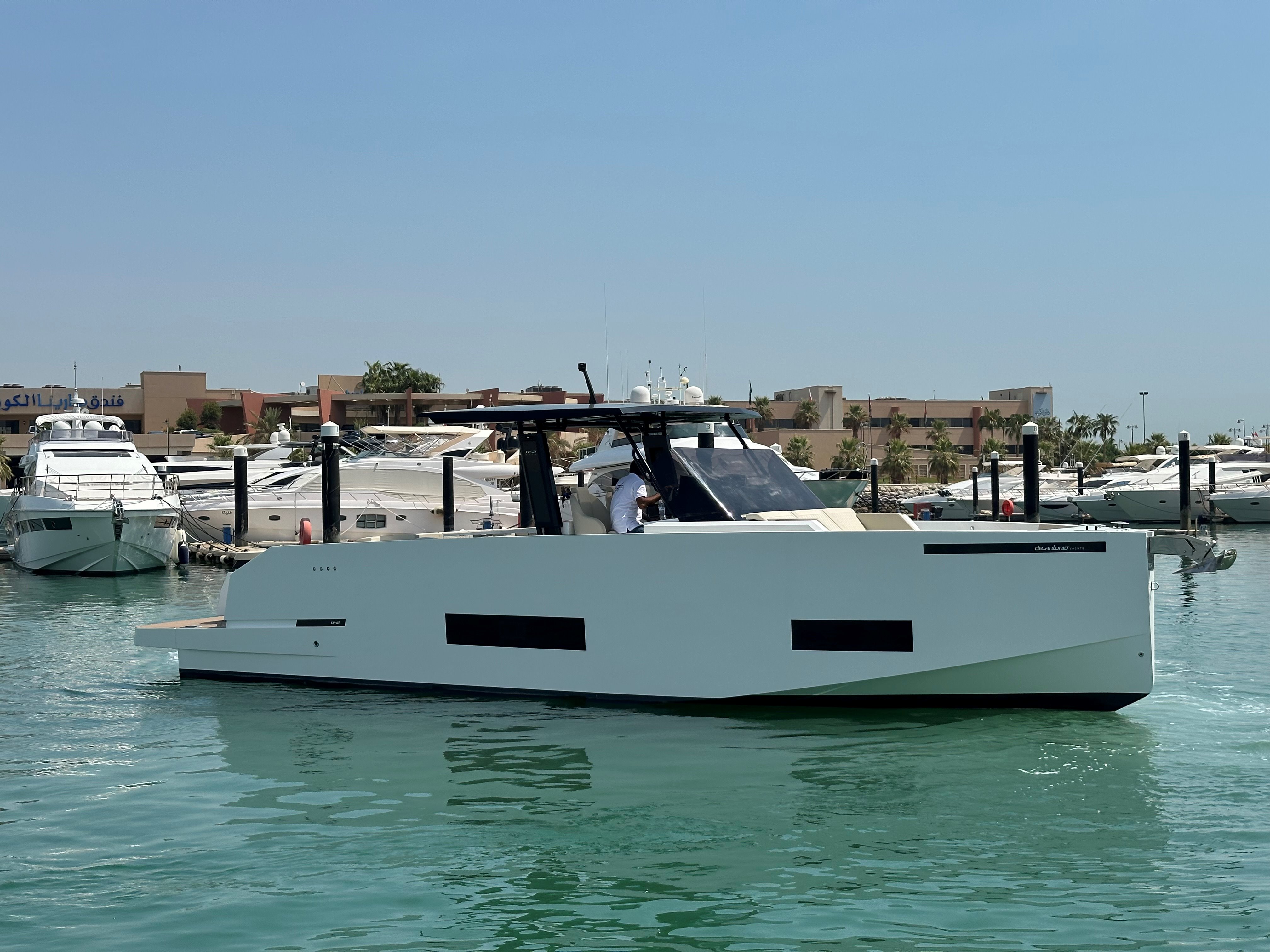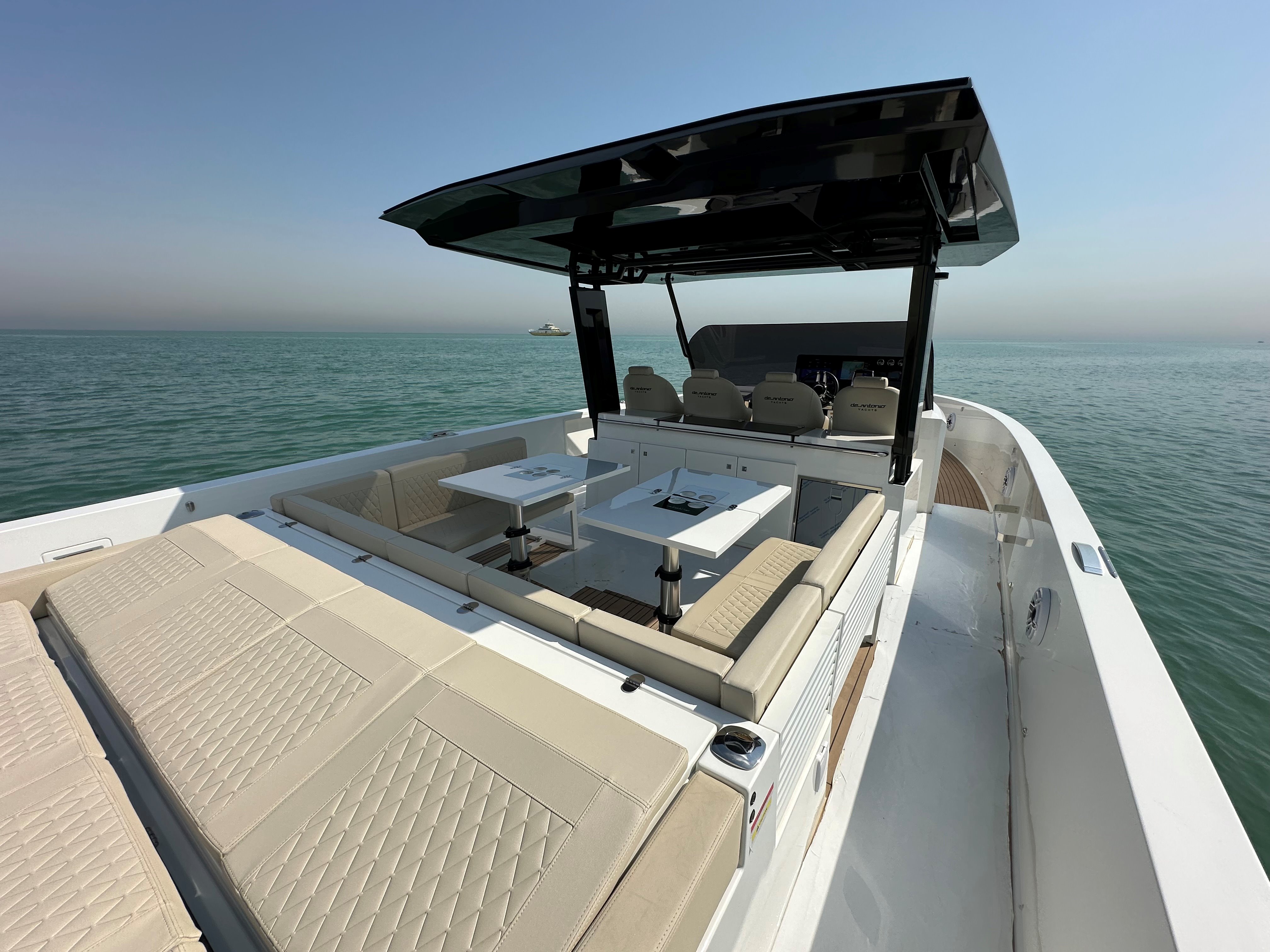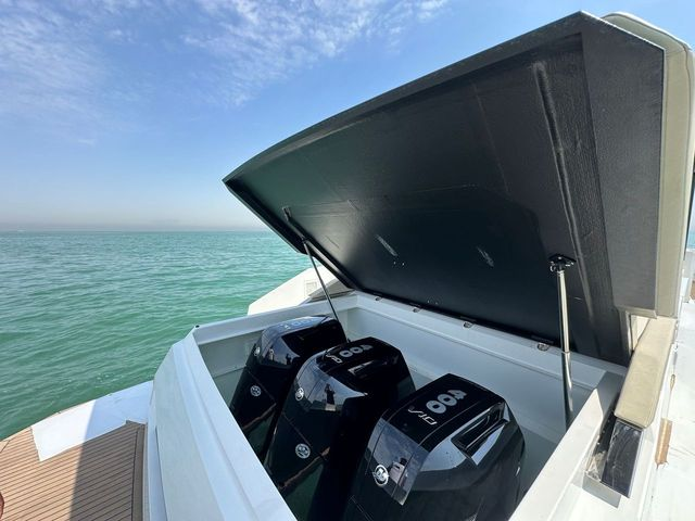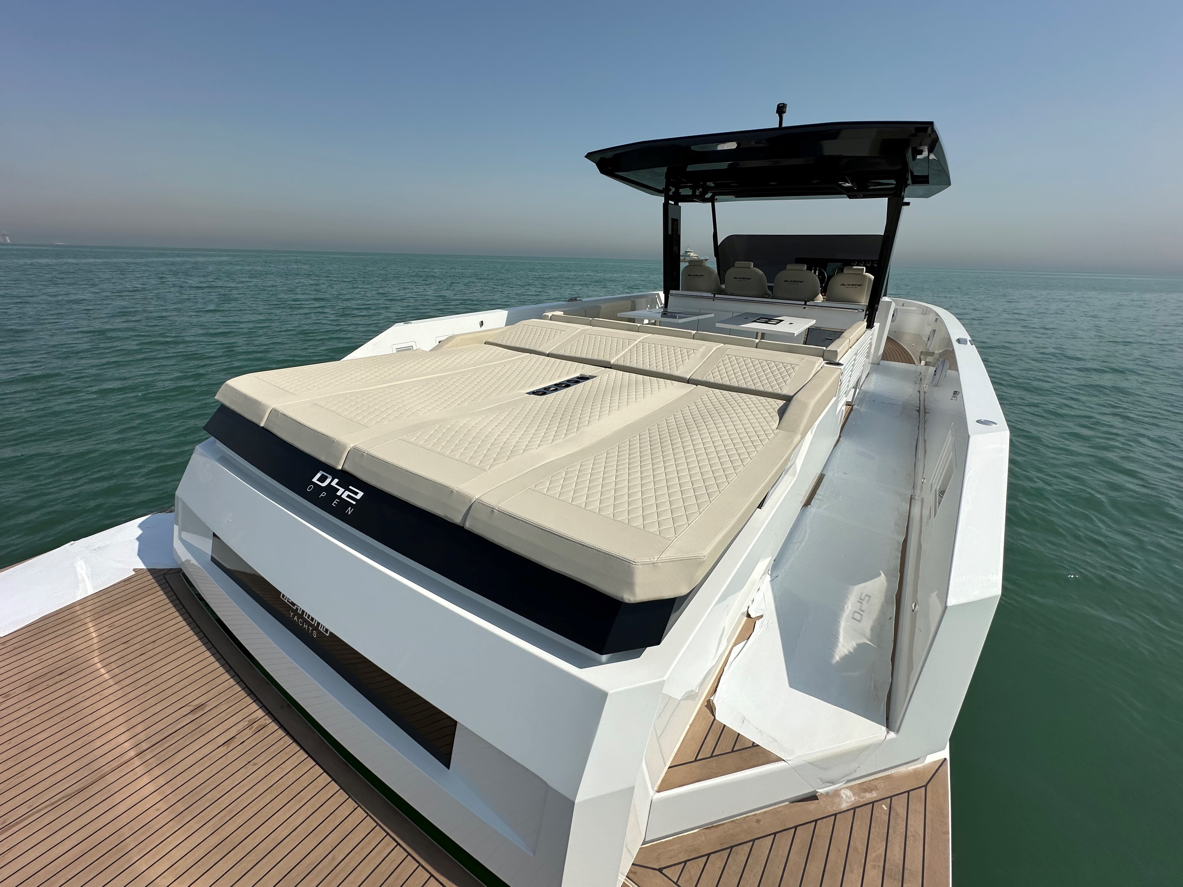 The 2023 De Antonio D42 Open is a top choice for anyone looking for a reliable, high-performance boat. With only 12 engine hours, it's practically new and ready to hit the water. The included cradle ensures easy storage and transportation. For those who value precision, the bow thruster makes maneuvering a breeze, even in tight spots. This model also features a high-performance step hull, ensuring a smooth and efficient ride. Plus, the built-in water toy garage offers convenient storage for all your water sports gear, making it the perfect vessel for both relaxation and adventure.