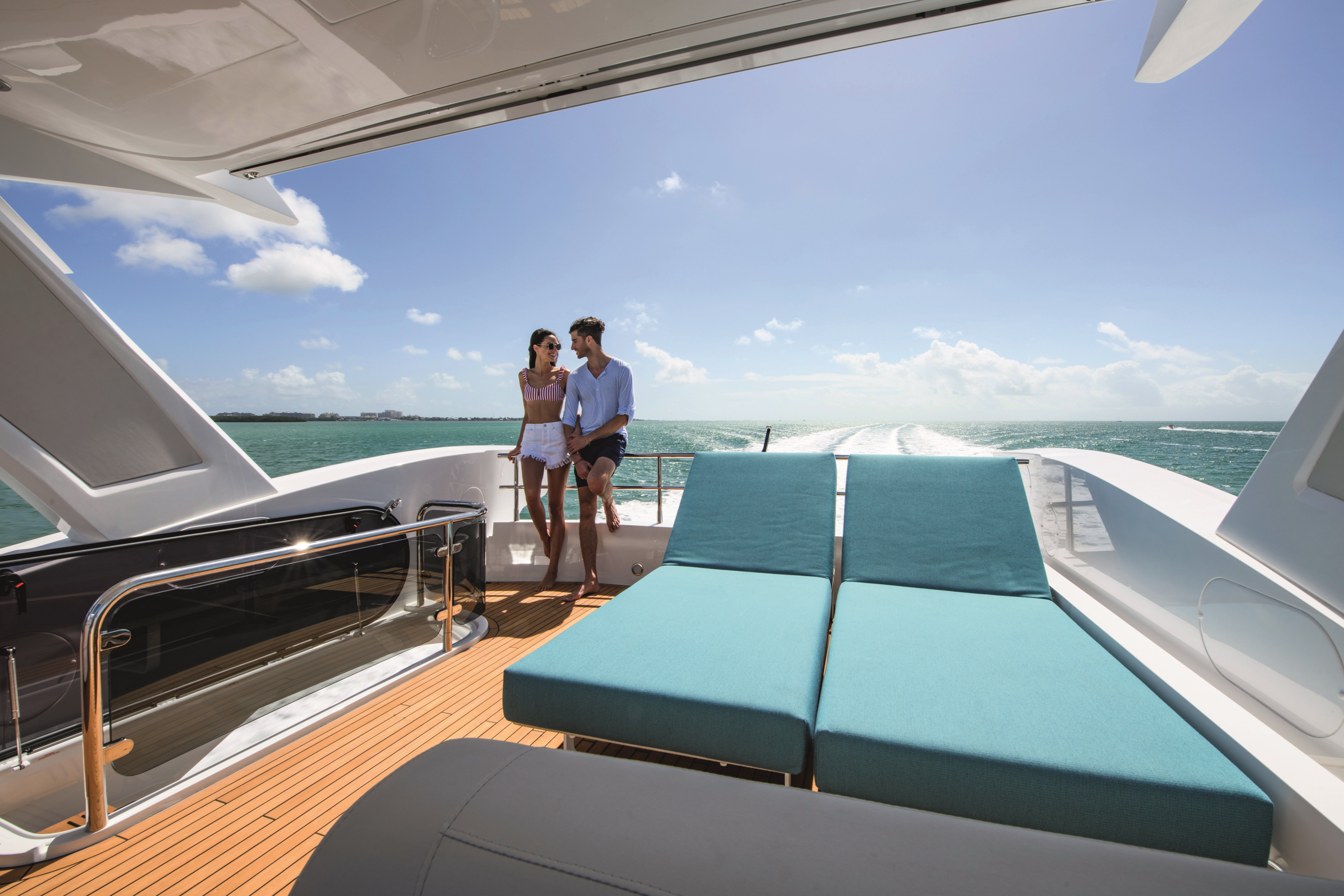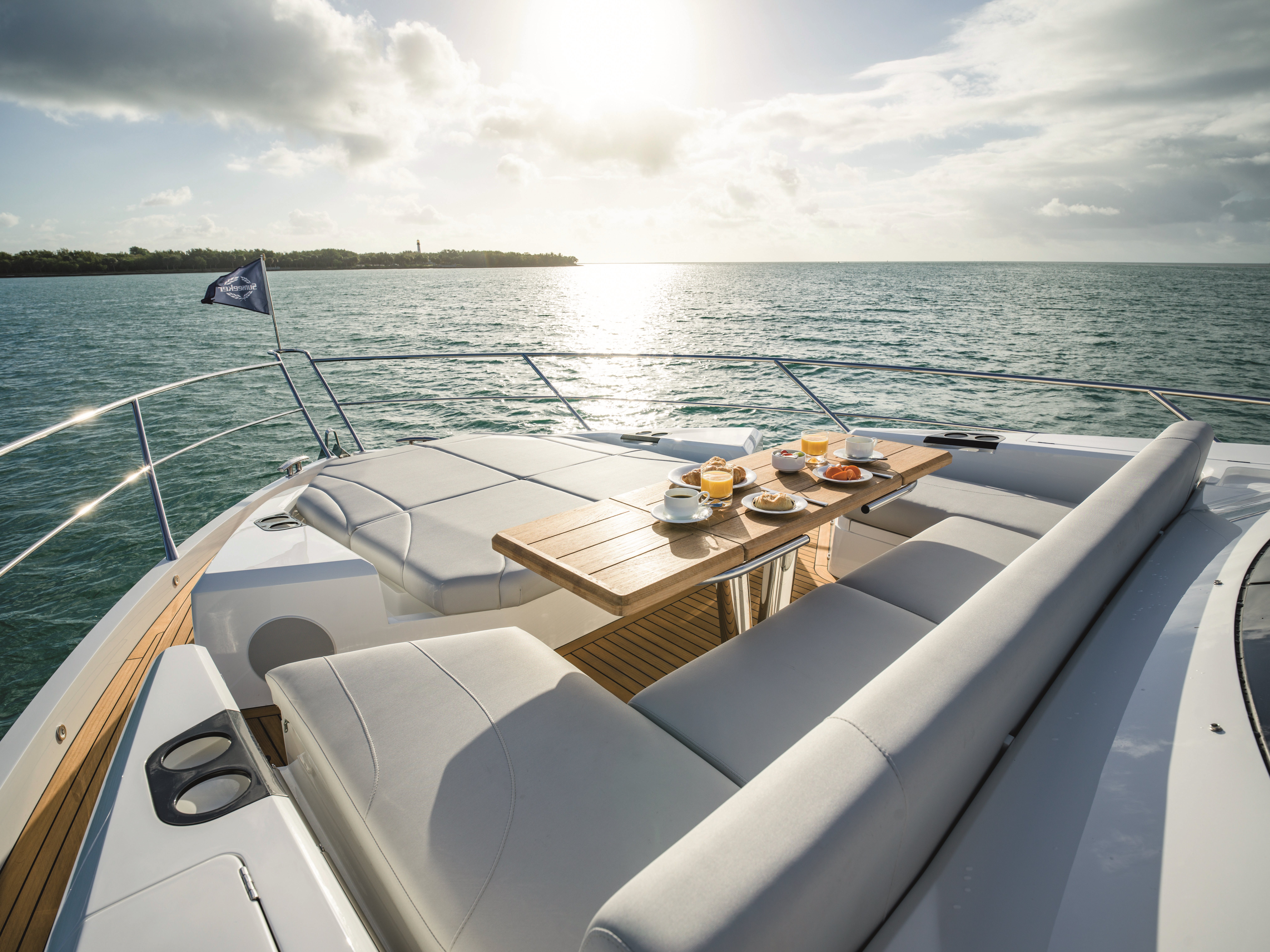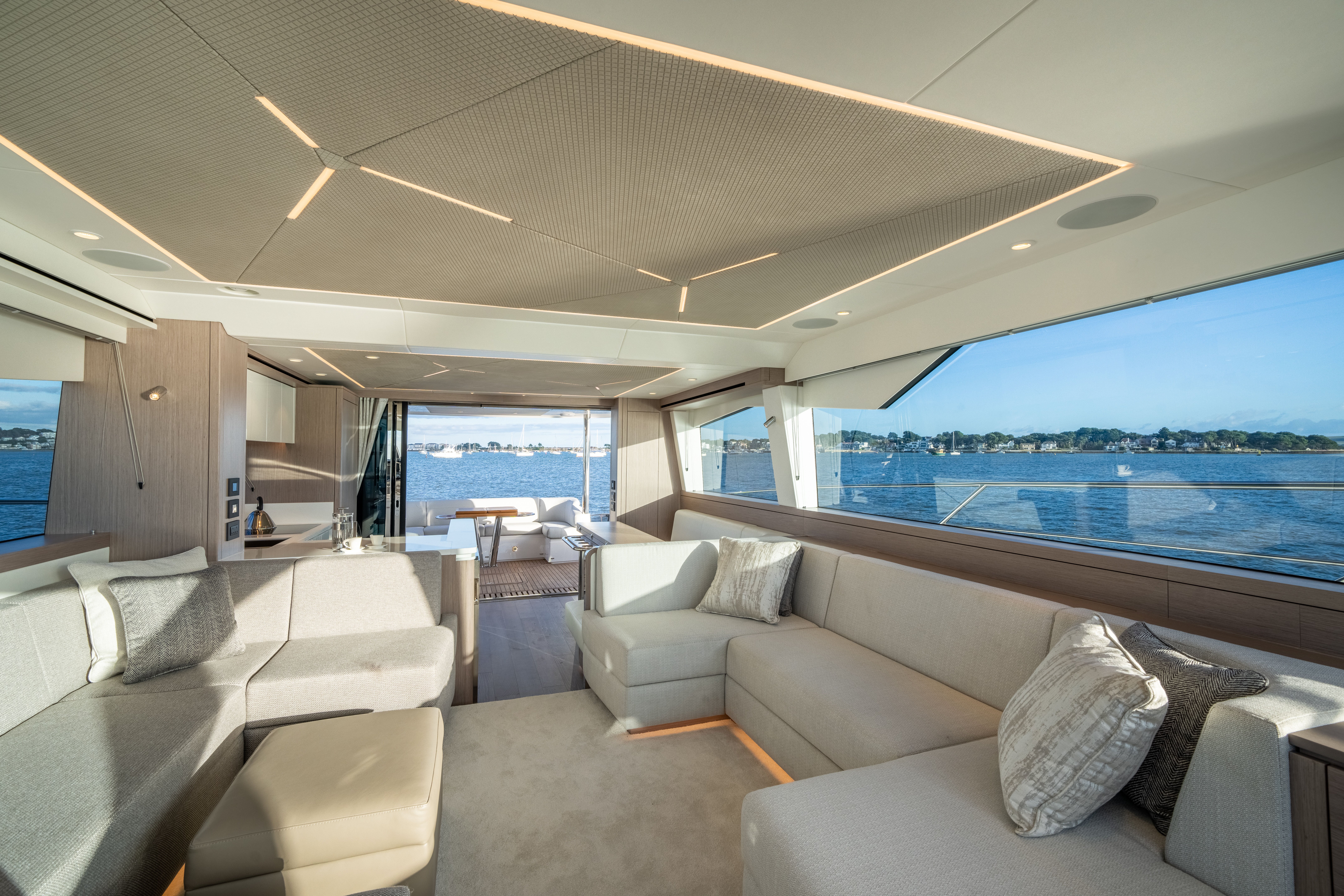Built upon the exceptional family of award-winning Manhattan models, the Manhattan 68 offers an extraordinary level of comfort and luxury with incredible detailing. Throughout the main deck, there is a strong focus on creating generous, usable sociable spaces. The exterior lines flow effortlessly from the Portuguese-bridge bow seating and sunbathing areas to the expansive cockpit adjoining an innovative Beach Club with enhanced features, including a dedicated water level locker for two SeaBobs, delivering effortless enjoyment. Internally, the expansive main saloon benefits from sweeping glazing, extending below the TV console, revealing glimpses of the sea from all perspectives.