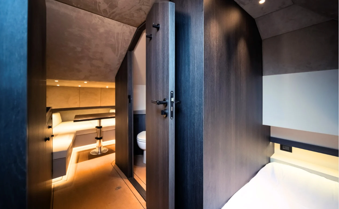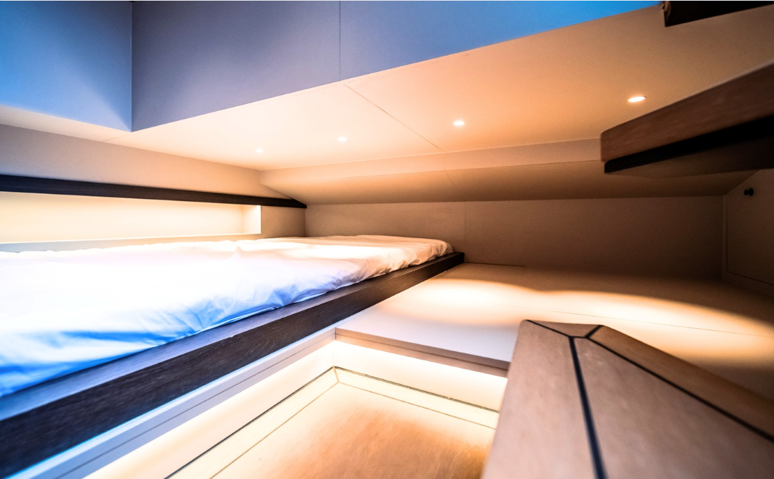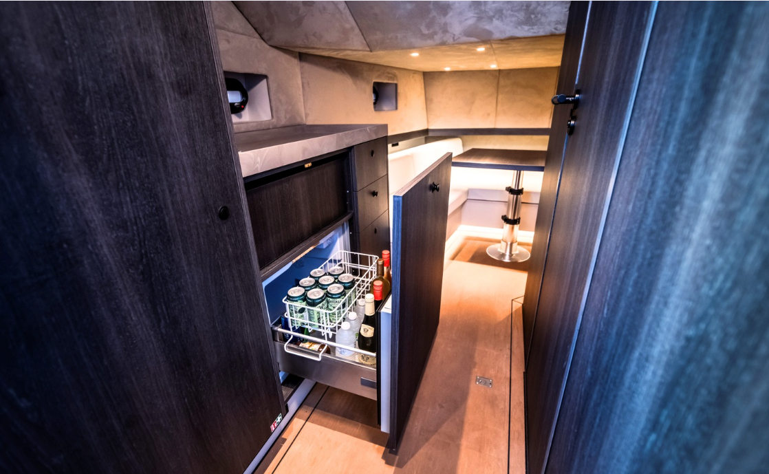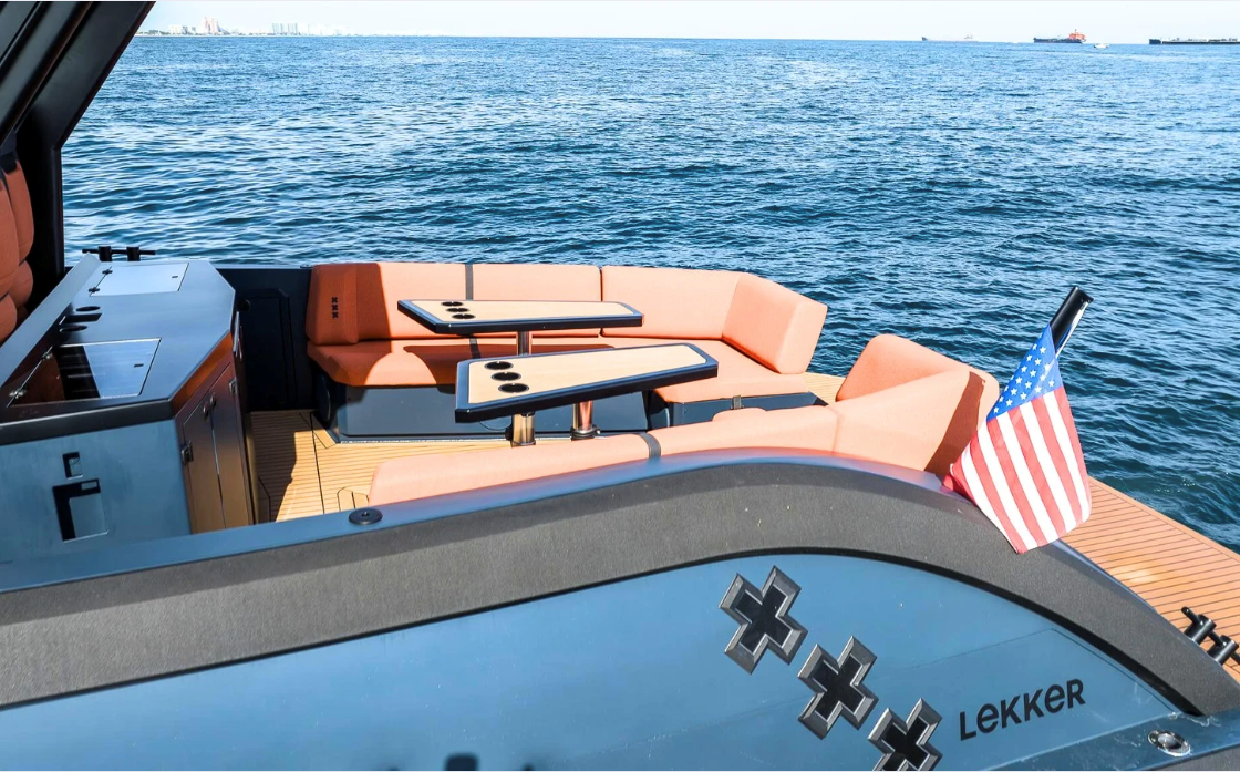 The 2025 Lekker 45 is a well-built aluminum yacht designed for performance and efficiency. It features numerous engine options inboard and outboard and offers a cruising speed of 30 knots and a full speed of 52 knots. With a fuel capacity starting at 1,100L and a water capacity of 200L, it is designed for extended trips. The yacht includes a spacious deck with adjustable tables, seating for up to 17 people, and a retractable swimming ladder. Below deck, it has a cabin with a seating area, sleeping space for four, a galley, and a bathroom with a toilet and shower. Built for both comfort and functionality, the Lekker 45 balances speed with a practical layout, making it a versatile option.
