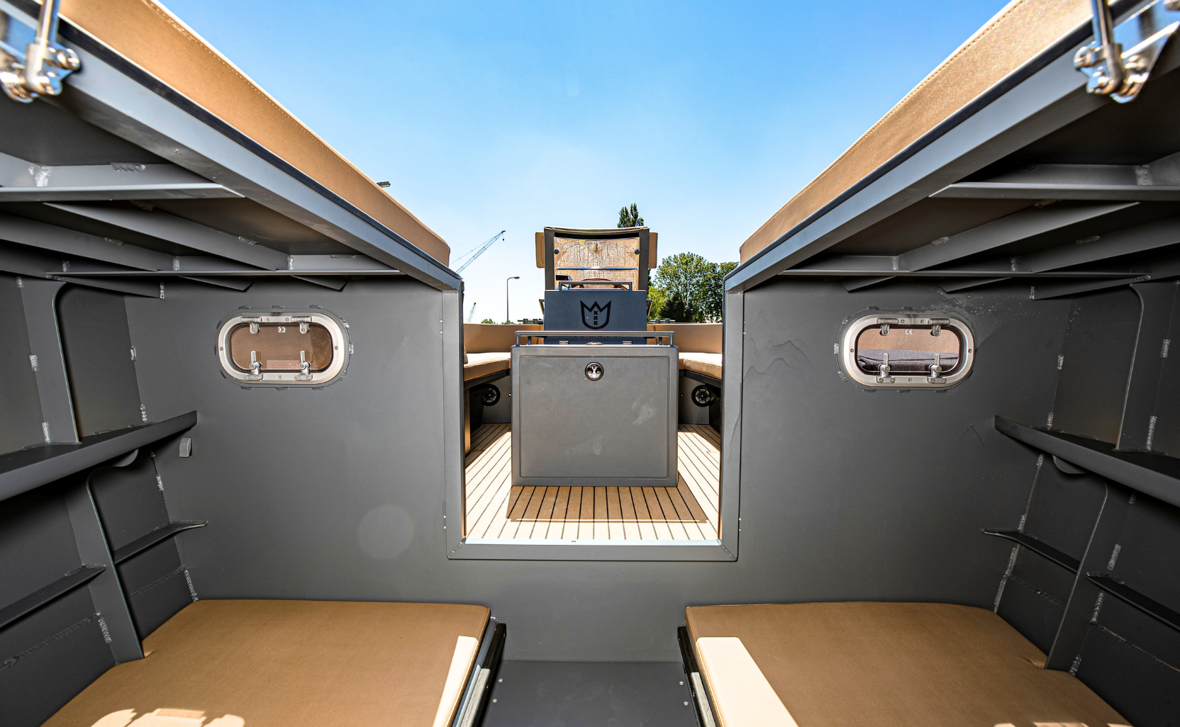 The 2025 Lekker 750 is a high-performance aluminum yacht designed for speed, style, and versatility. With a cruising speed of 46 knots and a full speed of 22 knots, it delivers an unmatched experience on the water. Built for comfort and durability, it features a self-draining cockpit deck, synthetic marine teak flooring, and a spacious swim platform with teak. The helm is equipped with a black rubber grip steering wheel and hydraulic-assisted cable steering for smooth navigation. It also includes heavy-duty fused battery wires, a powerful AGM deep-cycle engine battery, and multiple storage compartments. Perfect for both relaxed cruising and high-speed adventures, the Lekker 750 is a statement of craftsmanship and performance.