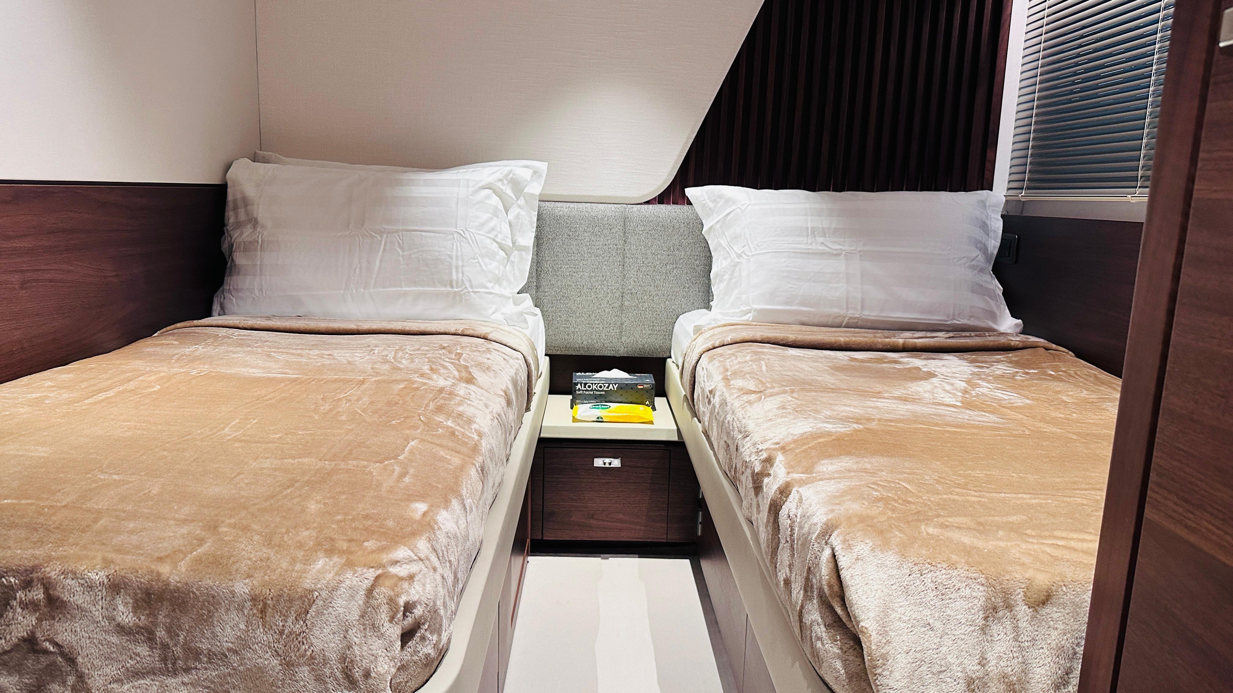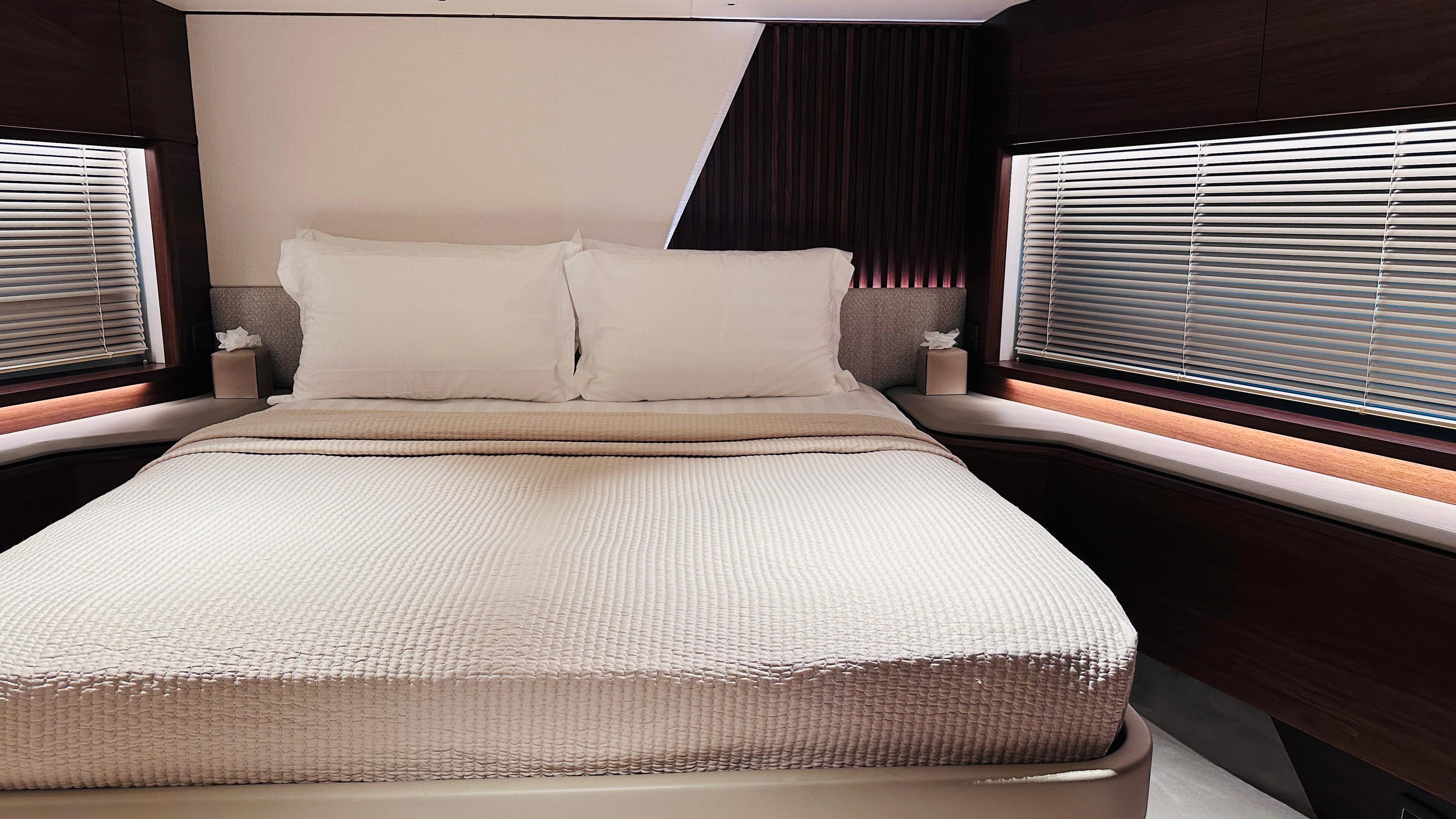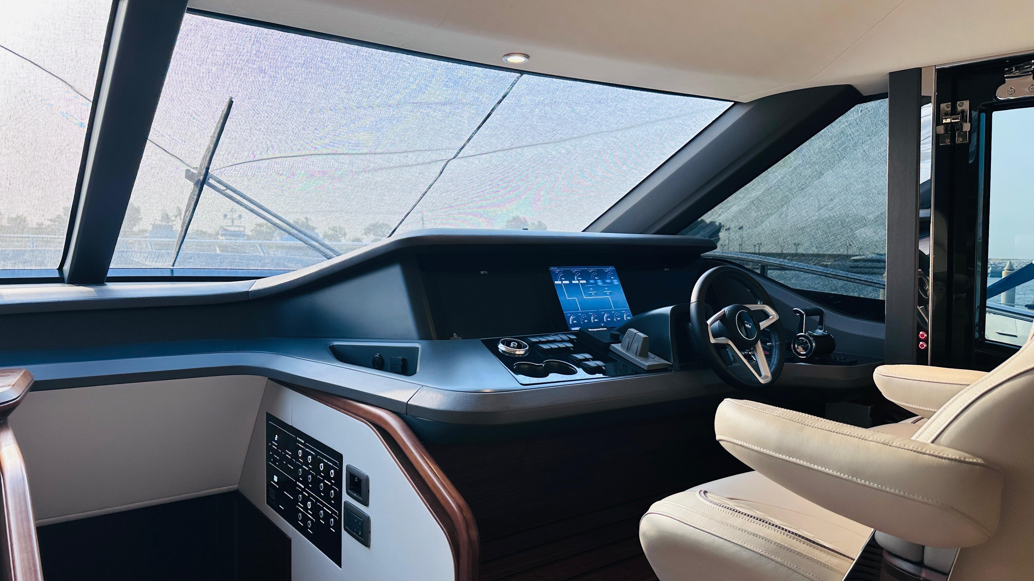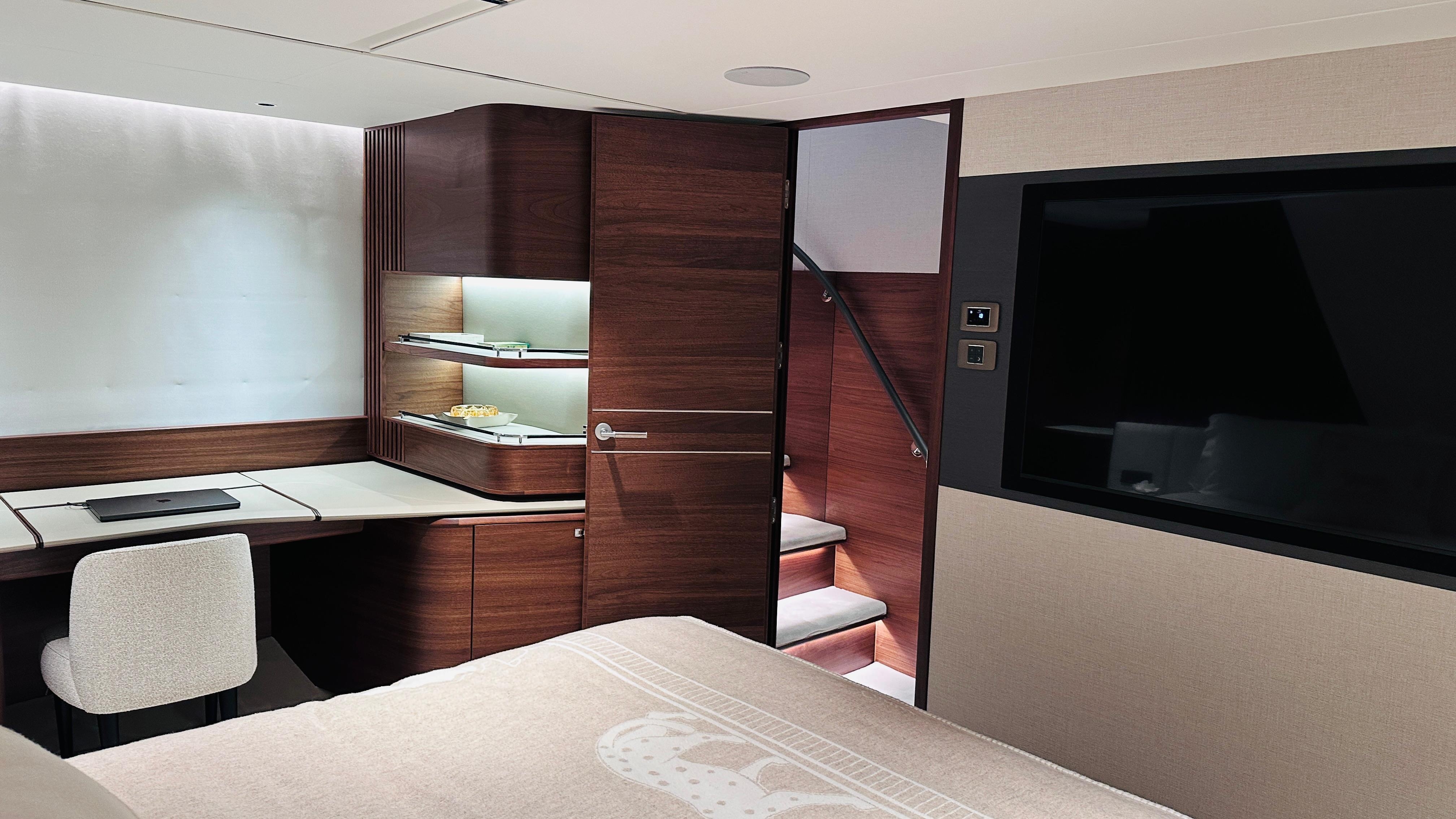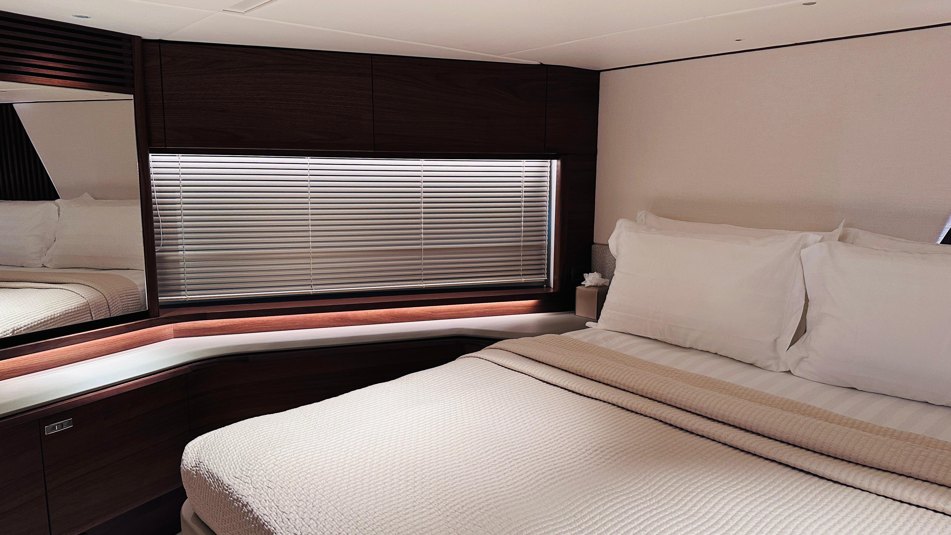 The 2025 Princess Y72 is finished to high standards throughout; the all-new Y72s design features are comparable to those of larger Y Class yachts. Her spacious saloon has a sociable layout with a bar area and open-plan galley, complemented by a multi-zone Naim audio system.
