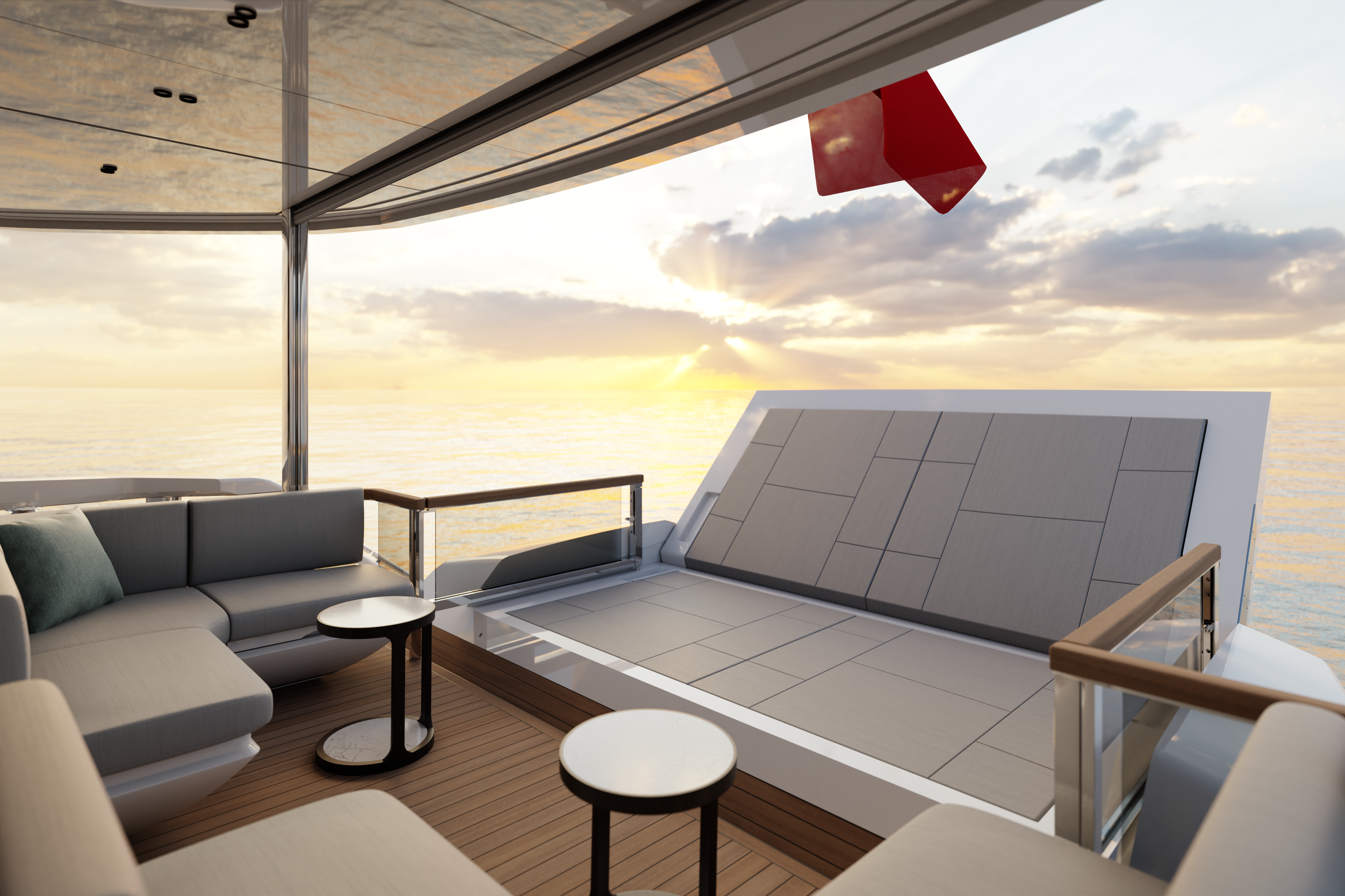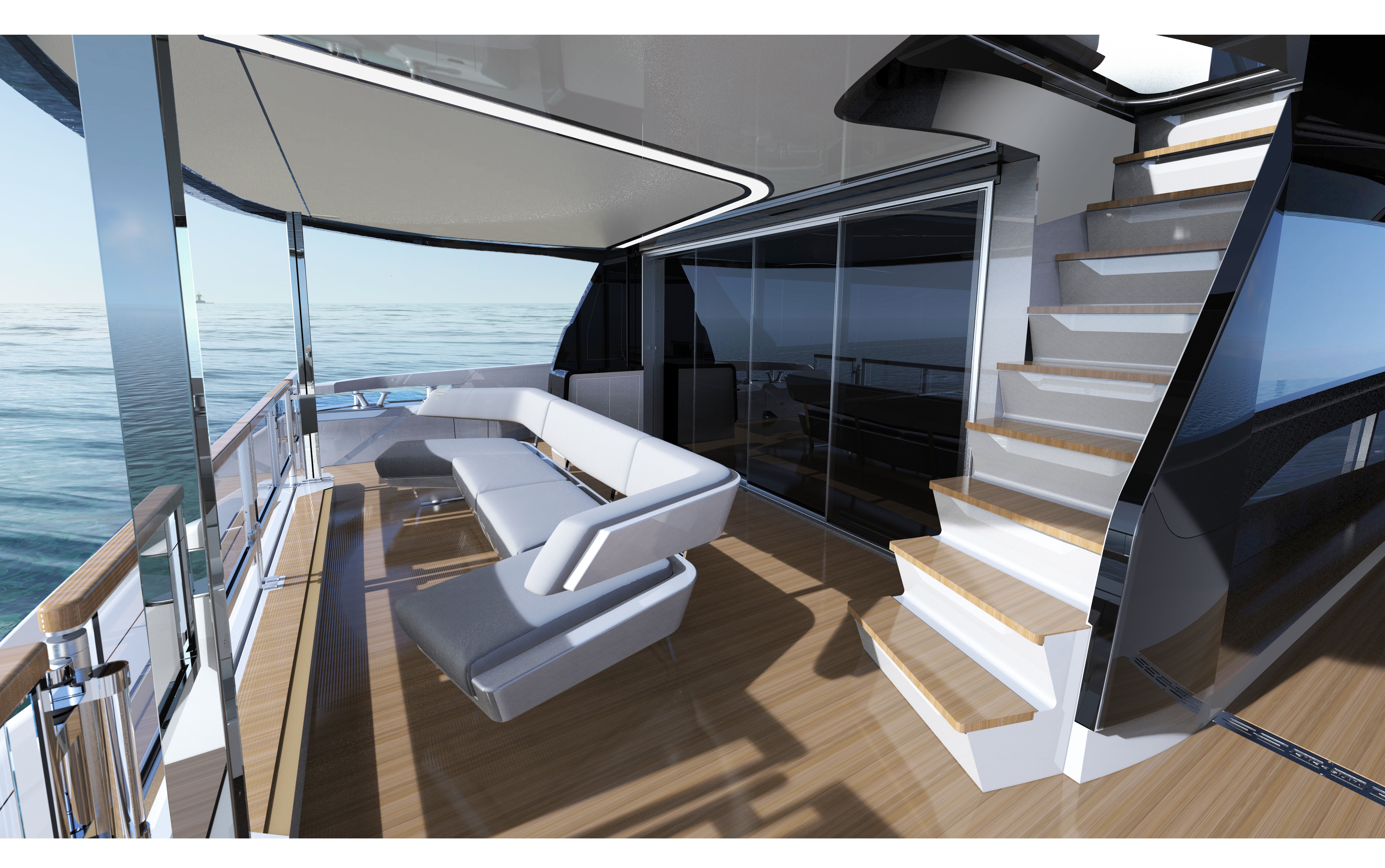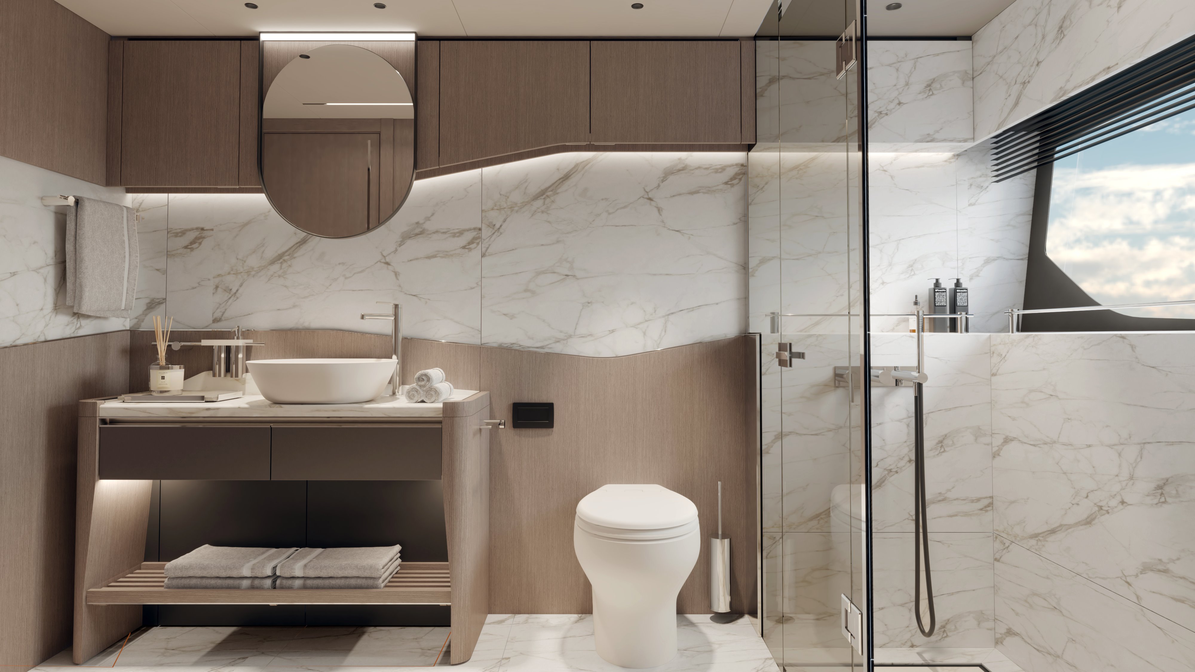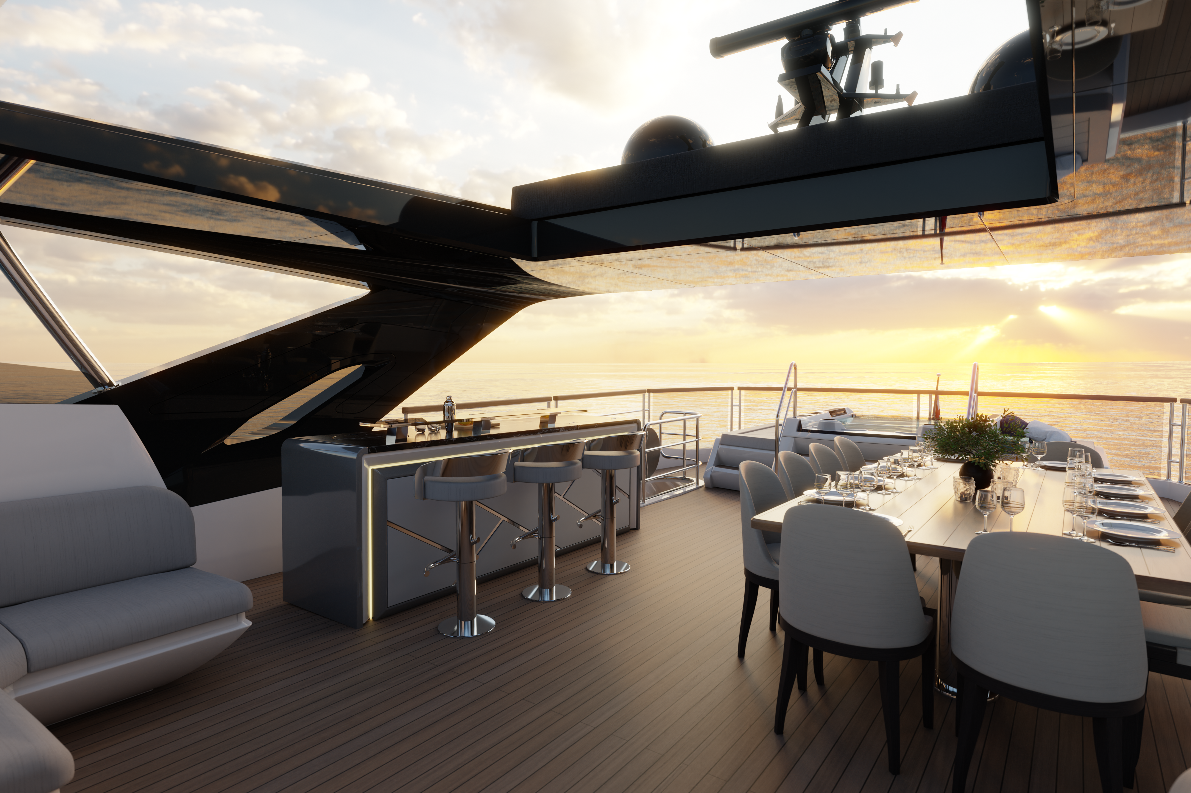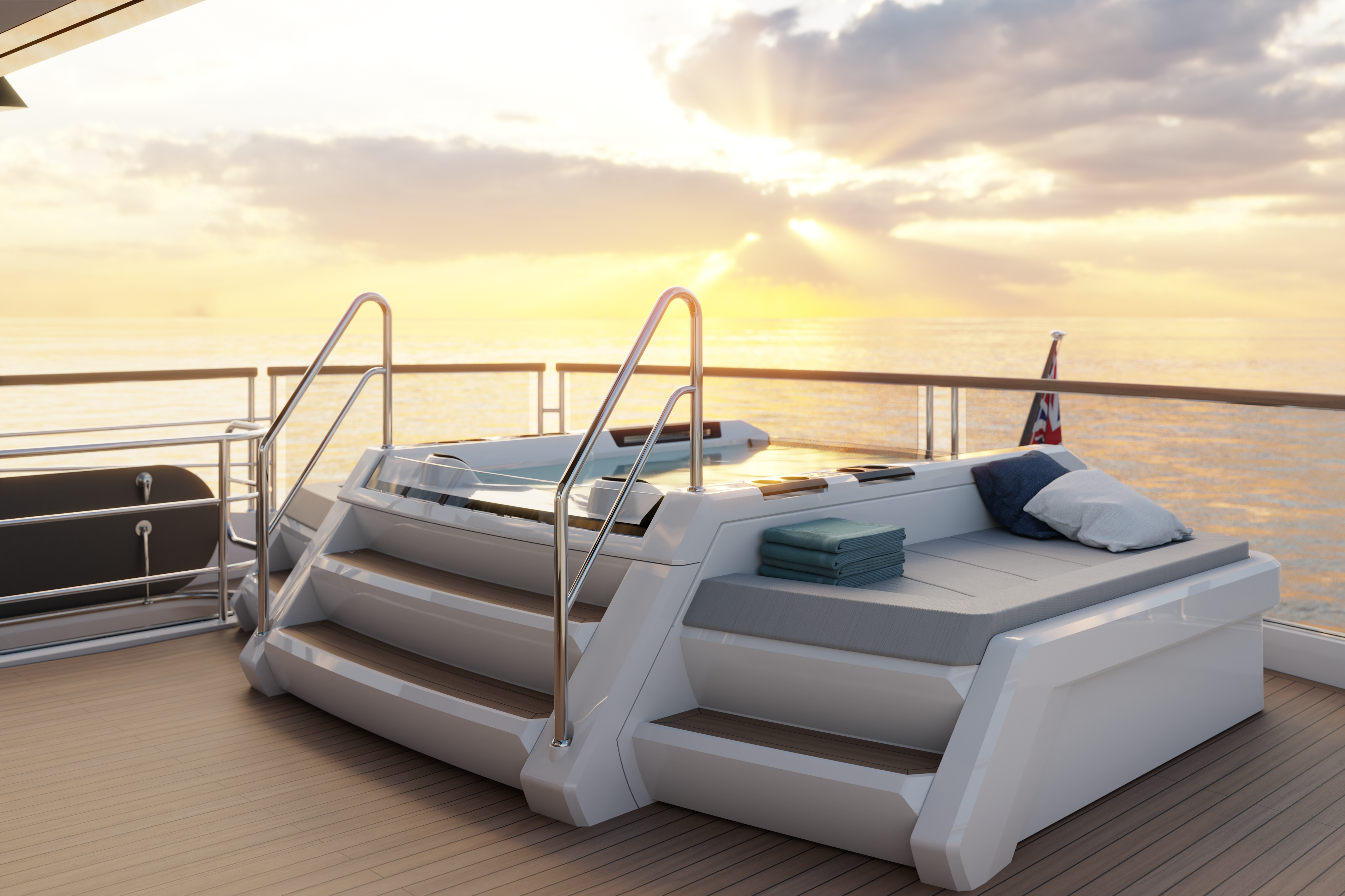 The Sunseeker 100 Yacht is set to surprise and delight at every turn. Every element has been carefully considered in meticulous detail, exuding sophistication found in custom superyachts. Her elegant, powerful lines flow around sublime architecture. A secluded private terrace, sunbathing hideaways, seamless flybridge with foredeck access, beautifully proportioned open-plan interior and generous ‘Beach Club’ are just a few of her magnificent features. Its unique main deck, penthouse-style saloon and luxurious staterooms offer a new-found design direction and material selection providing elegant interiors to enchant any owner. The layering of textural elements and the mix of furnishings and fabrics feels timeless with a sophisticated aesthetic.